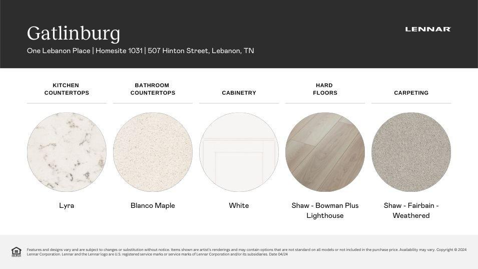 From Nashville take I-40 east bound to exit 236 S. Hartmann Drive, turn right on S. Hartmann, then left on Highway 231, then left on Outlet Village Blvd/Lebanon Place, go over the bridge and model home is on the left.