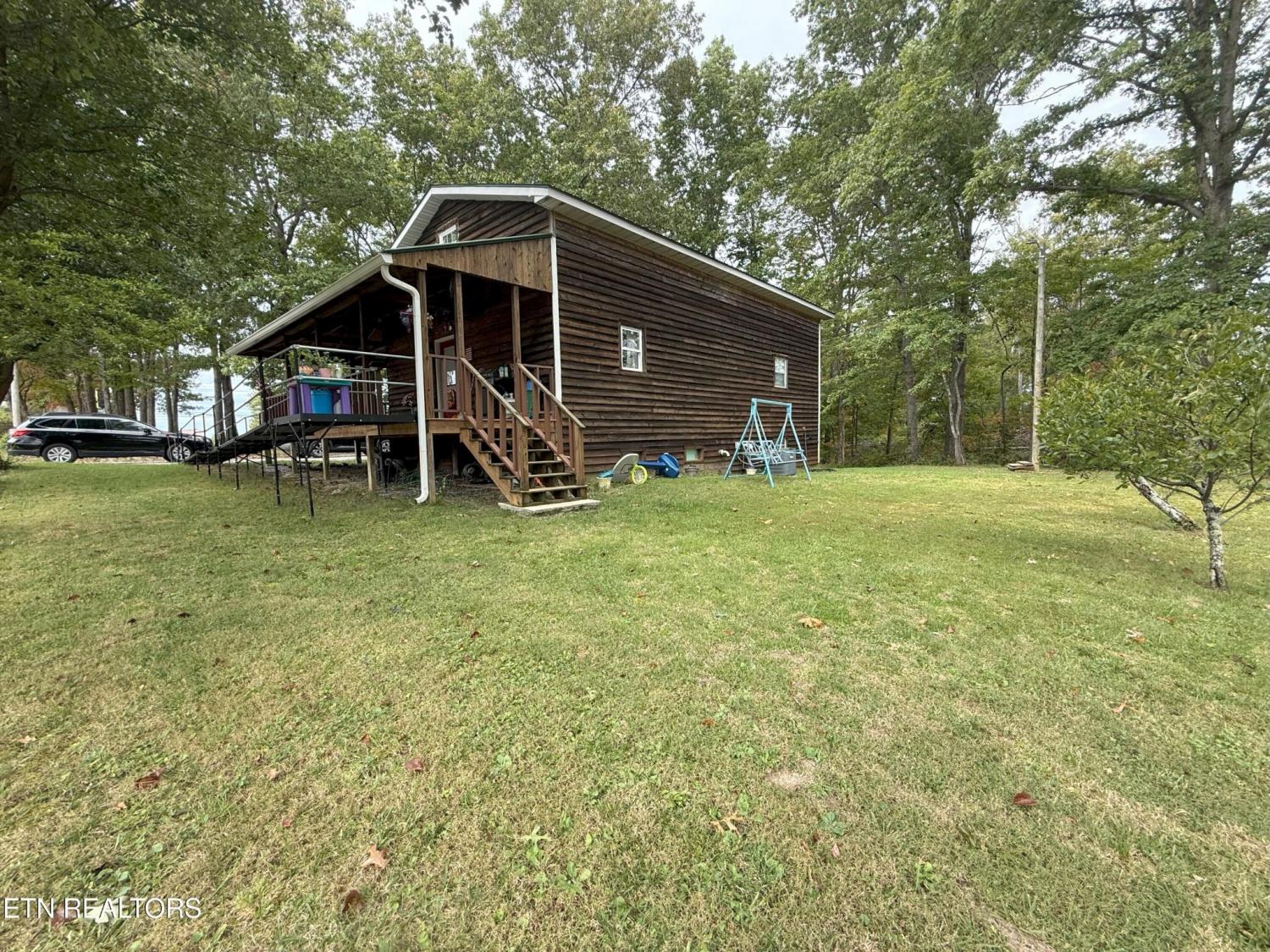 Large Rustic 2 story cabin home with basement featuring wrap around covered porch on 3 sides. Home has open floor plan that includes large kitchen with plenty of cabinets, with 2 spacious bedrooms on main floor with bath and then 2 large bedrooms upstairs with 1/2 bath. In the basement you will find an additional bathroom and rooms that could easily be finished for extra space. Call today!
