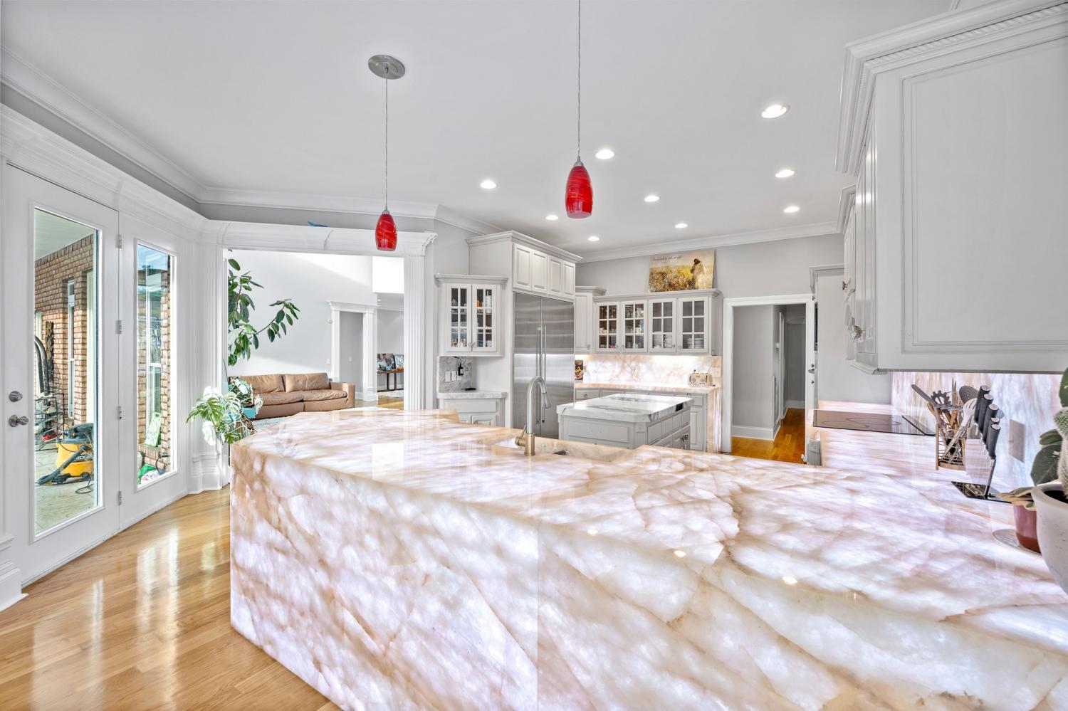 Biggest lot in the neighborhood! More photos are coming after the interior is painted!!! Welcome to Cleveland Hall, a premier luxury community bordering the renowned Hermitage Golf Course and just minutes from Old Hickory Lake. This custom-built, one-owner home showcases exceptional craftsmanship and timeless design from the moment you arrive. Step inside to experience soaring ceilings, custom wood trim and millwork, newly refinished hardwood floors, and floor-to-ceiling windows that bathe the home in natural light. The gourmet kitchen features Onyx island countertops with color-changing lighting and a built-in Sub-Zero refrigerator, creating a striking centerpiece for cooking and entertaining. Enjoy plenty of gathering space with a spacious bonus room, media room, and seamless indoor-outdoor flow to your private backyard oasis. The outdoor area includes an outdoor kitchen with granite countertops and propane grill, an inground saltwater pool, and a large lanai—all surrounded by lush landscaping for total privacy. Retreat to the primary suite, offering a spa-like bathroom with granite showers and a granite soaking tub. The double lot includes full irrigation, and the 1,150 sq. ft. garage provides abundant storage and flexibility. Every detail of this home has been thoughtfully designed for comfort, elegance, and modern living—welcome to your dream home at Cleveland Hall.