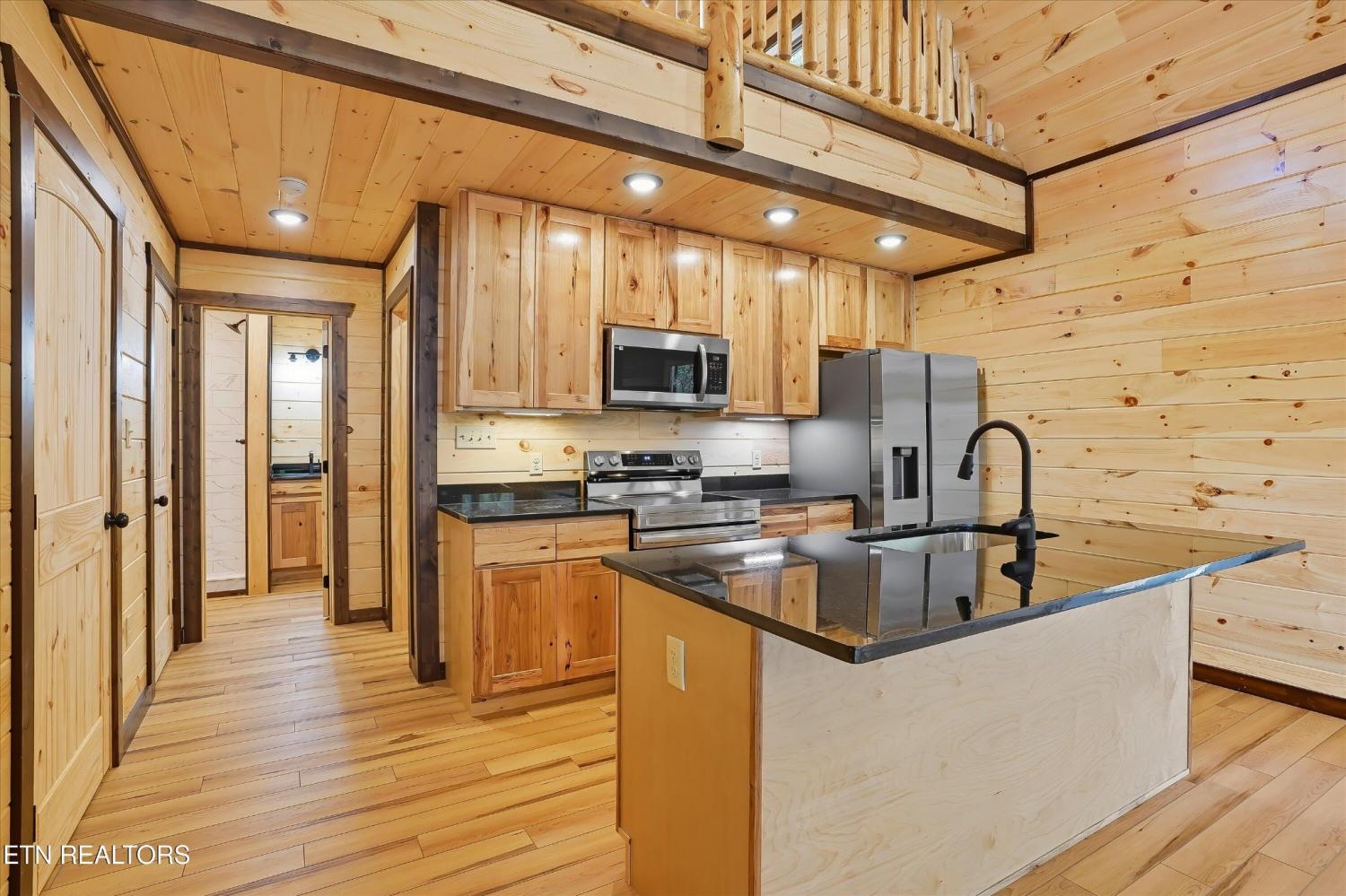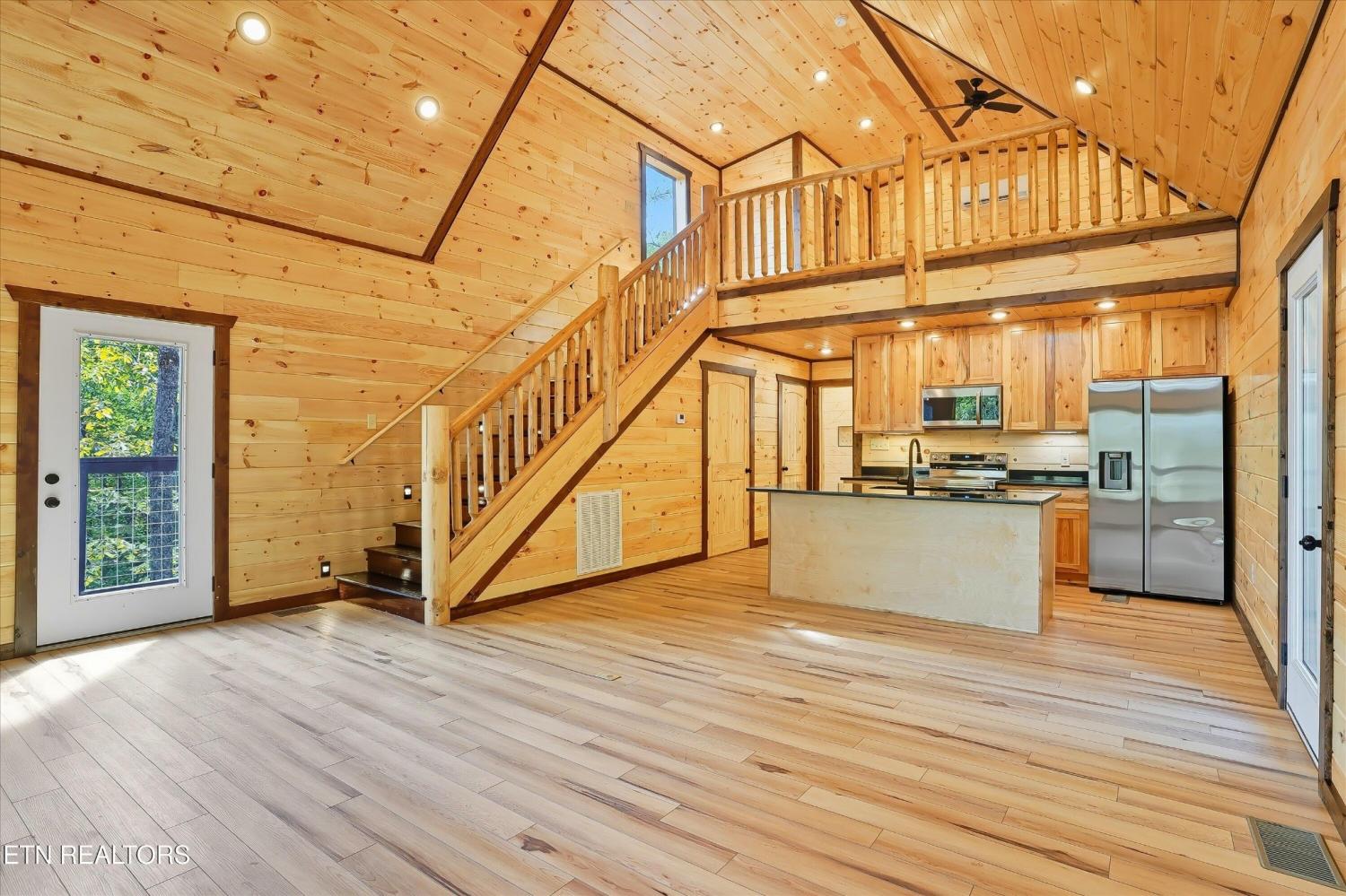 Spectacular new construction cabin with mountain views available in the heart of the Smokies! $65,000 rental guarantee! This open concept cabin is the epitome of modern mountain interior design. As you step over the threshold, your breath is sure to be taken away by the high ceilings and natural light pouring in from the expansive windows. Wood paneled walls add warmth to the living spaces while the gourmet kitchen offers stainless steel appliances and granite countertops for the chef in the family. The oversized primary bedroom downstairs offers a private getaway for guests while the loft upstairs provides endless possibilities wither you'd like a game room, bunk room or a combination of the two! Relax, unwind and enjoy the Smoky mountain sunsets from the massive back deck which has been nearly doubled from the standard 8ft to 15ft to allow for maximum Smoky Mountain fun. Breathtaking mountain views and secluded luxury is just the beginning of what this investment cabin offers- for more information, please give us a call today!