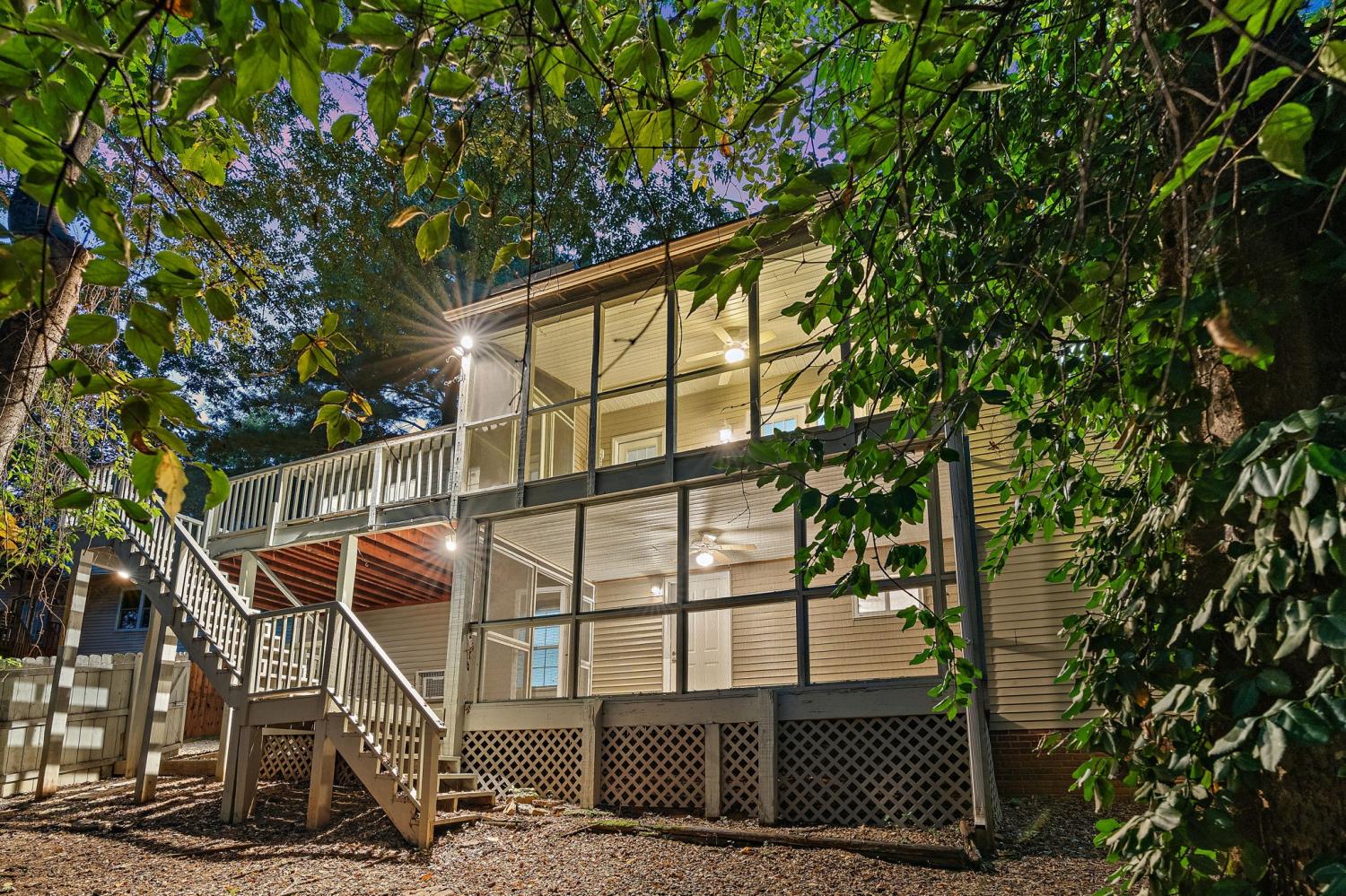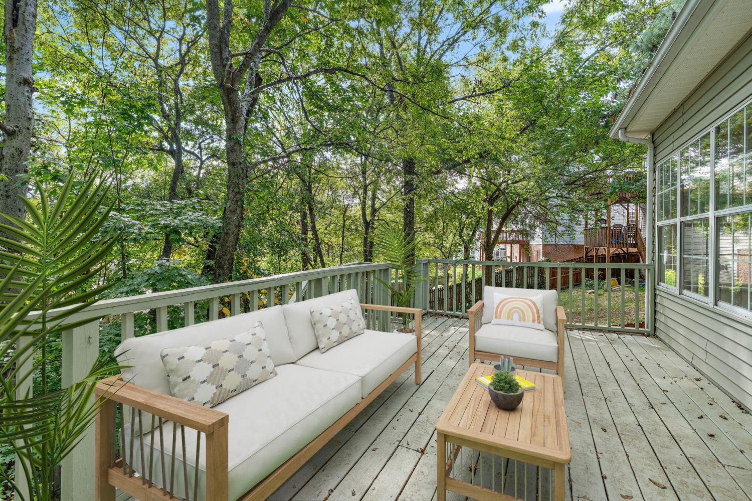 Welcome to 824 N Woodstone Ln — tucked away on a quiet cul-de-sac and filled with elevated ceilings, beautiful natural light, and a thoughtfully designed floor plan. The main home (3BD/2BA; approx. 2,153 SF) opens into a bright living room centered around a gas fireplace. The kitchen features stainless appliances and granite counters, and the private owner’s suite connects directly to the screened porch — ideal for morning coffee or relaxing at the end of the day. Upstairs, a spacious bonus room offers easy flexibility for a media space, home gym, or playroom. The multi-level screened deck overlooks a fully fenced backyard, and storage is plentiful throughout. An attached two-car garage completes the main home. Downstairs is what truly sets this property apart — a self-contained 1BD/1BA apartment (approx. 876 SF) with its own private entrance, full kitchen, and bath. Perfect for rental income, multigenerational living, long-term guests, or a private studio or office. All in a convenient South Nashville location — less than 10 minutes to Lenox Village, about 10 minutes to Brentwood, and roughly 20 minutes to Downtown Nashville. A smart, flexible property that blends lifestyle and income potential in one beautiful package.