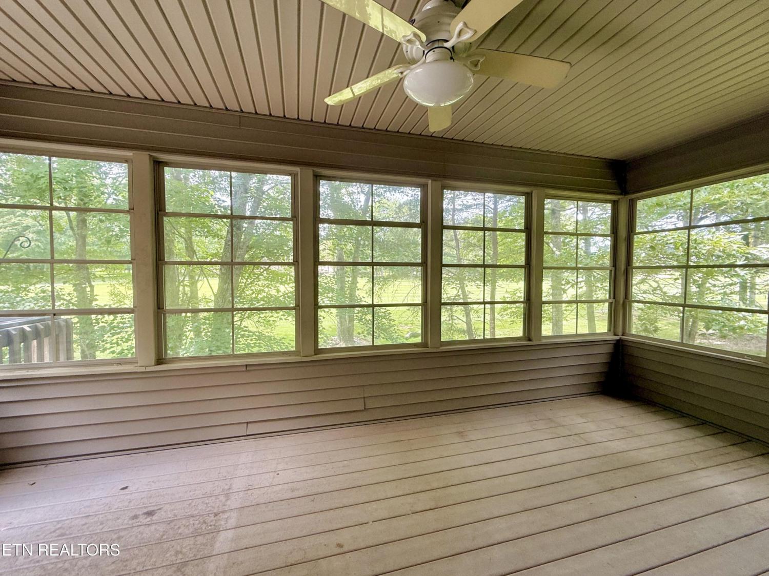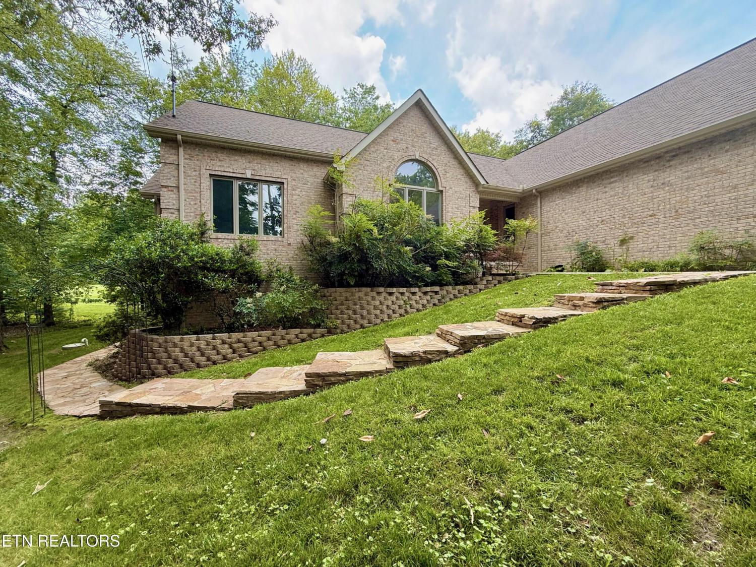 Golf Course Views, Timeless Charm & Room to Grow! Set on the #2 fairway of Heatherhurst Golf Course, this well-crafted home offers golf course living with elegant finishes and flexible spaces throughout. Soaring ceilings create an open, airy feel, while a real wood, see-through brick fireplace adds warmth and charm to both the living and dining areas. The spacious master suite features a large walk-in closet, a jetted tub, and a tiled walk-in shower with a rainfall head—your private spa retreat. The third bedroom has been transformed into a custom grand library, ideal for reading or remote work. Enjoy year-round views from the oversized Trex deck or relax in the 3-season room (18.5' x 8'), which overlooks the course and adds bonus living space not included in the total square footage. Downstairs, the walk-out basement provides ~1,000 additional square feet with three rooms and a half bath already in place—ready to be finished for even more living space, a workshop, or guest quarters. From its premium location to its custom features, this Fairfield Glade home is built for comfort, character, and opportunity.