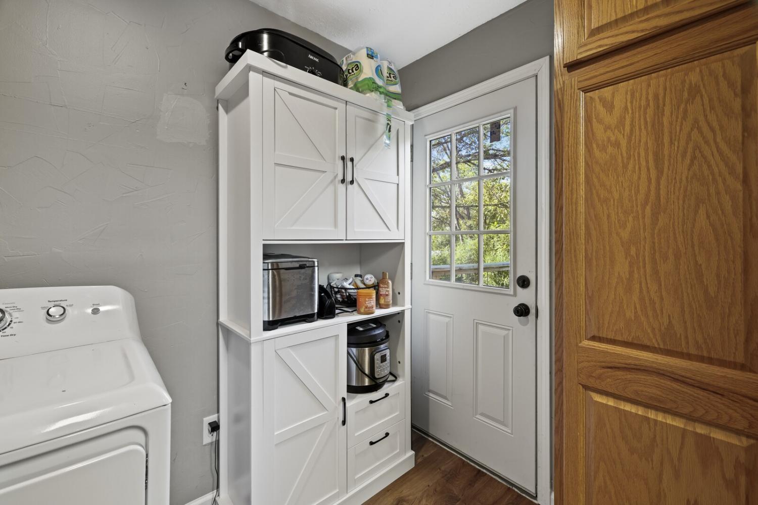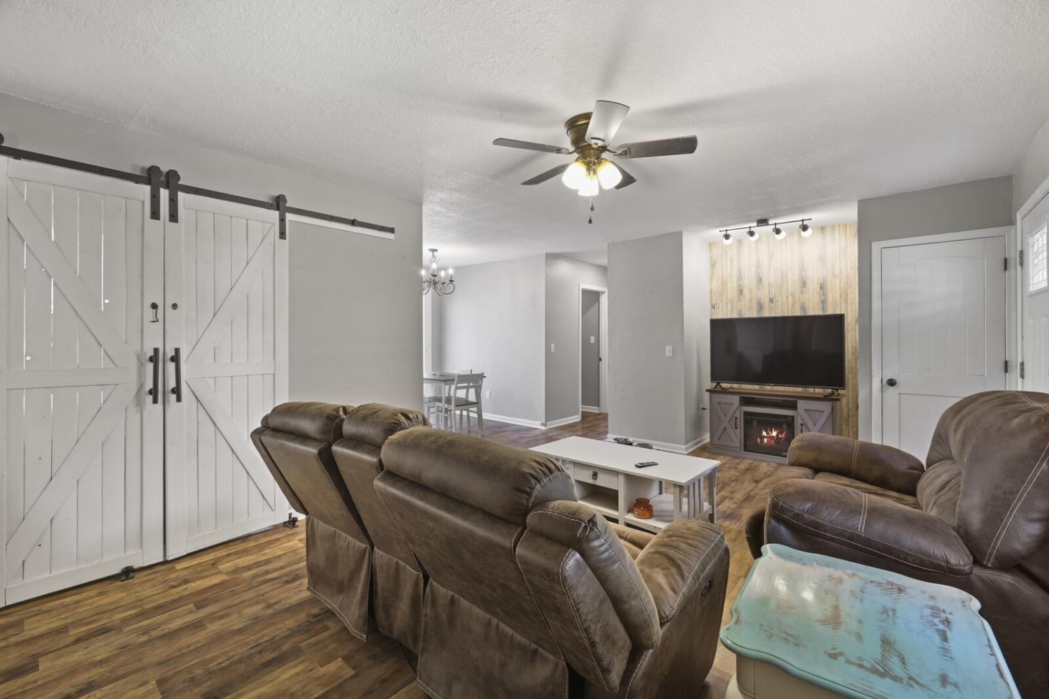 Welcome home to this charming 3-bedroom, 2-bath residence set on a peaceful 0.61-acre lot surrounded by mature trees. A welcoming front deck invites you inside to an open-concept living and dining area, filled with natural light and perfect for everyday living or entertaining. The kitchen features white cabinetry, stainless steel appliances, and direct access to the back deck. The primary bedroom offers a private retreat with an en-suite bathroom accessible through stylish sliding barn doors. Two additional bedrooms provide comfort and flexibility for guests, a home office, or hobbies. The laundry room is conveniently located off the kitchen for added functionality. Outside, enjoy the spacious yard complete with a firepit and storage shed, providing plenty of room to gather, garden, or simply unwind in a serene setting. This home perfectly combines modern convenience with a peaceful country feel, ready for you to move in and make it your own. Up to 1% lender credit on the loan amount when buyer uses Seller's Preferred Lender.