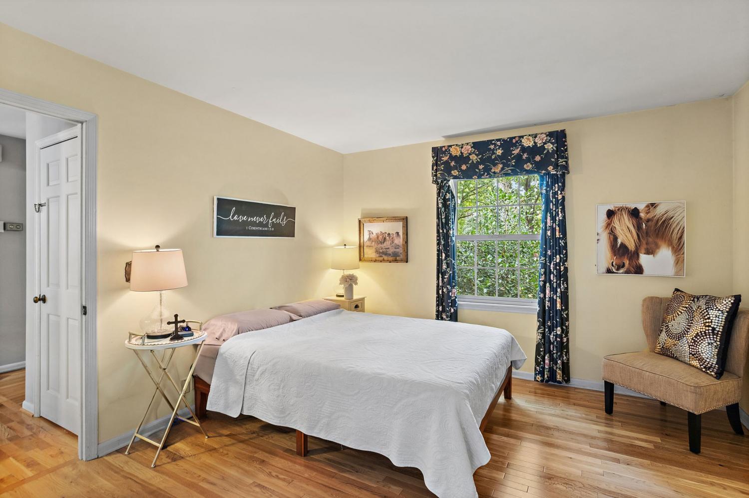 Enjoy this spacious home on a beautiful 1 acre mature treed lot. Oversized back deck for quiet evenings or watch the wildlife in the trees. Rocking chair front porch is perfect for book reading or conversations among friends. Easy to clean, hardwood floors throughout the main level and upstairs bedrooms. Well designed kitchen with oversized window overlooking the private backyard Primary bedroom on main level with secondary bedrooms upstairs. Washer/Dryer stays as a convenience. Rent will adjust on number of adults in house due to shared utilities. Landlord stays occasionally in the basement apartment.
