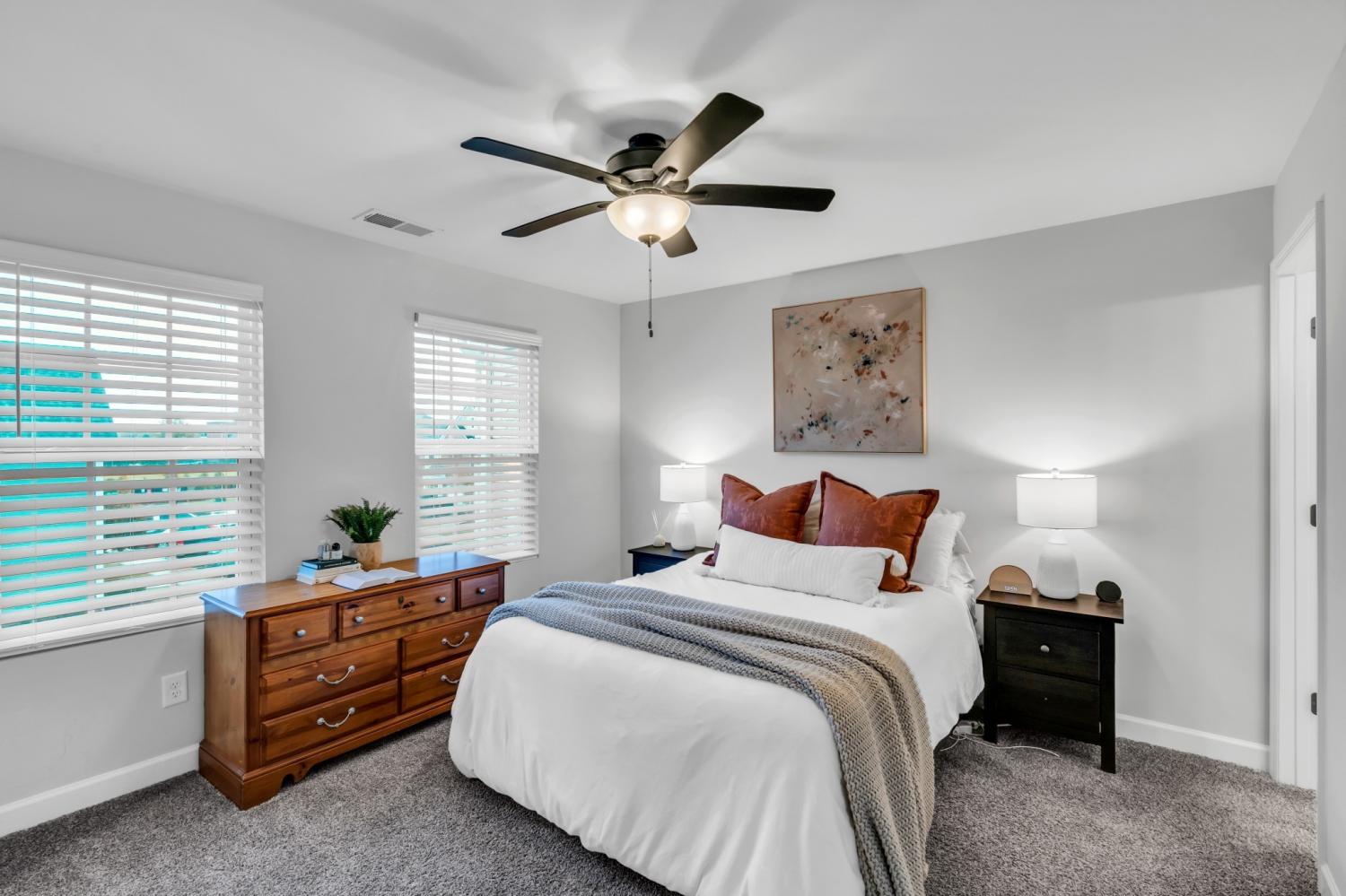 Set in a quiet, walkable community with its own pool and direct access to Old Hickory Lake, this move in ready townhome invites you to slow down and enjoy the ease of lake living. Picture morning coffee walks along the water, afternoons spent paddle boarding or kayaking nearly year round, and evenings that flow effortlessly into dinner at Sanders Ferry Pizza & Pub just down the neighborhood path. The classic red brick exterior and coastal blue accents welcome you home, while inside a bright open layout with airy ceilings, soft neutral tones, and abundant natural light creates a calm, comfortable backdrop. The kitchen blends style and function with sleek cabinetry and modern hardware, opening to a dining space perfect for casual meals or weekend gatherings. Two bedrooms each with private en suite baths make the home ideal for guests, roommates, or creating a restful primary retreat, and thoughtful details like faux wood blinds, light toned flooring, and a private patio ready for grilling or unwinding under the stars add to the appeal. Combining low maintenance living with walkability, lake access, and modern conveniences close at hand, this Hendersonville townhome offers the kind of lifestyle that feels like a getaway every day.