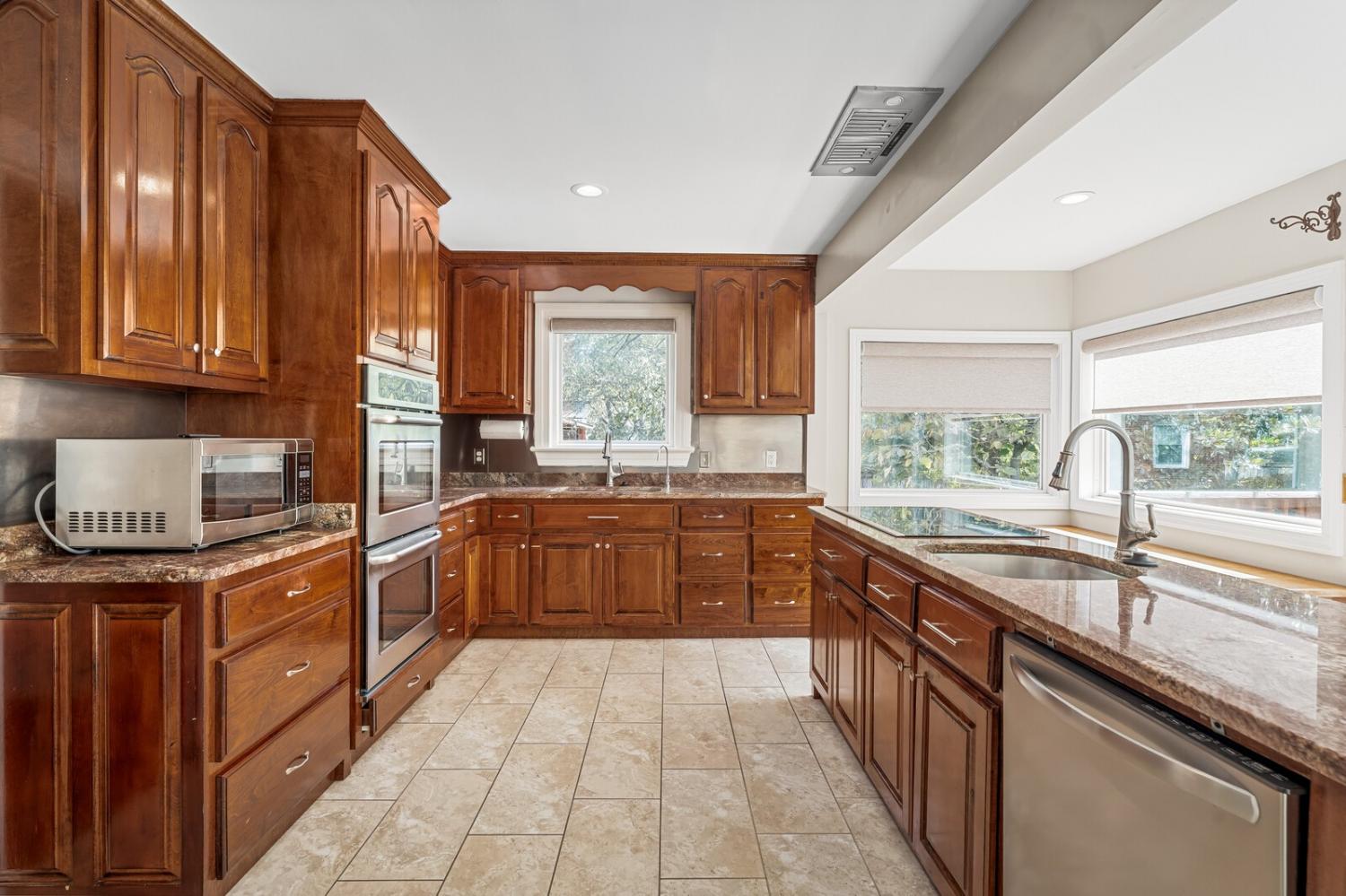 Immaculate and move-in ready, this stunning home combines timeless style with modern updates. Beautiful hardwood floors and oversized rooms create a warm and inviting atmosphere throughout. The updated kitchen is a true centerpiece, showcasing granite countertops, stainless steel appliances, a double oven, walk-in pantry, porcelain floors and a large picture window that frames peaceful backyard views. Just off the kitchen, the great room and dining area provide a natural flow for everyday living and entertaining. The main level features a private primary retreat with a tile walk-in shower and its own deck, along with two secondary bedrooms for family or guests. Murphy Bed in secondary bedroom remains. Upstairs, a spacious loft, an updated full bath, and two oversized bedrooms with hardwood floors offer incredible flexibility—whether you need additional bedrooms, a bonus room, or a recreation space. The mostly finished basement includes an open bonus room, a full bath, a half bath, 2 office spaces, laundry room and a craft room. Outdoors, a lofted deck with gazebo and lower patio provide the perfect backdrop for relaxing or hosting gatherings, all overlooking a large private backyard. With its blend of space, comfort, and thoughtful upgrades, this home is ready to welcome its next owners. Assumable 3.25% VA Interest Rate. Ask your agent or the listing agent for the list of improvements that have been done to the home.