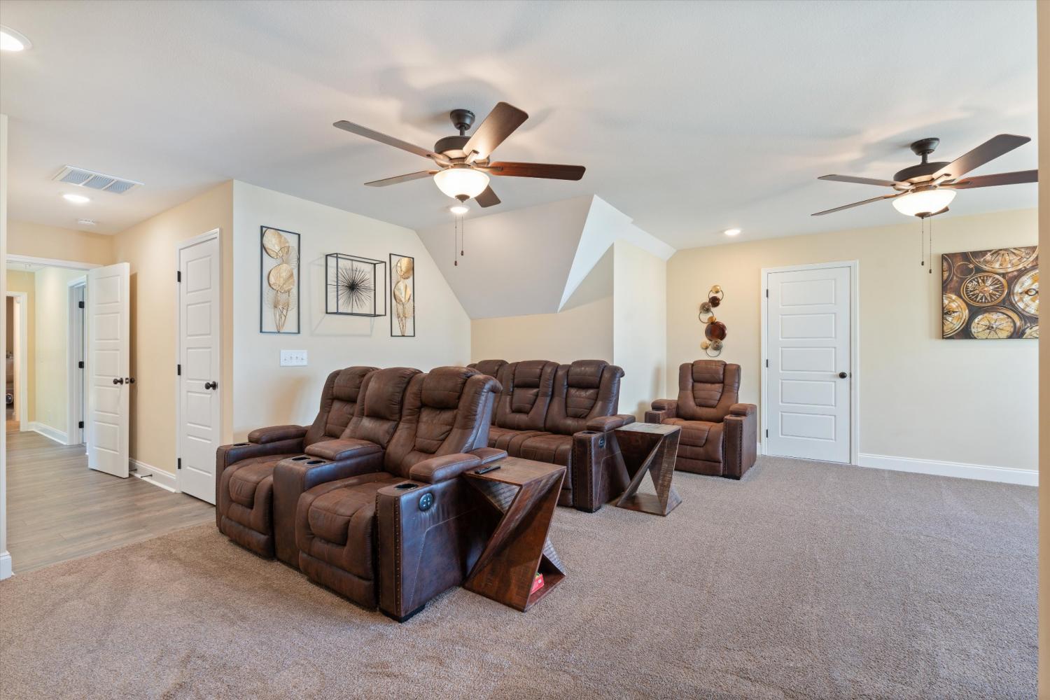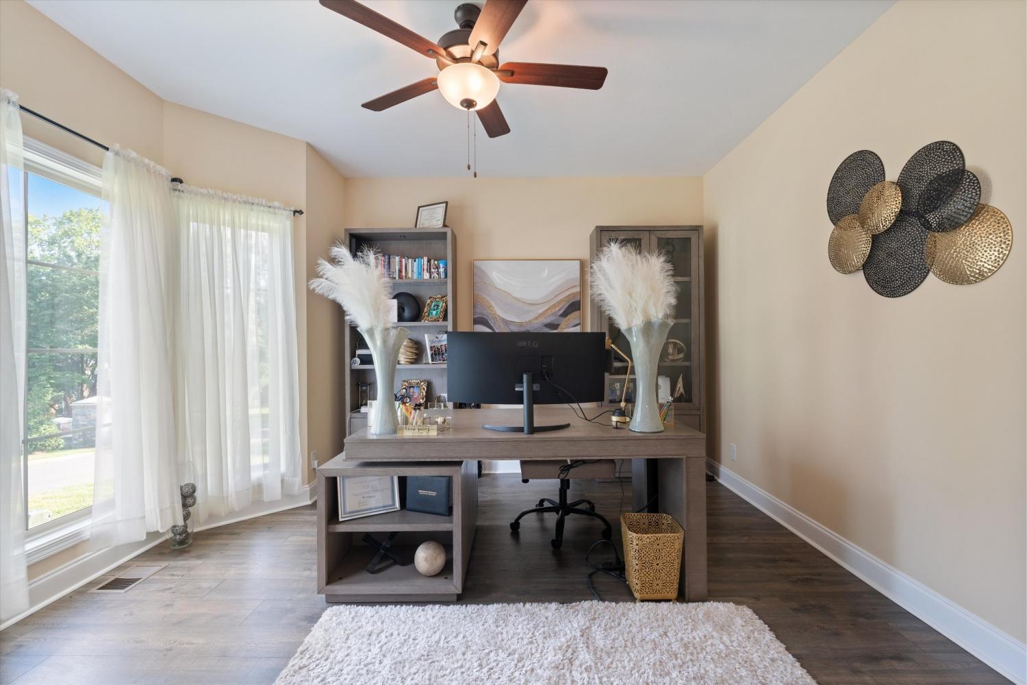Welcome to 823 Shady Bluff Trail, a one-of-a-kind beautifully built brick custom home in Clarksville.The main level features both a primary suite and a guest suite each with a full bathroom.Continue to the private office or study,laundry room with sink, large kitchen and seperate formal dining room perfect for holidays and dinner parties. Primary boasts a separate entrance to back patio, tile shower and separate tub, and a custom built closet.The second level has 3 spacious bedrooms with 2 bathrooms and walk-in closets. Theater room is perfect for entertaining and relaxing with a door to the large attic space with walk in access. Enjoy outdoor privacy living which backs to a tree line. Home includes a long driveway and 3 car garage. All appliances and security system will convey with property. Schedule your private showing today!