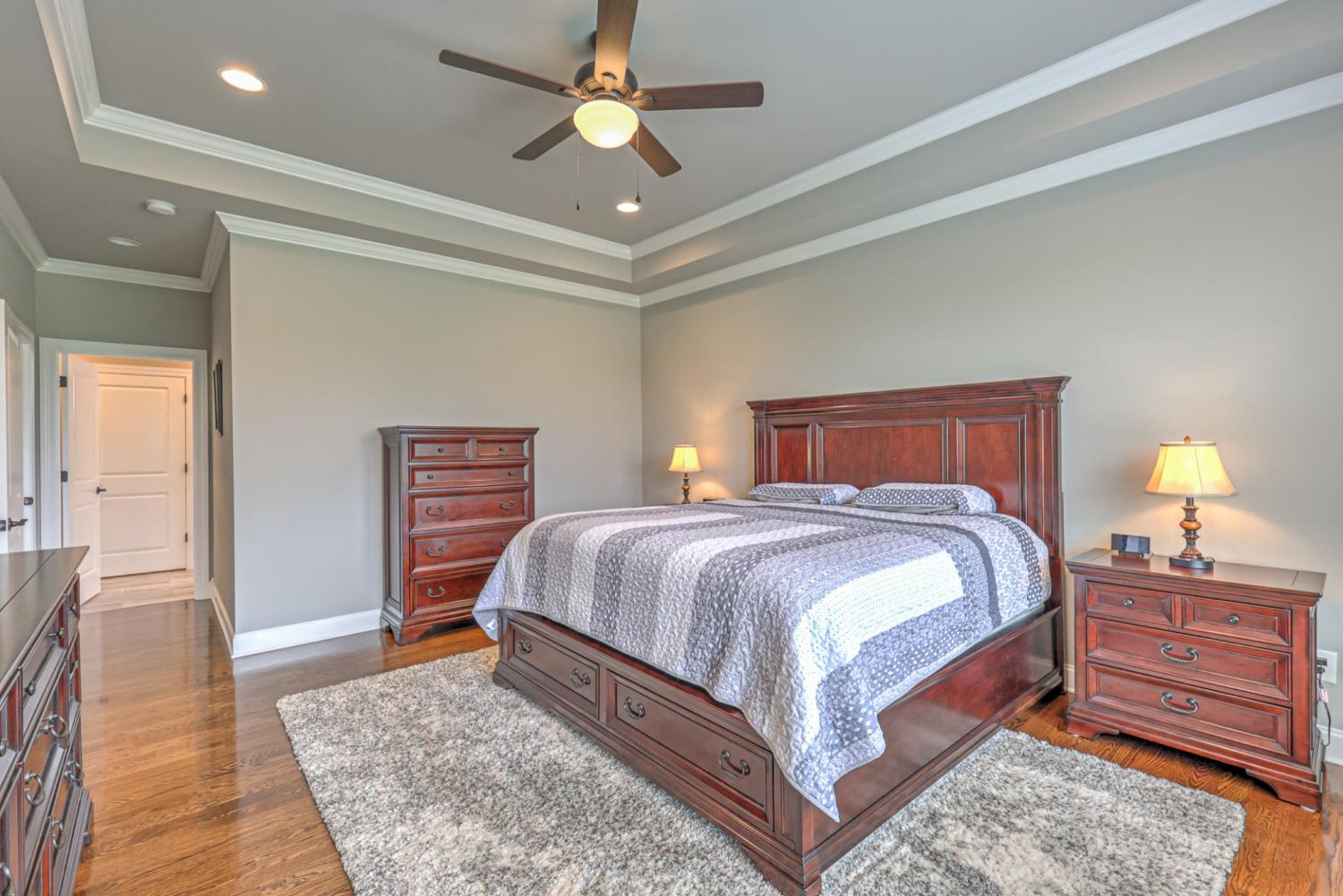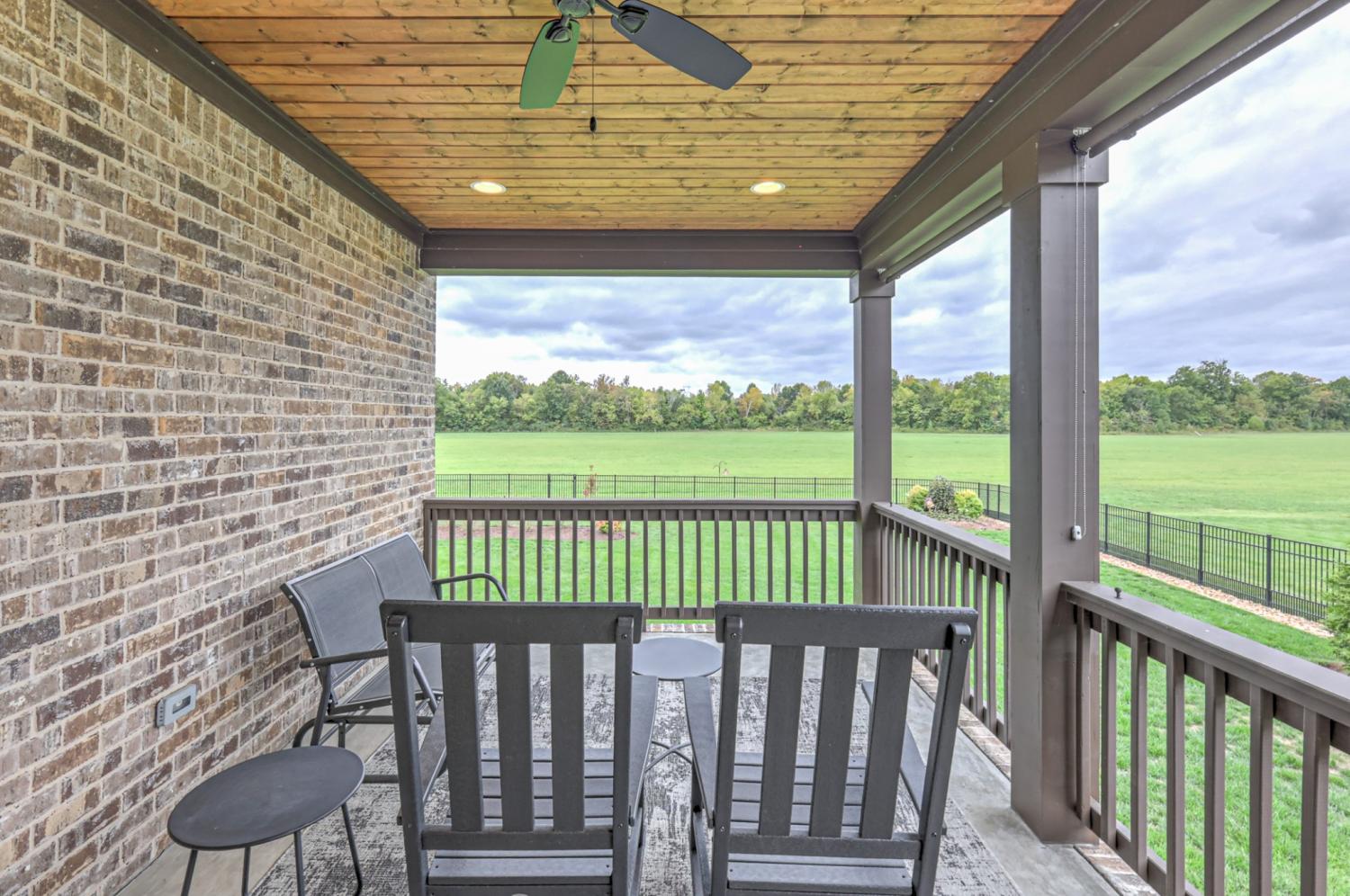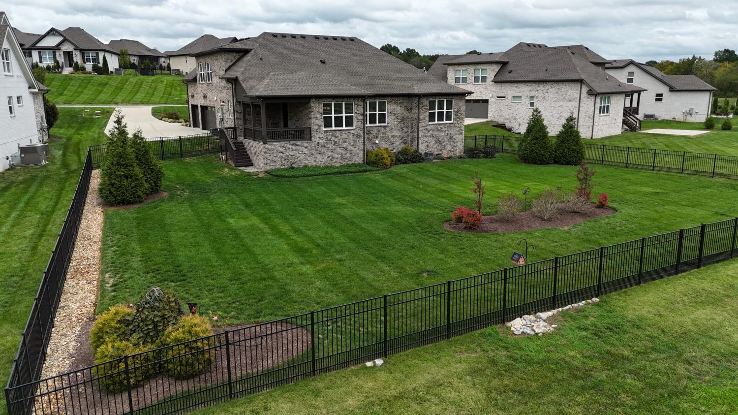 Beautifully crafted custom-built Shaw Home perfectly situated on a premium lot backing to a peaceful green belt for added privacy and views! This stunning property showcases 10-foot ceilings, elegant coffered details, and sand-and-finish hardwood floors throughout the main level, creating a refined and welcoming living space. The spacious kitchen is both functional and stylish, featuring a walk-in pantry, and the refrigerator remains. Step outside to enjoy the covered patio complete with patio furniture and shades—perfect for relaxing or entertaining while enjoying the serene backyard. Thoughtful upgrades include a wrought iron fence, irrigation system, and an enhanced crawl space with a dual sump pump and French drain system for peace of mind. Ideally located just minutes from the new Publix, local restaurants, and convenient access to I-65, this home combines luxury, comfort, and location in one exceptional package. Come experience the quality craftsmanship and lifestyle that make this home stand out!