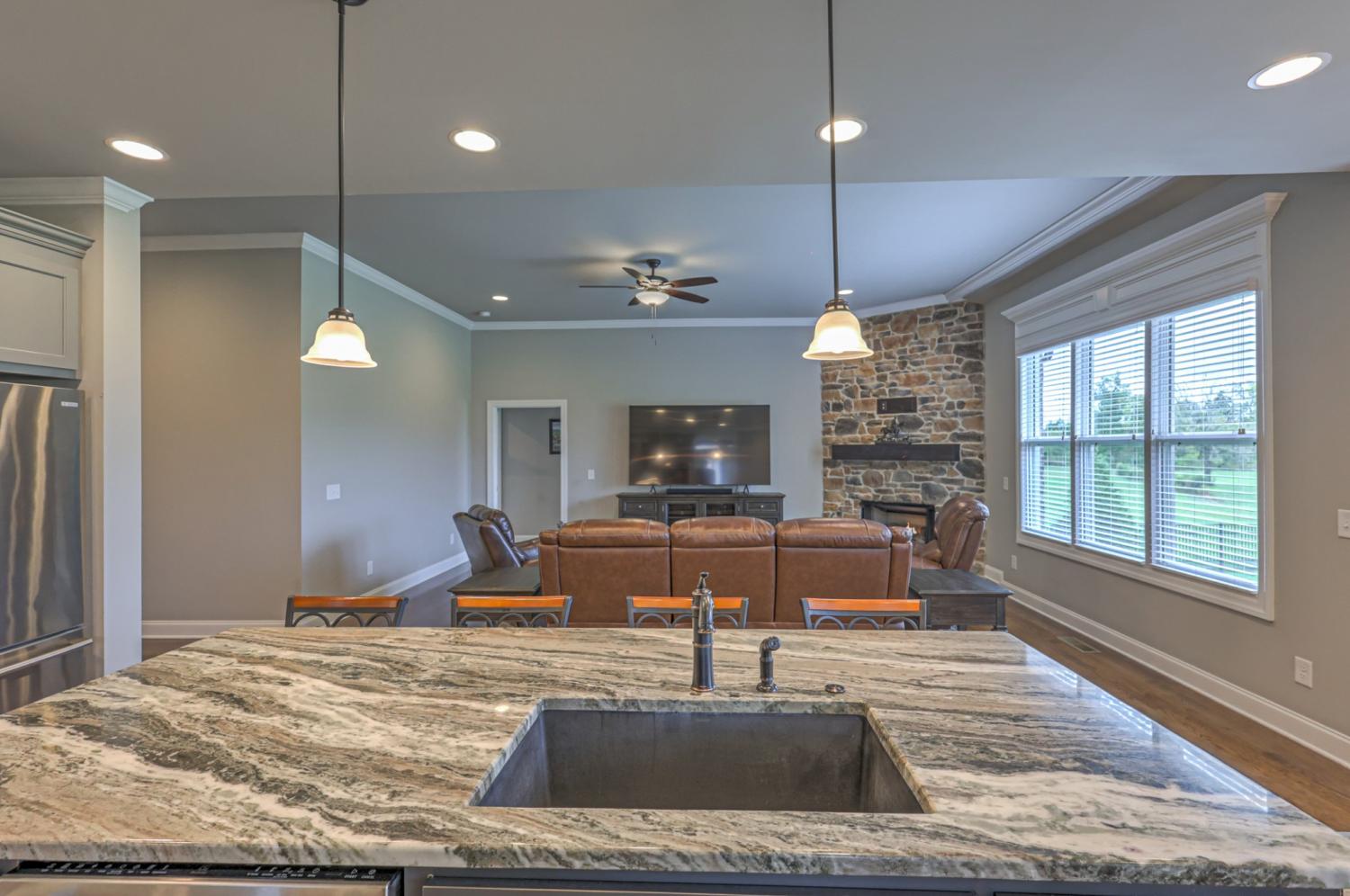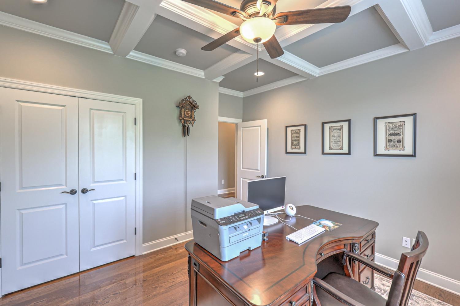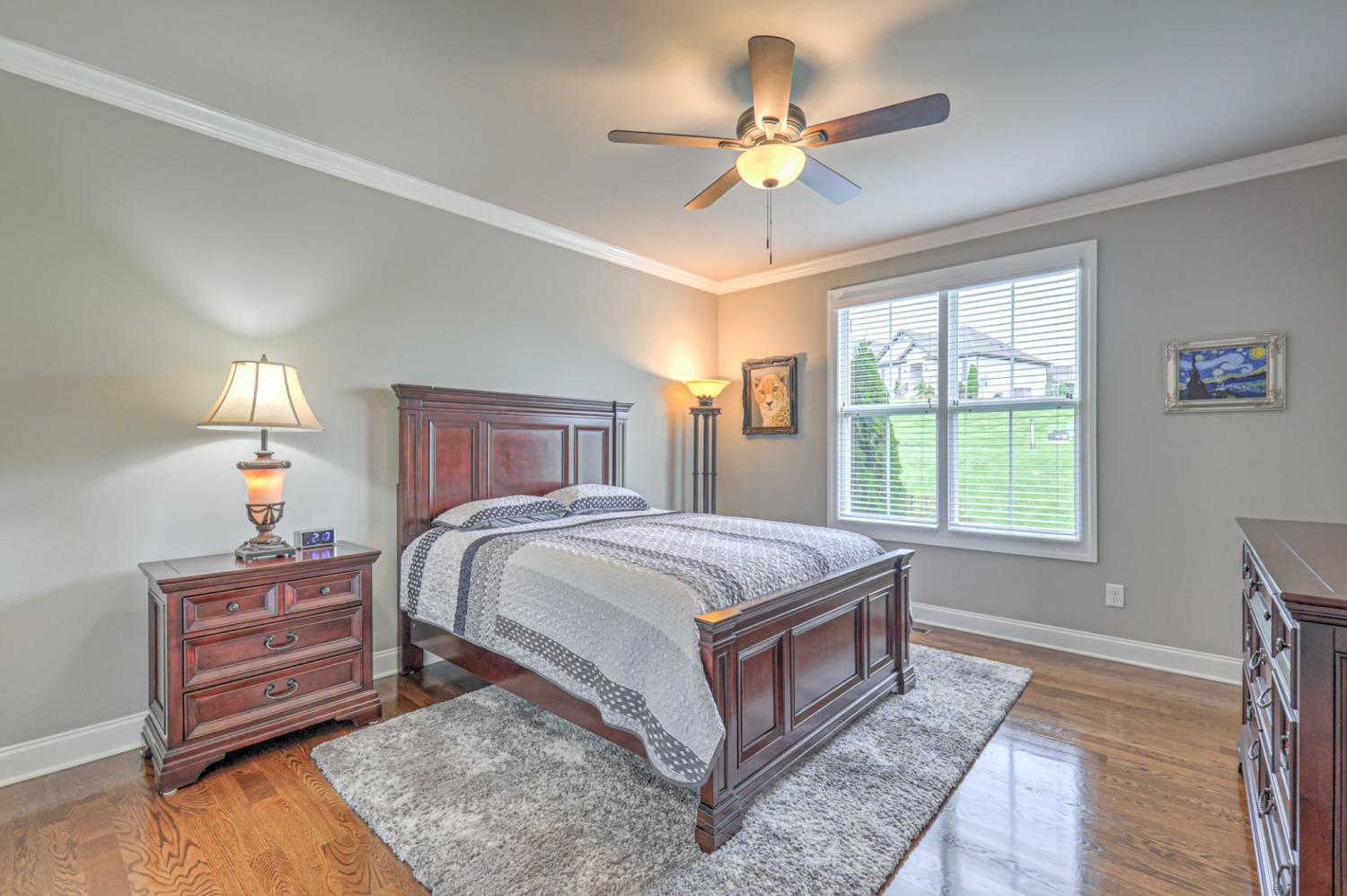 Beautifully crafted custom-built Shaw Home perfectly situated on a premium lot backing to a peaceful green belt for added privacy and views! This stunning property showcases 10-foot ceilings, elegant coffered details, and sand-and-finish hardwood floors throughout the main level, creating a refined and welcoming living space. The spacious kitchen is both functional and stylish, featuring a walk-in pantry, and the refrigerator remains. Step outside to enjoy the covered patio complete with patio furniture and shades—perfect for relaxing or entertaining while enjoying the serene backyard. Thoughtful upgrades include a wrought iron fence, irrigation system, and an enhanced crawl space with a dual sump pump and French drain system for peace of mind. Ideally located just minutes from the new Publix, local restaurants, and convenient access to I-65, this home combines luxury, comfort, and location in one exceptional package. Come experience the quality craftsmanship and lifestyle that make this home stand out!