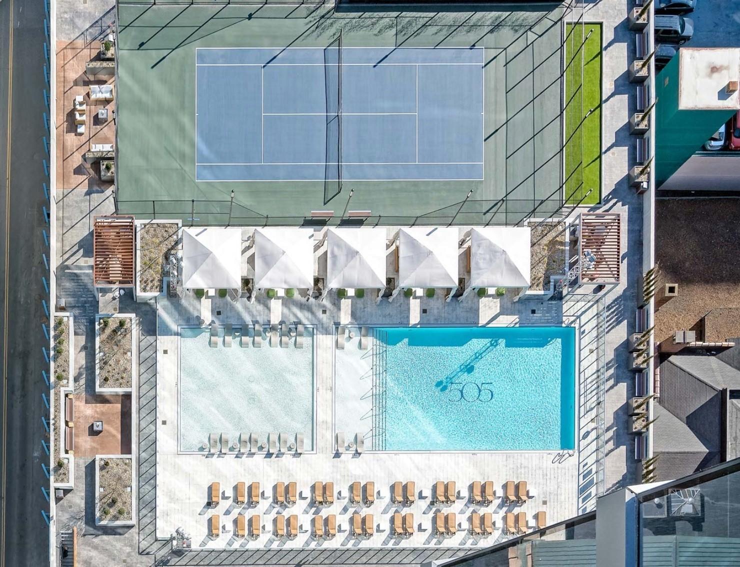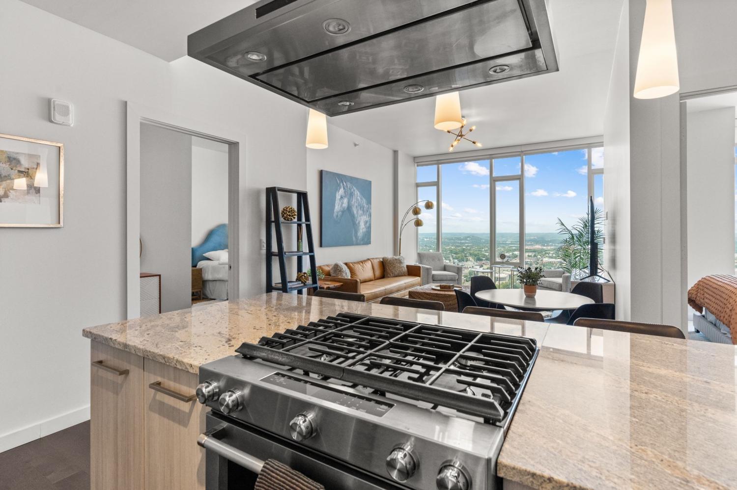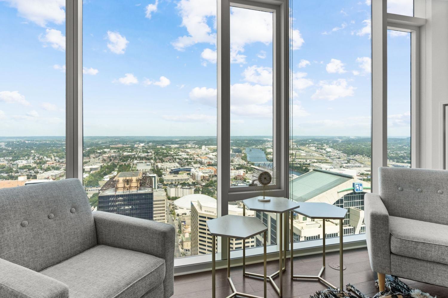 Fully furnished & one of the HIGHEST views in the city! Condo is move in ready - Just bring your toothbrush and clothes. Walking distance from major music venues, sporting events, and hundreds of restaurants/ retailers!!! 505 has resort style amenities and the largest rooftop spaces in Nashville. Parking spaces available through building.