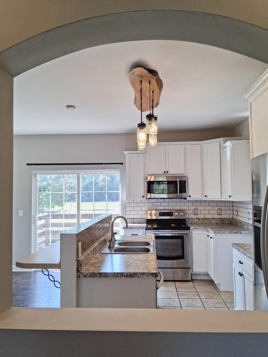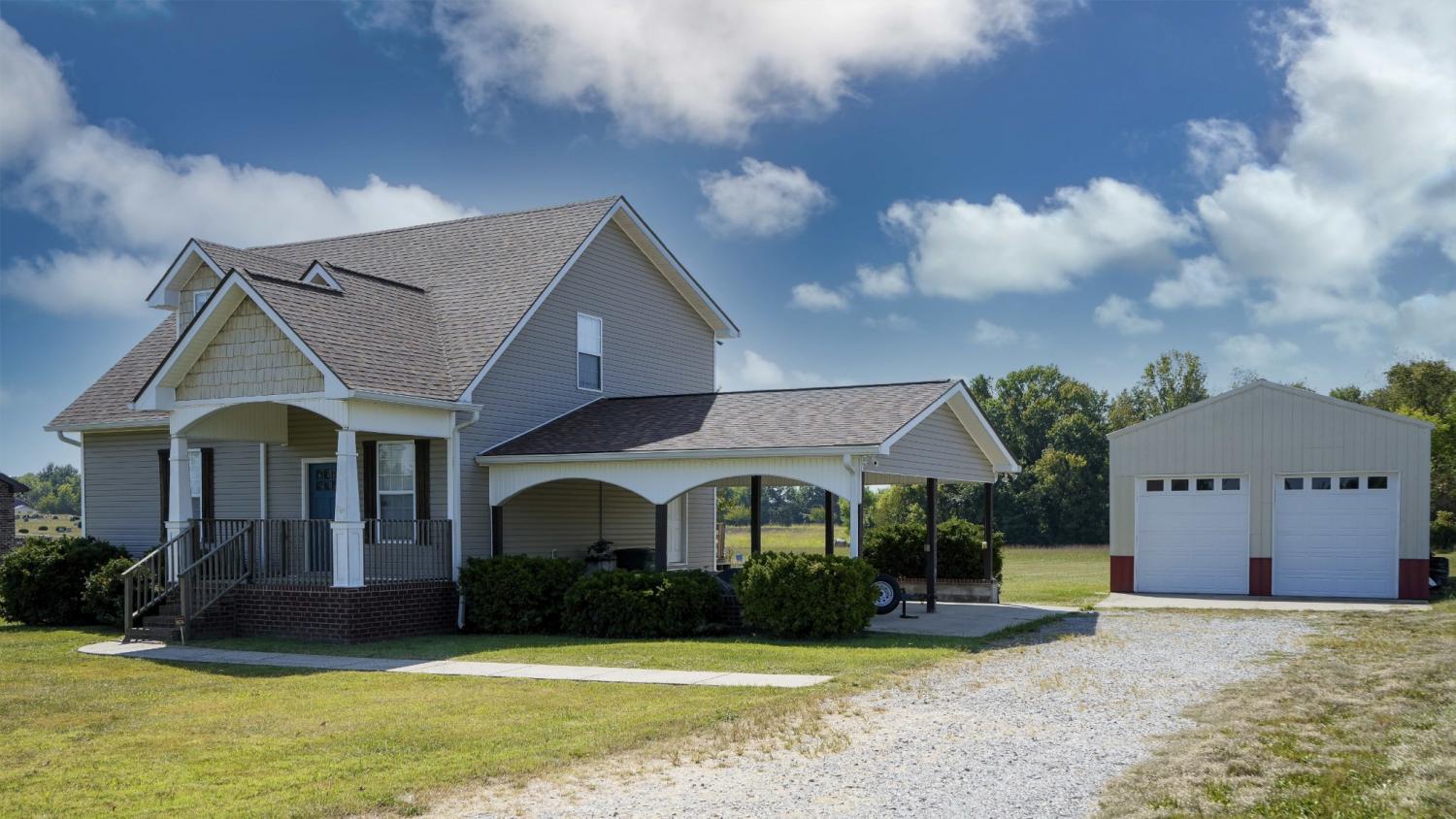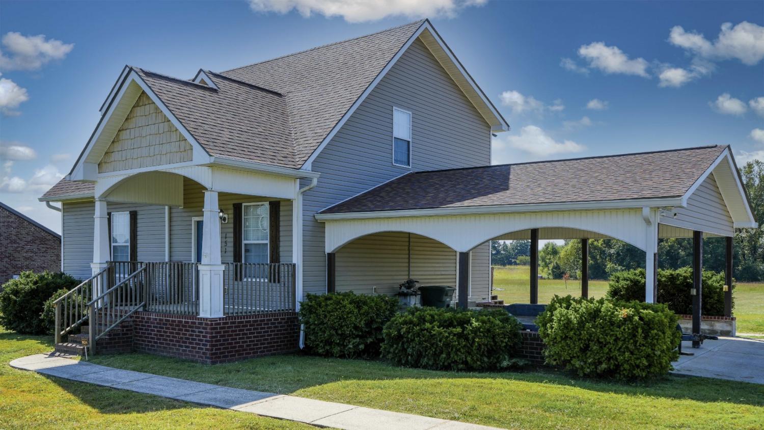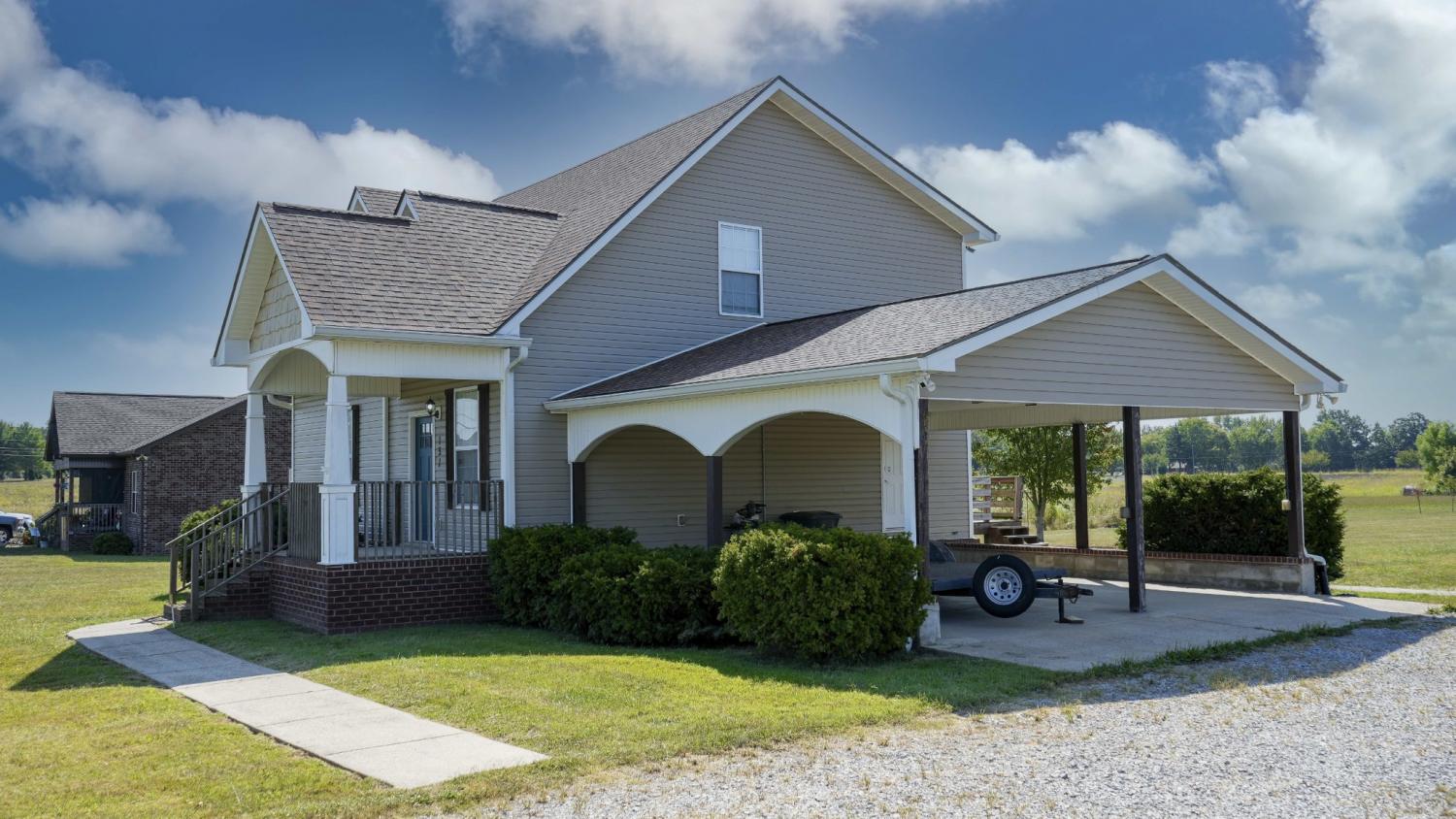 Welcome to this stunning three bedroom two bath home nestled on 1.96 serene acres, offering the perfect blend of modern style and country living. A covered porch with stylish arches andclassic white painted columns invites you inside, where the open floorplan feels warm and welcoming. The kitchen is bright and modern with farmhouse style. The large glass door to wide open spaces and natural surroundings of the acreage beckon you to relax and dream.The first floor master bedroom and bath feature dual walk-in closets, ensuite and custom tile shower. The upstairs bonus room provides a lovely versatile space for home office or second living area. On the upper floor are two oversized bedrooms and smartly thought out jack/Jill style bathroom. A graceful carport repeats the classic lines of the front entry arches and columns while the large detached pole barn adds versatility ideal for hobbies, workshop or even a horse or two! Air compressor in detached 35x24 pole barn/garage remains.