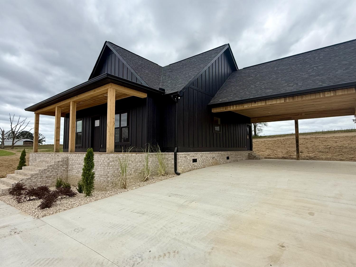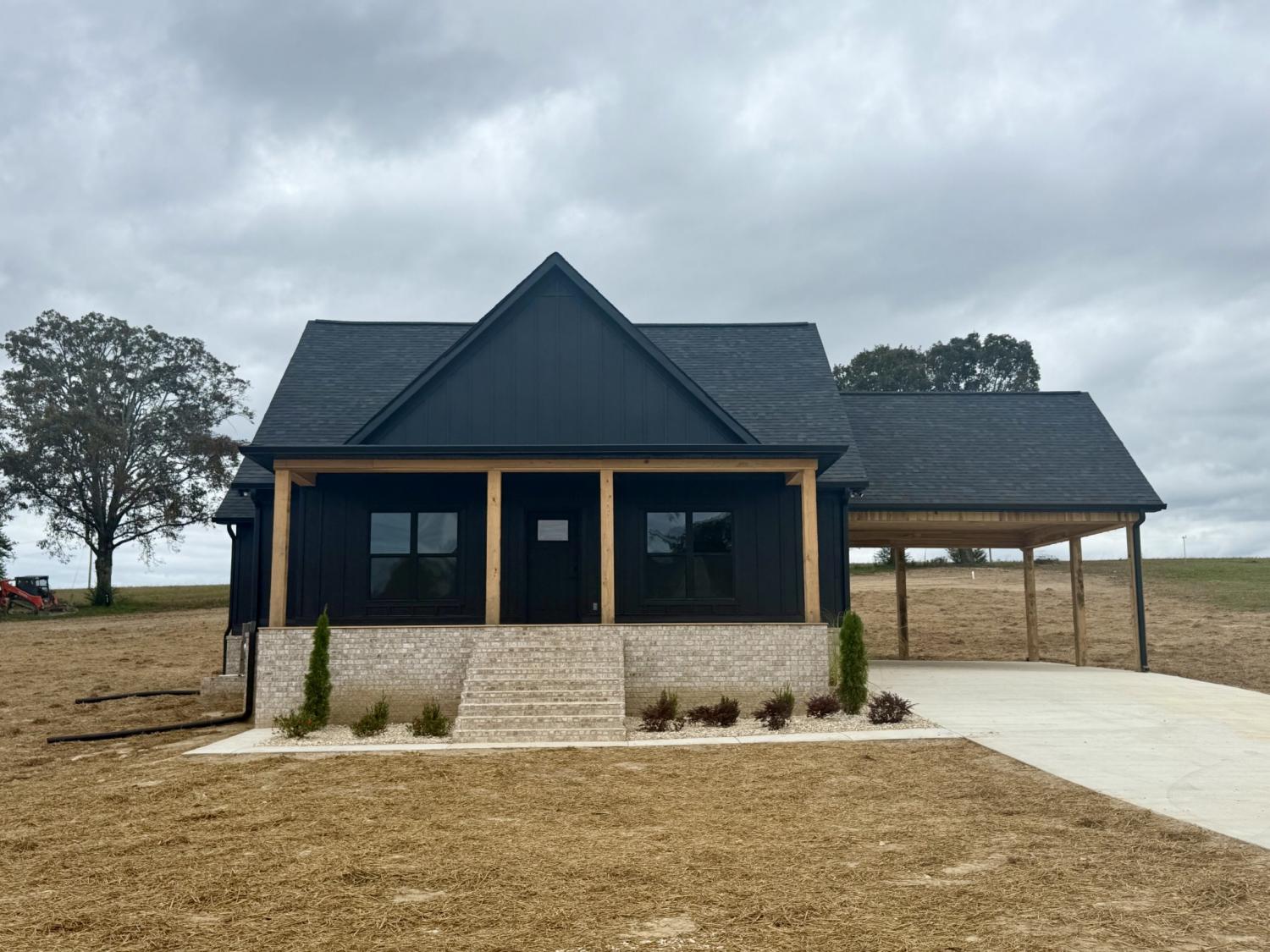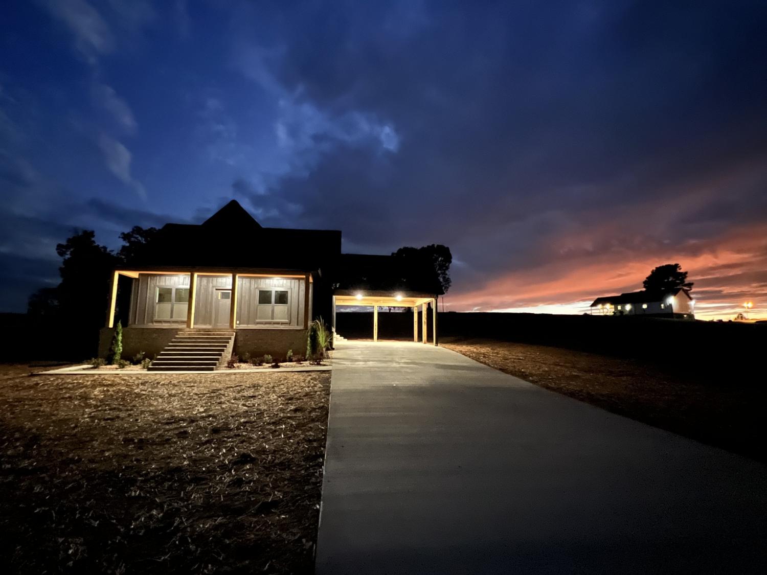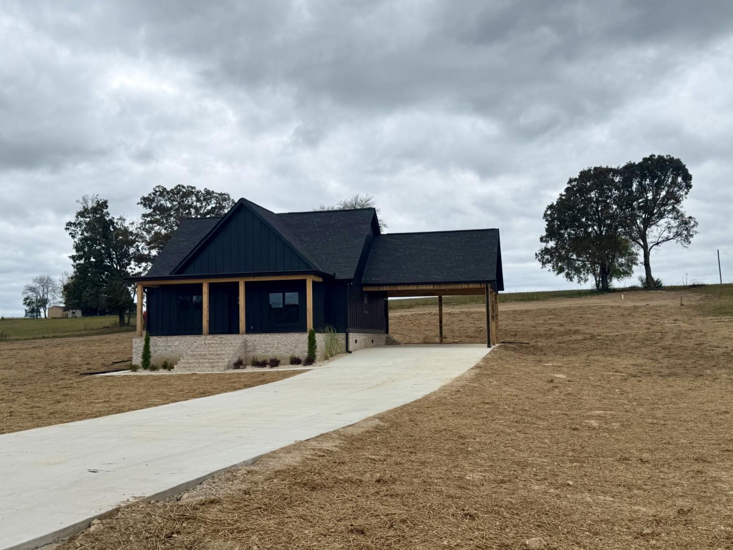 Discover exceptional luxury and craftsmanship in this brand-new 3 bed, 2 bath home, perfectly situated on 1.41 acres. Built with a combination of durable Hardy board and classic brick, the exterior is elevated with custom cypress accents, tongue & groove ceilings, and a spacious two-car carport that doubles as a covered outdoor entertainment space. A long concrete driveway and sidewalks lead to a beautifully landscaped and seeded yard, offering both curb appeal and functionality. The interior boasts open-concept living area features engineered hardwood flooring throughout and an eye-catching 10x4 honed black granite kitchen island that can seat up to 10 comfortably ~ making this home perfect for entertaining. Custom luxury cabinetry by one of the region’s top builders adds elegance and efficiency, while both bathrooms are outfitted with custom tile, double vanities, and storage towers. Additional highlights include a mudroom, premium LED lighting inside and out, and thoughtful, one-of-a-kind design features that set this home apart. A true blend of luxury, comfort, and high-end detail.