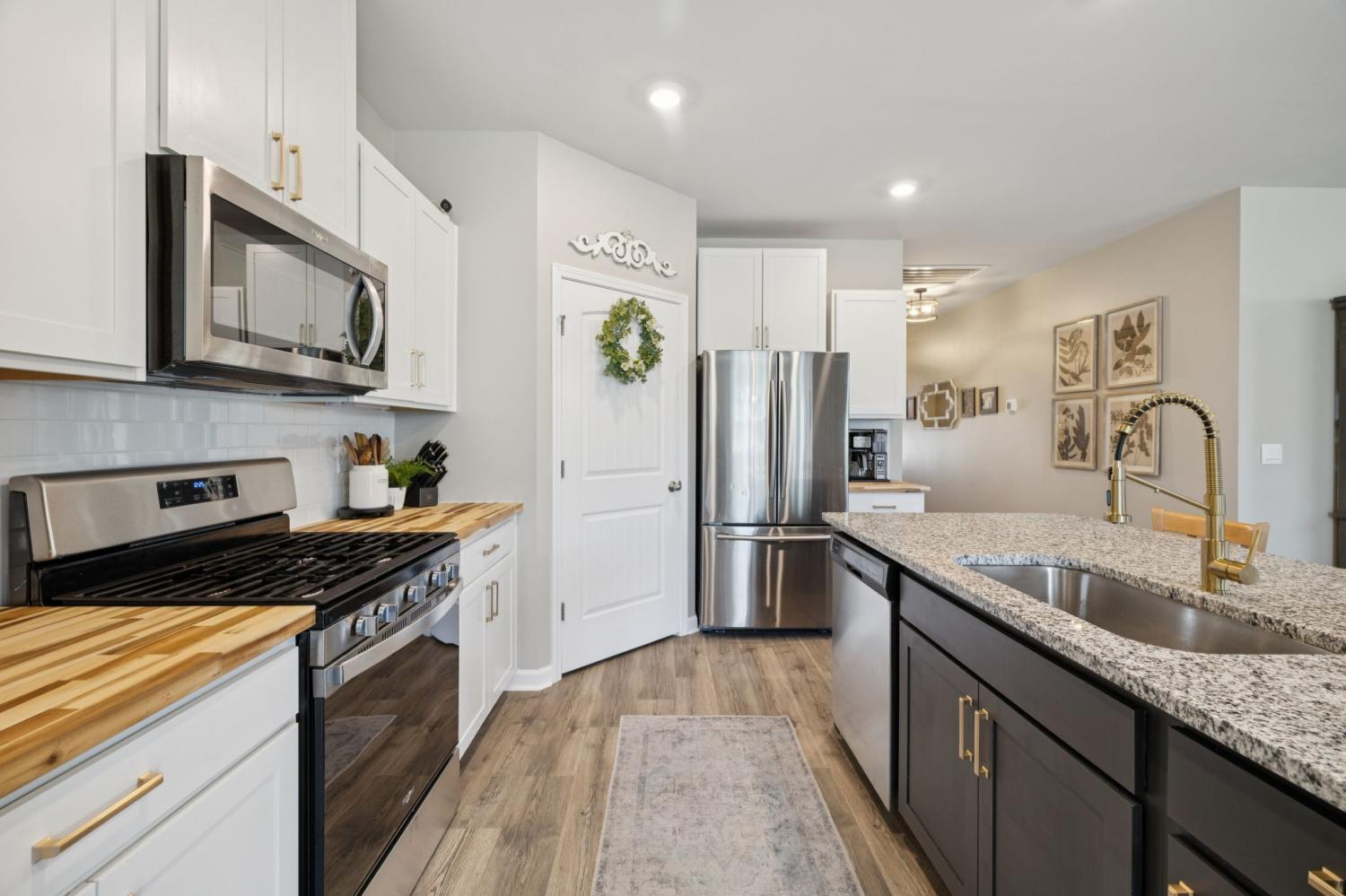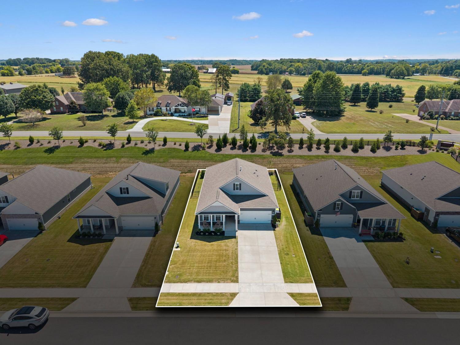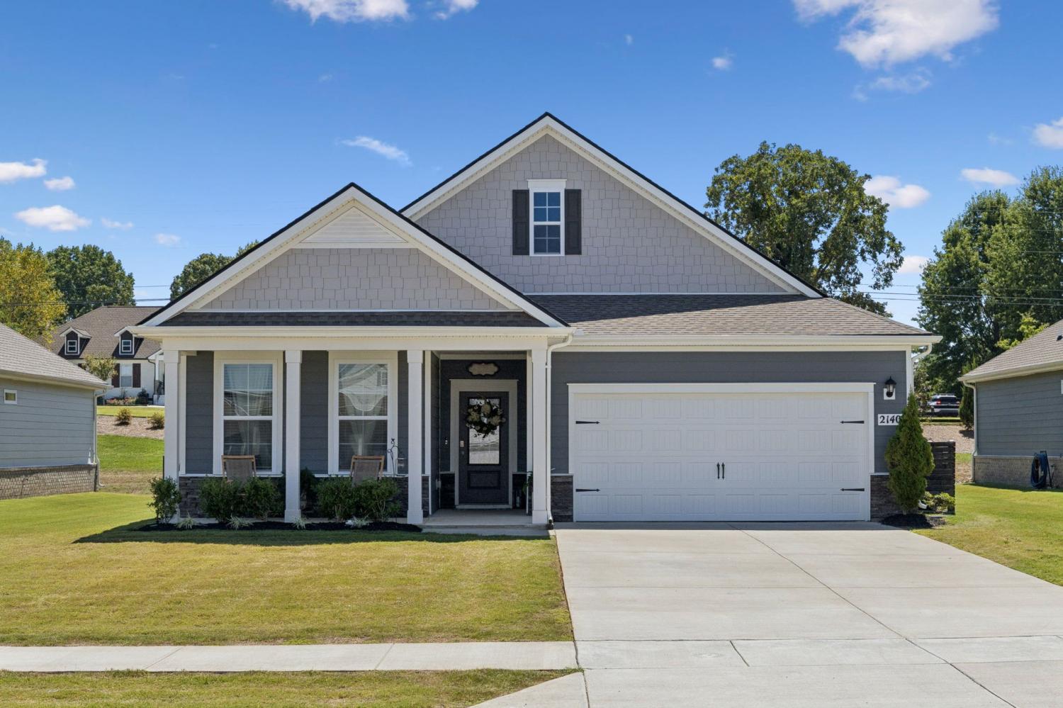 Welcome to Legacy Farms! This stunning home is filled with upgrades and designed for both comfort and style. Step inside to discover an upgraded kitchen featuring butcher block countertops, a farmhouse sink, a custom kitchen island, and beautifully updated lighting and hardware. Throughout the home, you’ll find custom accent walls, thoughtful finishes, and smart storage solutions—including laundry cabinets with a sink and custom closet organizers in the primary suite. Enjoy relaxing mornings and evenings on your front and back covered porches, or entertain with ease in a community that offers it all: a resort-style pool, firepit, state-of-the-art clubhouse, pickleball courts, and scenic walking trails perfect for sunset strolls. Additional features include granite countertops, white cabinetry, 2-inch wood blinds, ceiling fans, a smart home package, alarm system, fenced yard, upgraded landscaping, and so much more—all with a maintenance-free yard. Conveniently located just minutes from shopping and dining, 30 minutes from Downtown Nashville, and 20 minutes from Kentucky Downs, this home is truly a showstopper in one of the area’s most desirable communities.