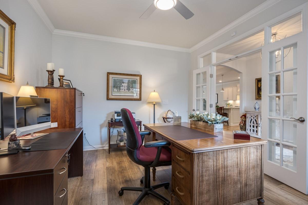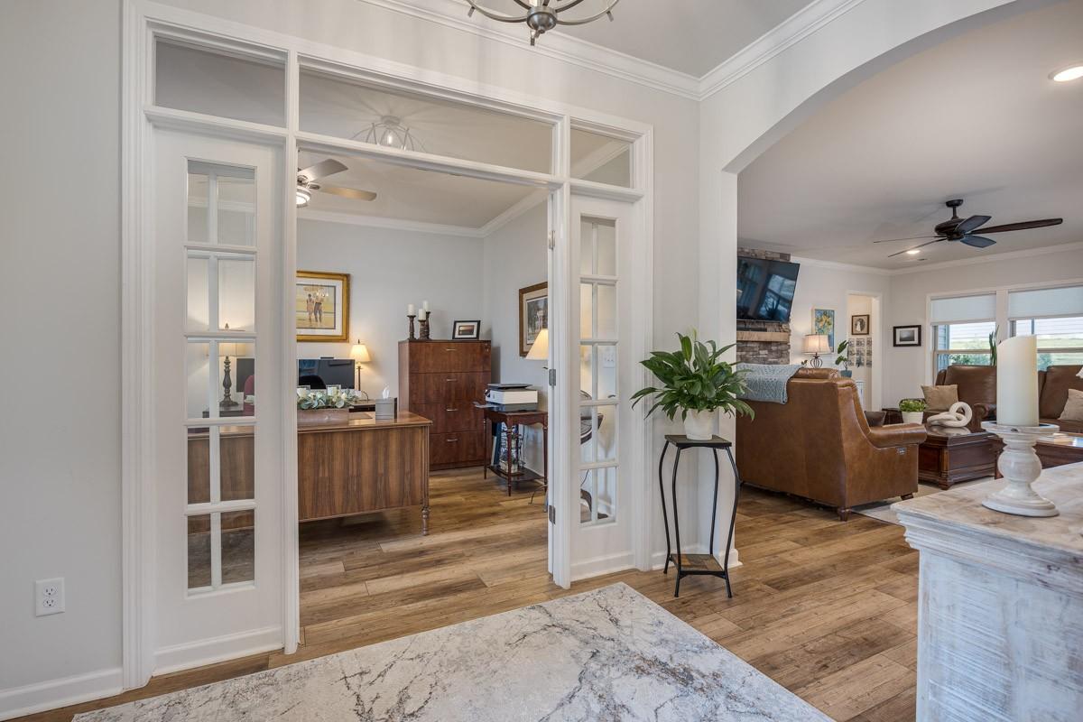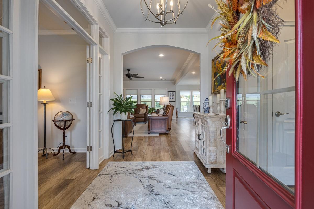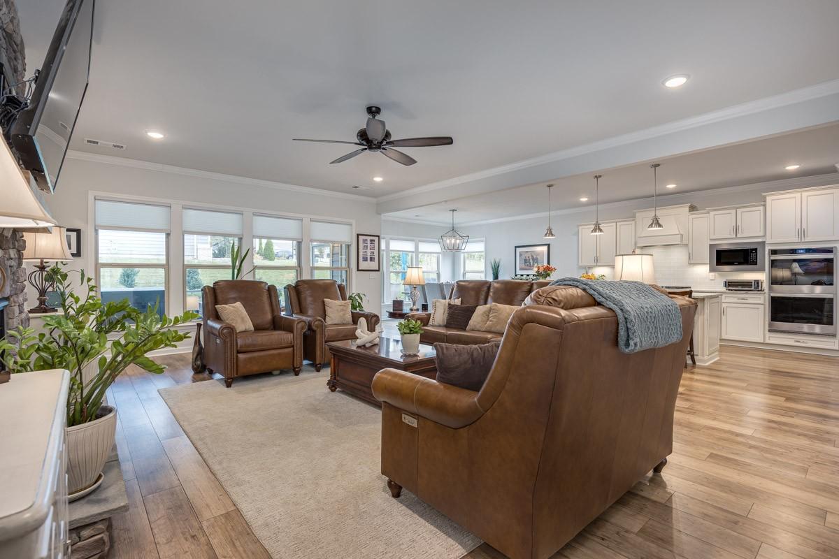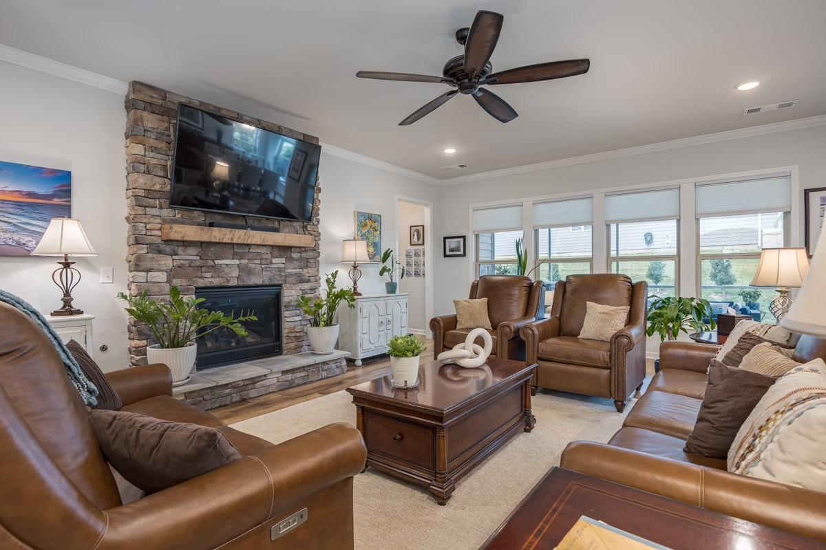 Welcome to your next chapter of refined comfort and effortless living in the coveted 55+ community of Southern Springs. This stunning 3-bedroom, 3-bath single-level residence offers 2,430 square feet of thoughtfully crafted space where luxury meets ease. From the moment you step inside, you’re greeted by an open and inviting layout that feels both spacious and intimate. Gather around the cozy fireplace in the living room, host memorable dinners in the elegant dining area, or unwind in the gourmet kitchen designed to inspire your inner chef. Step outside to your private screened-in patio, where quiet mornings and golden evenings invite relaxation. The generous primary suite provides a peaceful retreat, complete with extra shelving in the walk-in closet for added organization. Additional bedrooms offer comfort and versatility for guests or creative pursuits. A well-designed utility room features abundant electrical outlets and ample storage options, making daily living exceptionally convenient. This home also offers a spacious two-car garage with a dedicated golf cart bay and a fully accessible attic, providing even more valuable storage space. The backyard is enhanced with professionally installed French drains, ensuring both function and peace of mind. Beyond your doorstep, Southern Springs offers a world of connection and vitality—swim in the resort-style pool, play a match of tennis or pickleball, or find serenity in the yoga studio. This home isn’t just a place to live—it’s a place to thrive, to connect, and to truly feel at home.