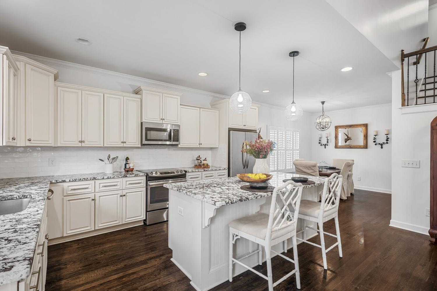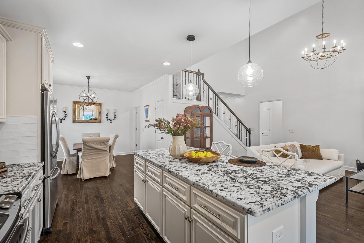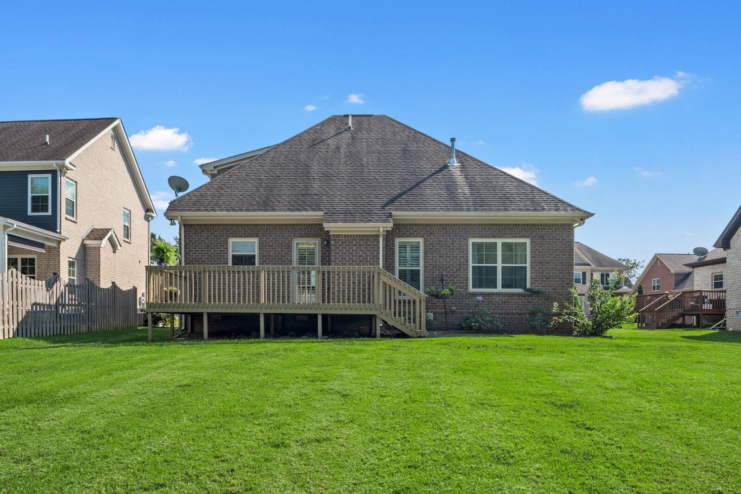 Location, location.... this four bedroom home backs to treed open space and is located close to the end of a cul de sac. Within walking distance to schools and five minutes from the new June Lake exit off of I-65. *Primary suite, Guest bedroom/Home Office and second full bath reside on the main level* Enjoy a large Game room and two bedrooms each w/ walk in closets on the second level*Originally built with many upgrades including hardwood floors throughout w/exception of wet areas and storage closet*plantation shutters on most windows & Roman shade in Kitchen*Granite countertops in all bathrooms, tile in secondary, upstairs tub/shower*Vaulted Family room ceiling*Several upgraded light fixtures from Restoration Hardware & Ballard Designs*Tile backsplash in Kitchen* Exterior and interior painting completed within the last year. Few steps into the home and homesite is relatively level. Mirrors in Family and Dining room do not convey.
