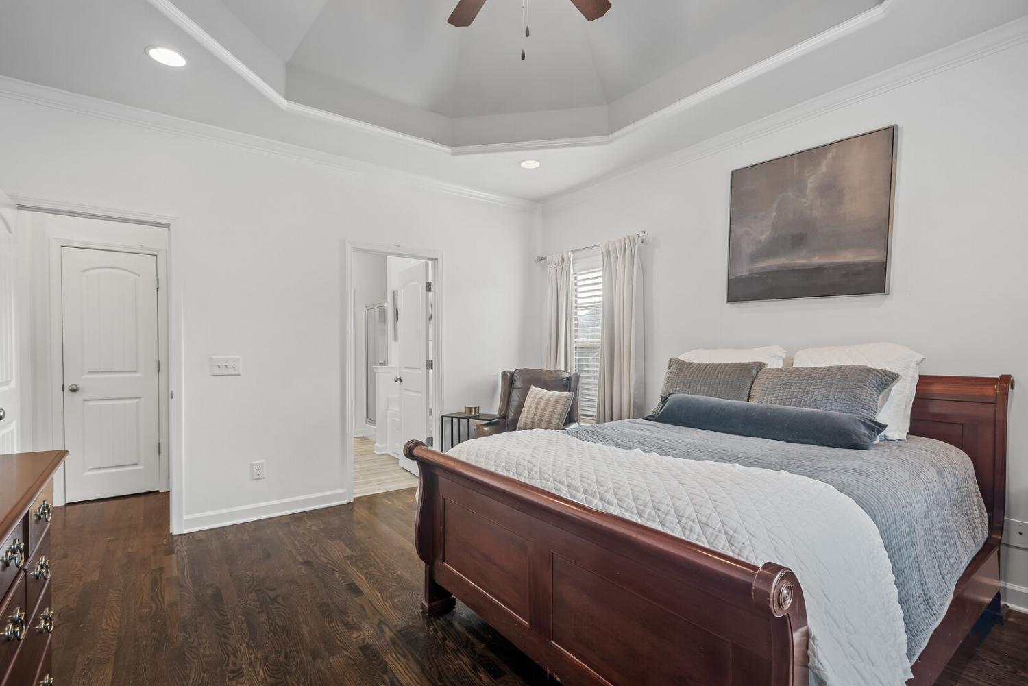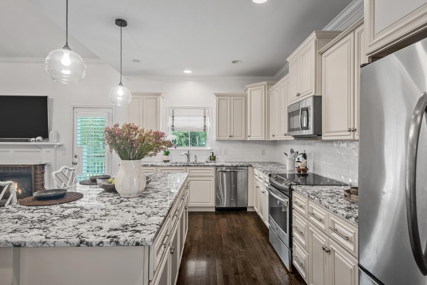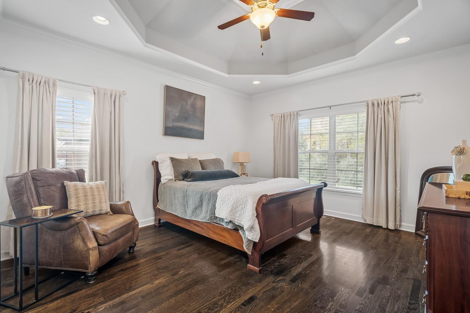 Location, location.... this four bedroom home backs to treed open space and is located close to the end of a cul de sac. Within walking distance to schools and five minutes from the new June Lake exit off of I-65. *Primary suite, Guest bedroom/Home Office and second full bath reside on the main level* Enjoy a large Game room and two bedrooms each w/ walk in closets on the second level*Originally built with many upgrades including hardwood floors throughout w/exception of wet areas and storage closet*plantation shutters on most windows & Roman shade in Kitchen*Granite countertops in all bathrooms, tile in secondary, upstairs tub/shower*Vaulted Family room ceiling*Several upgraded light fixtures from Restoration Hardware & Ballard Designs*Tile backsplash in Kitchen* Exterior and interior painting completed within the last year. Few steps into the home and homesite is relatively level. Mirrors in Family and Dining room do not convey.
