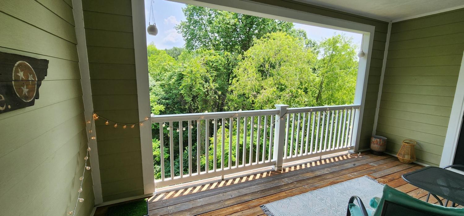 Much desired area between Nashville and Brentwood! Perfect location! VERY well kept 2BR, 2BA with an open living area with split bedroom floor plan. Perfect for roommates! All appliances including washer/dryer remains. One assigned parking spot, but plenty of guest spots available! Top floor unit on the back of the building with large covered deck and gorgeous views in the most desirable building! Backs up to a beautiful wooded area. With additional storage closet on deck. Ready for immediate occupancy!!