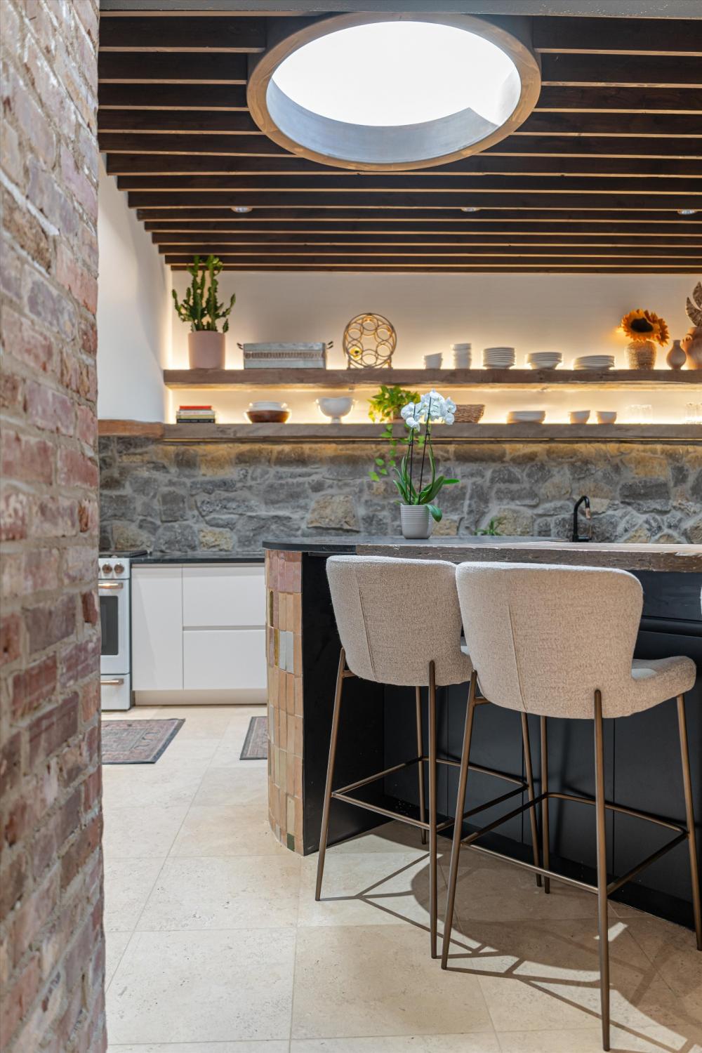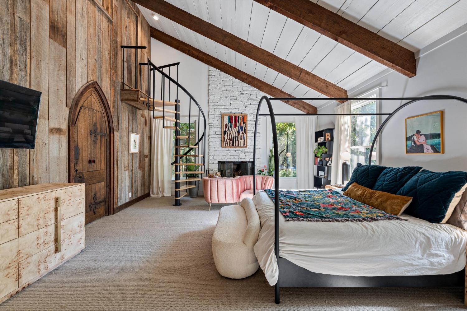 Twice featured in Southern Living, the home’s latest reinvention feels more Elle Decor than traditional — a vibrant, artful revival balancing Southern heritage with a renonwed creator's edge. Set on a rare two-acre estate along the iconic curve of Tyne Boulevard, this Forest Hills classic was recently reimagined by Bevel Construction with a creative spirit and sophisticated restraint. Inside, the 5,002-square-foot layout unfolds with warmth and intention — layered textures, natural light, and thoughtful scale at every turn. The main-level primary suite rises under cathedral ceilings with exposed beams, a fireplace, and an intimate loft, creating a retreat that feels both grounded and romantic. The kitchen is a showpiece of material contrast — limestone walls, a curved hand picked/placed zellige-tile island, open shelving, and striking architectural beams — connecting effortlessly to multiple living and dining spaces defined by tone, texture, and curated personality. Front and rear outdoor living areas extend the home’s design sensibility outward, blending mid-century form with modern functionality. A bridged circular drive welcomes guests with a touch of stately charm while providing ample parking and a two-car garage with generous storage. Private yet connected, imaginative yet timeless — this is Forest Hills living at its most compelling: creative, serene, and effortlessly refined.