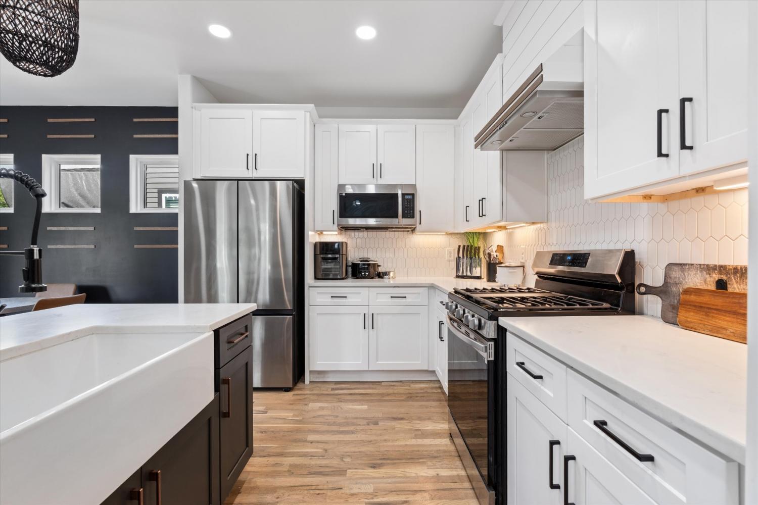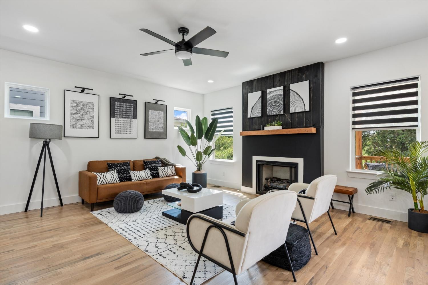 Fully furnished and move-in ready in scenic Whites Creek! This like-new 3 bed, 2.5 bath home features bold modern design, an open-concept layout, custom accent walls, and a stunning black-and-white palette. The kitchen offers quartz countertops, stainless steel appliances, and a large island perfect for entertaining. Upstairs, the spacious primary suite includes a tray ceiling, feature wall, and spa-like bathroom. Enjoy peaceful mornings on the back porch overlooking a large yard surrounded by greenery. Turnkey living at its finest!
