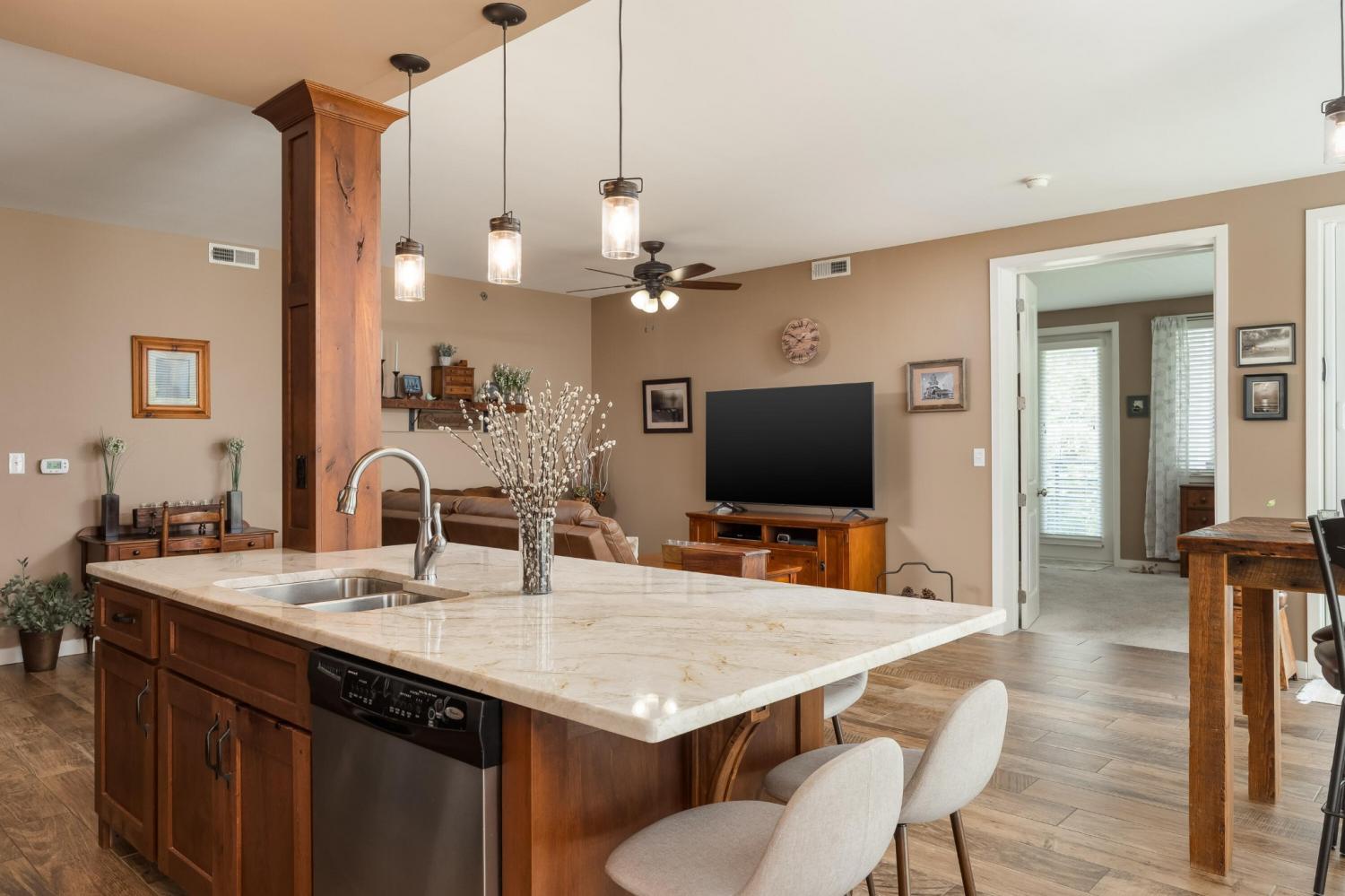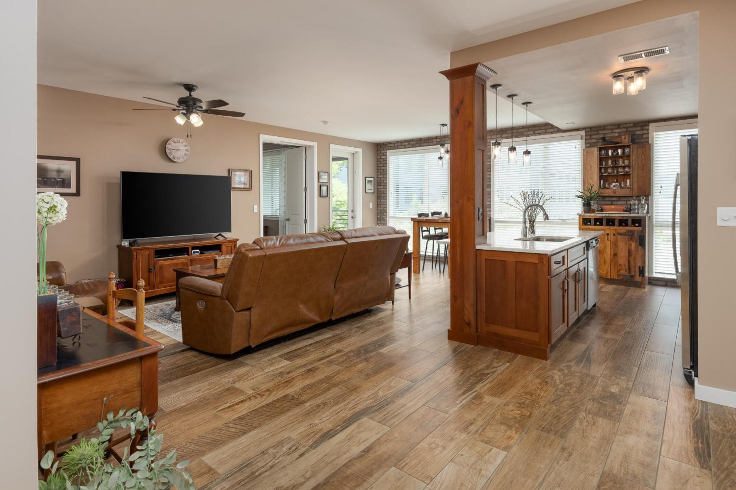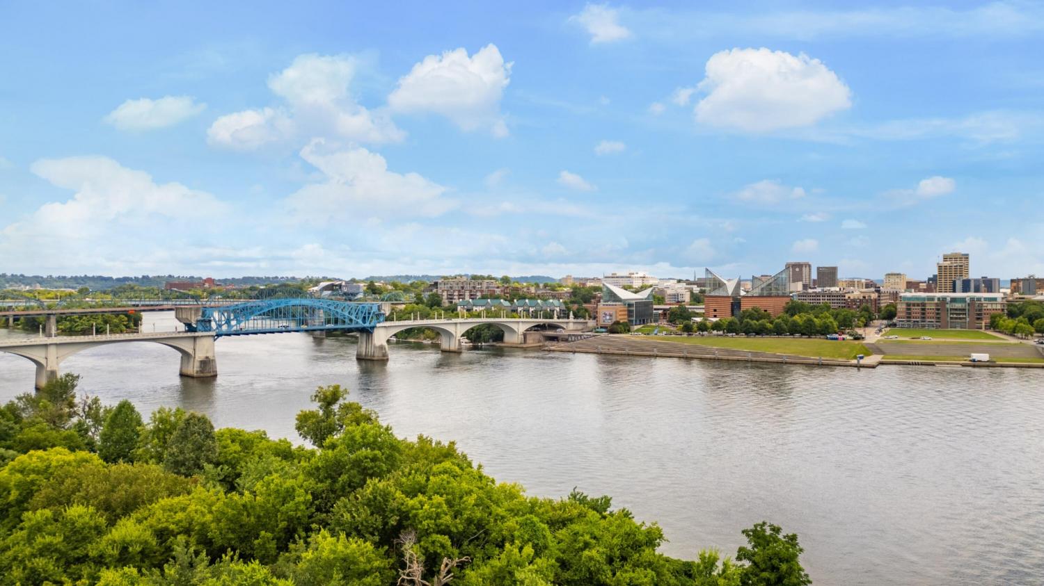 Discover upscale living in this beautfiully appointed condo-home located in one of North Shore's most desirable communities. This expansive two bedroom, two-bath home offers both space and sophistication, nestled among the peaceful wooded surrounding with stunning sunset views melting into Signal Mountain. Don't miss this rare opportunity to own the largest style condo in the 1 North Shore community. Enjoy floor-to-ceiling windows that bathe the open living area in natural light and frame the stunning sunsets for your enjoyment. The primary suite is a true escape, featuring a private balcony, a custom-designed walk-in closet with barn door, and a spa inspired ensuite with double vanity, soaking tub, and walk-in tiled shower. The heart of the home features a tastefully designed galley-style kitchen complete with farmhouse style sink, and stylish finishes - perfect for cooking, gathering, and entertaining. It has a layout that flows effortlessly into the open living and dining areas. The thoughtful cabin-esque design elements - including warm wood tones, custom accents, and natural textures - create a welcoming retreat-like atmosphere. Additional highlights include the convenience of a true laundry room with extra cabinetry and full sized stackable washer and dryer, a bonus room with an oversized storage closet - perfect for a home office, den, hobby/craft space. Enjoy an incredible amenity package that includes a resort-style pool community grilling area w/ fresh herbs, copper fire table located on the community deck, a recently renovated fitness center, and a Penthouse Clubroom with breathtaking views of the TN River, Lookout Mtn., downtown Chattanooga, and the city's iconic Tennessee Aquarium. This condo is more than just a home, it's a lifestyle. Unbeatable walkability - just steps to walking paths, restaurants, Coolidge & Renaissance parks, Publix/Wholefoods, and all that the North Shore has to offer.