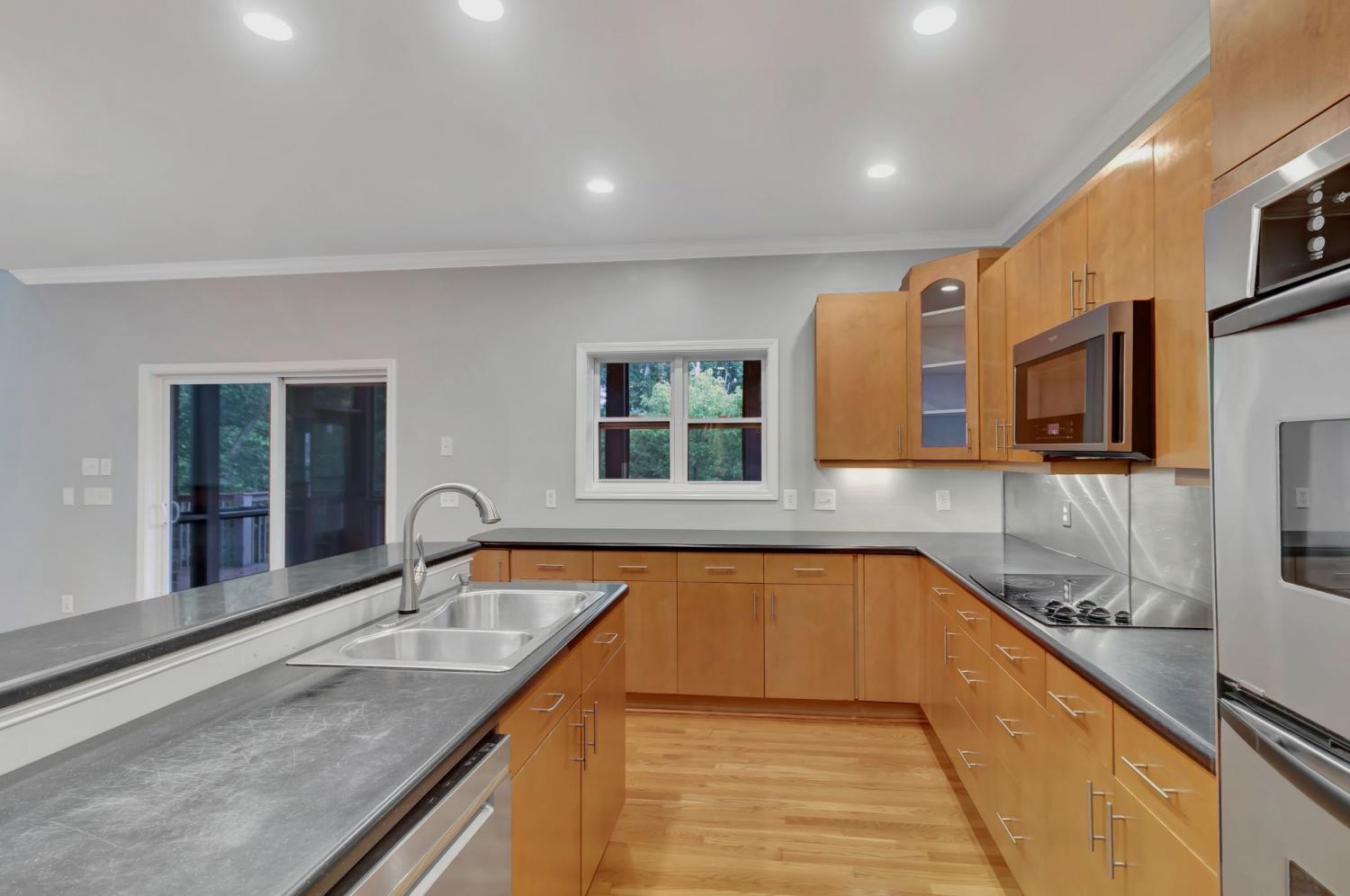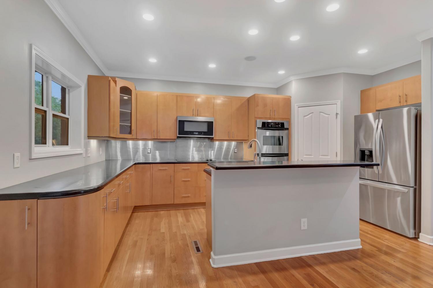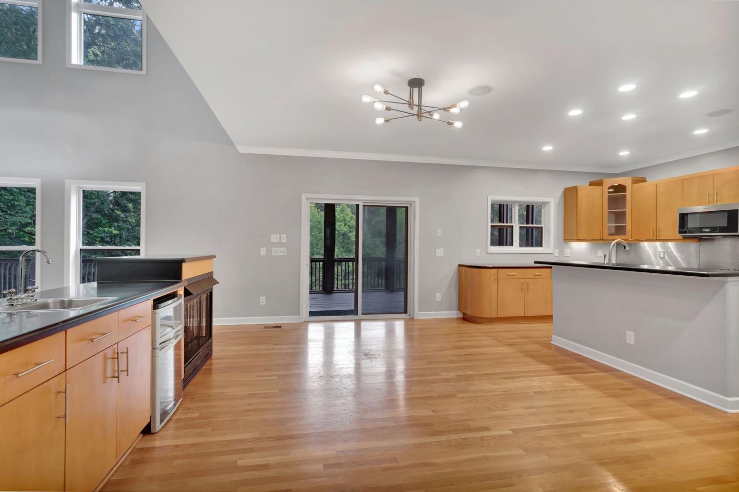 Fabulous light drenched floor plan with volume ceilings! Very private and serene, tucked away in a cul de sac with mature trees. Airy and open with contemporary glamour. Great room flows into the well appointed kitchen with lovely screened deck, bringing the outdoors in. Perfect home for family and entertaining. Primary suite to die for! Featuring tray ceiling, private balcony and spa like bathroom suite. Flex space on terrace level with full bath could be perfect au pair, mother in law or workout space. Lovely irrigated landscaping. Abundant storage and a 3 car garage. This home is not your typical cookie cutter. Stunning!