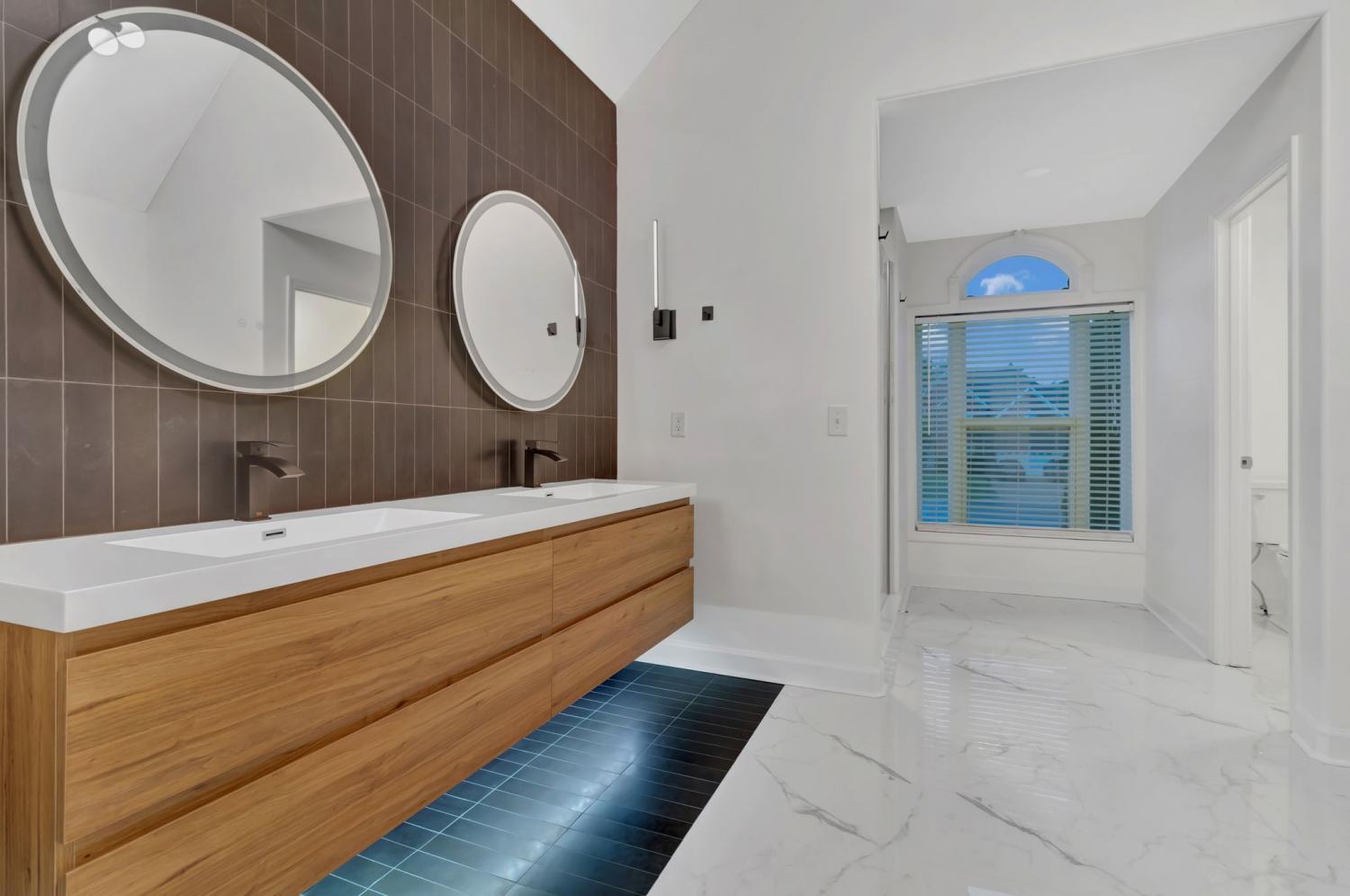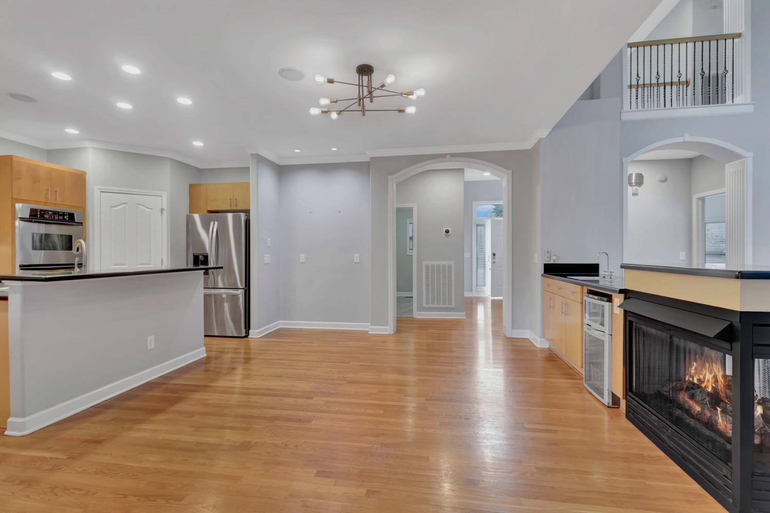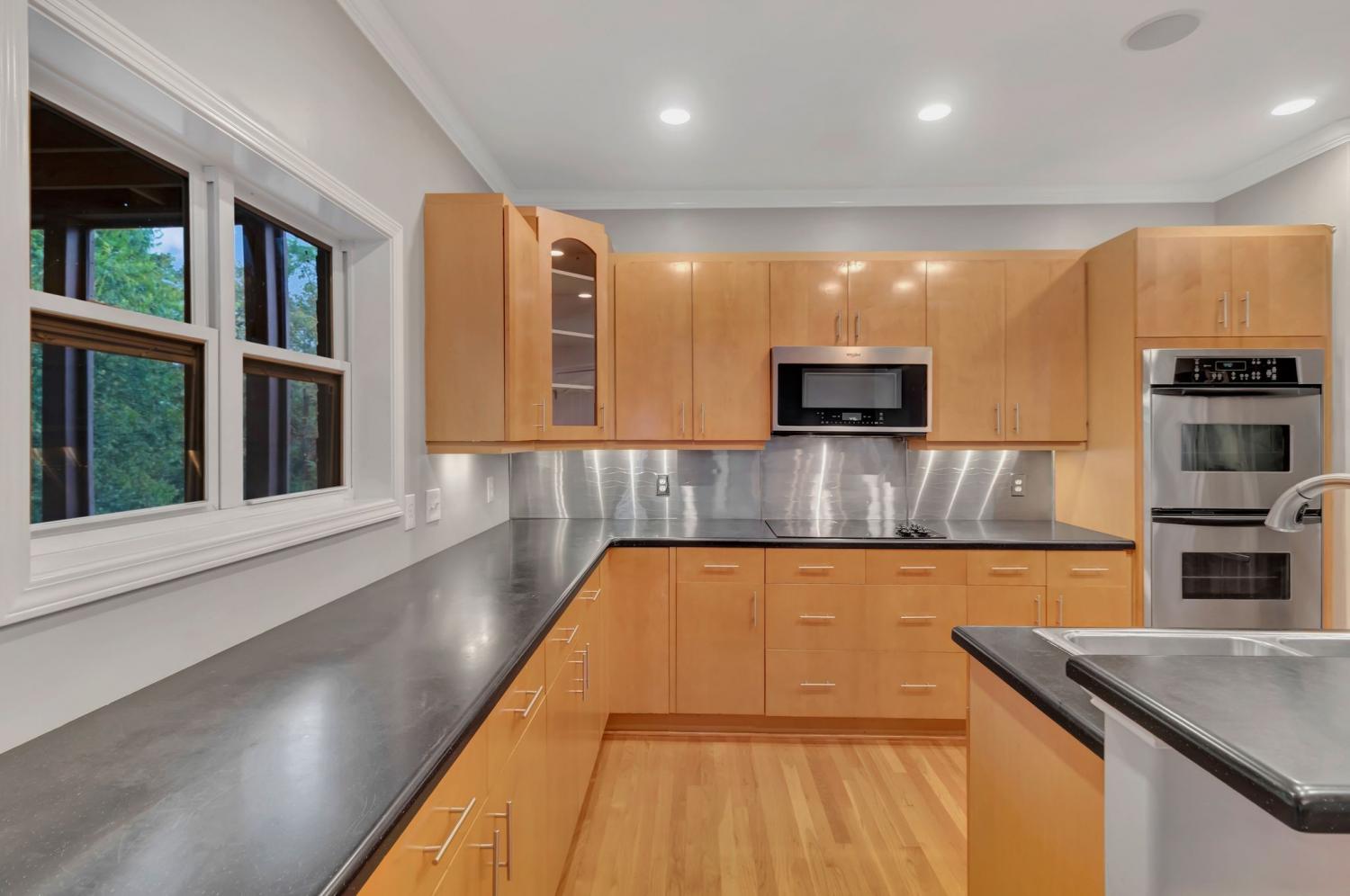 Fabulous light drenched floor plan with volume ceilings! Very private and serene, tucked away in a cul de sac with mature trees. Airy and open with contemporary glamour. Great room flows into the well appointed kitchen with lovely screened deck, bringing the outdoors in. Perfect home for family and entertaining. Primary suite to die for! Featuring tray ceiling, private balcony and spa like bathroom suite. Flex space on terrace level with full bath could be perfect au pair, mother in law or workout space. Lovely irrigated landscaping. Abundant storage and a 3 car garage. This home is not your typical cookie cutter. Stunning!