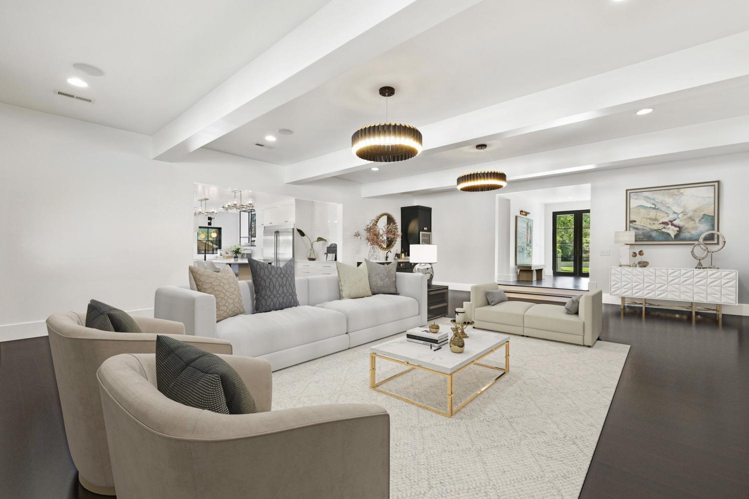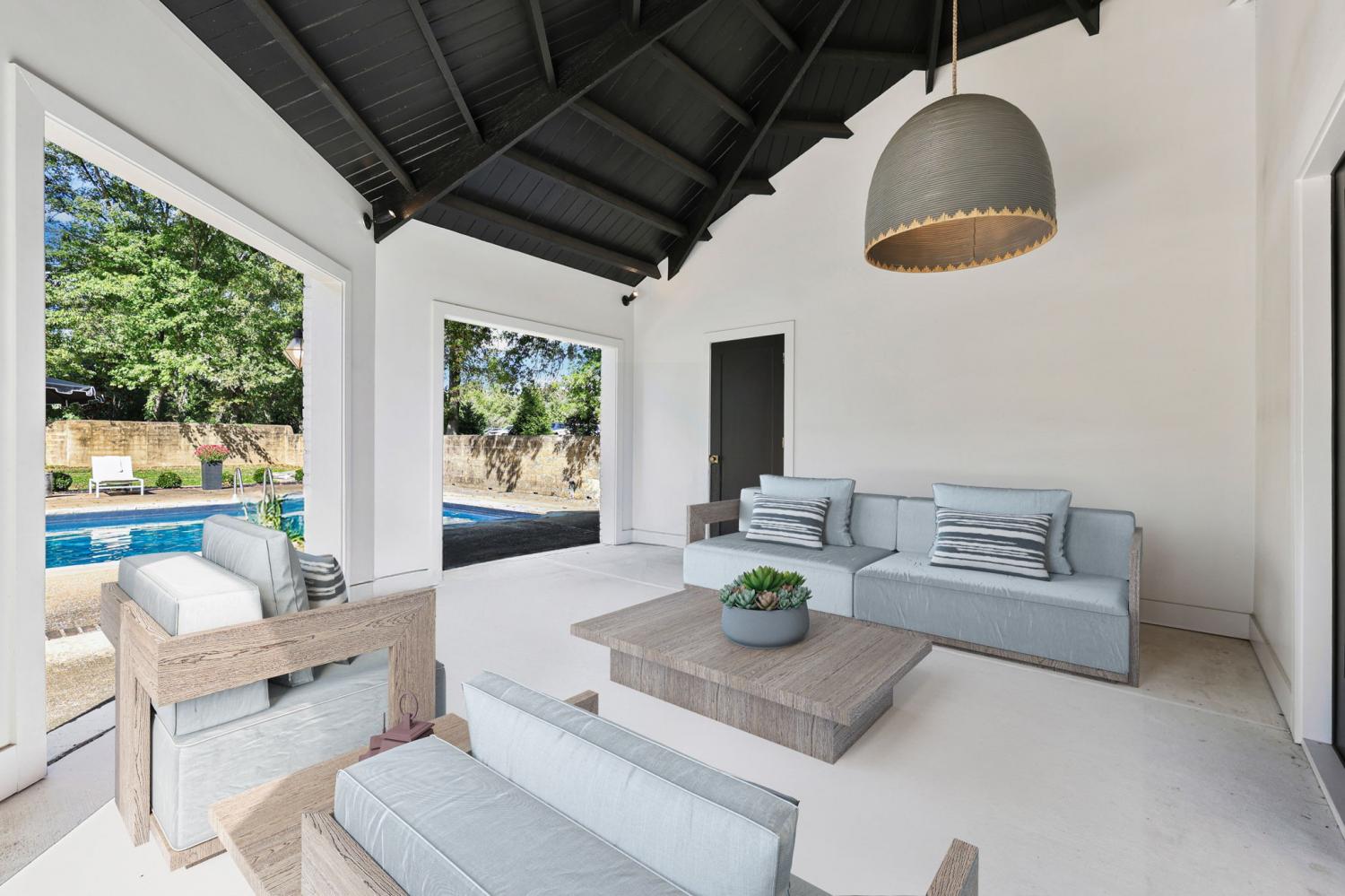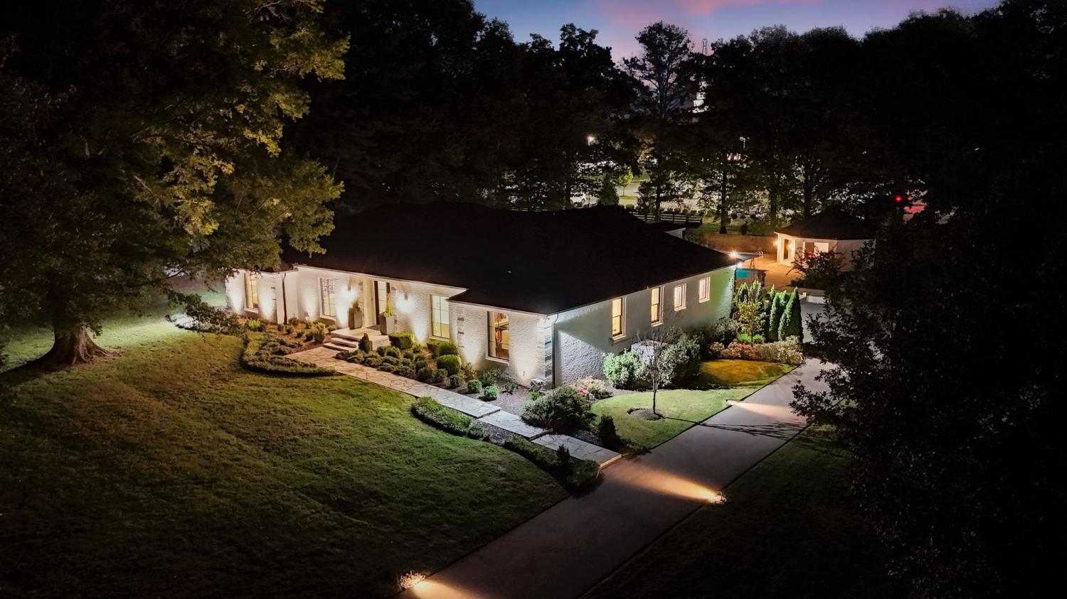A truly remarkable ONE LEVEL home on a gorgeous .94 acre lot with a pool and pool house that all lives and feels just like brand new construction. NEW roof, NEW HVAC with allergy guard filter system, NEW windows, NEW water heater, NEW outdoor lighting, NEW designer finishes throughout, and professionally organized by The Home Edit. Welcomed by a custom gated entry and flagstone walkway, step inside to true hardwood floors with a herringbone entryway, designer lighting throughout and windows that flood every single room with natural light. The chef's kitchen features double ovens, top of the line appliances, quartz countertops, inset cabinetry, two refrigerated drink drawers, 6 burner gas range, hidden KitchenAid retractable countertop, hidden coffee bar cabinet, and a custom glass door walk-in pantry of your dreams. A friend's entry is located just through the mudroom located conveniently right beside the kitchen. Entertain with ease with a surround sound system and full wet bar located right beside the spacious living room and kitchen which is equipped with a Scotsman ice maker, wine fridge, and sink. The home has the extra spaces you need featuring a true office with a custom quartz desktop for two with built-in cabinets all overlooking the beautiful front yard as well as a hobby room perfect for a workout room, play space, craft room, or storage room. The primary suite with vaulted ceilings is located on its own wing of the home with a spa bathroom and luxurious walk-in closet. End your day on the screened in porch with a gas fireplace all overlooking the backyard oasis. The stunning pool and pool house with a half bathroom and washer and dryer hookups are surrounded by professionally designed landscaping and lighting making it the perfect space to end your day or entertain your family and friends. Crawlspace is fully encapsulated and conditioned with brand new dehumidifier-2025. New pool house water heater-2025. New pool water filter-2025. Vol HOA.