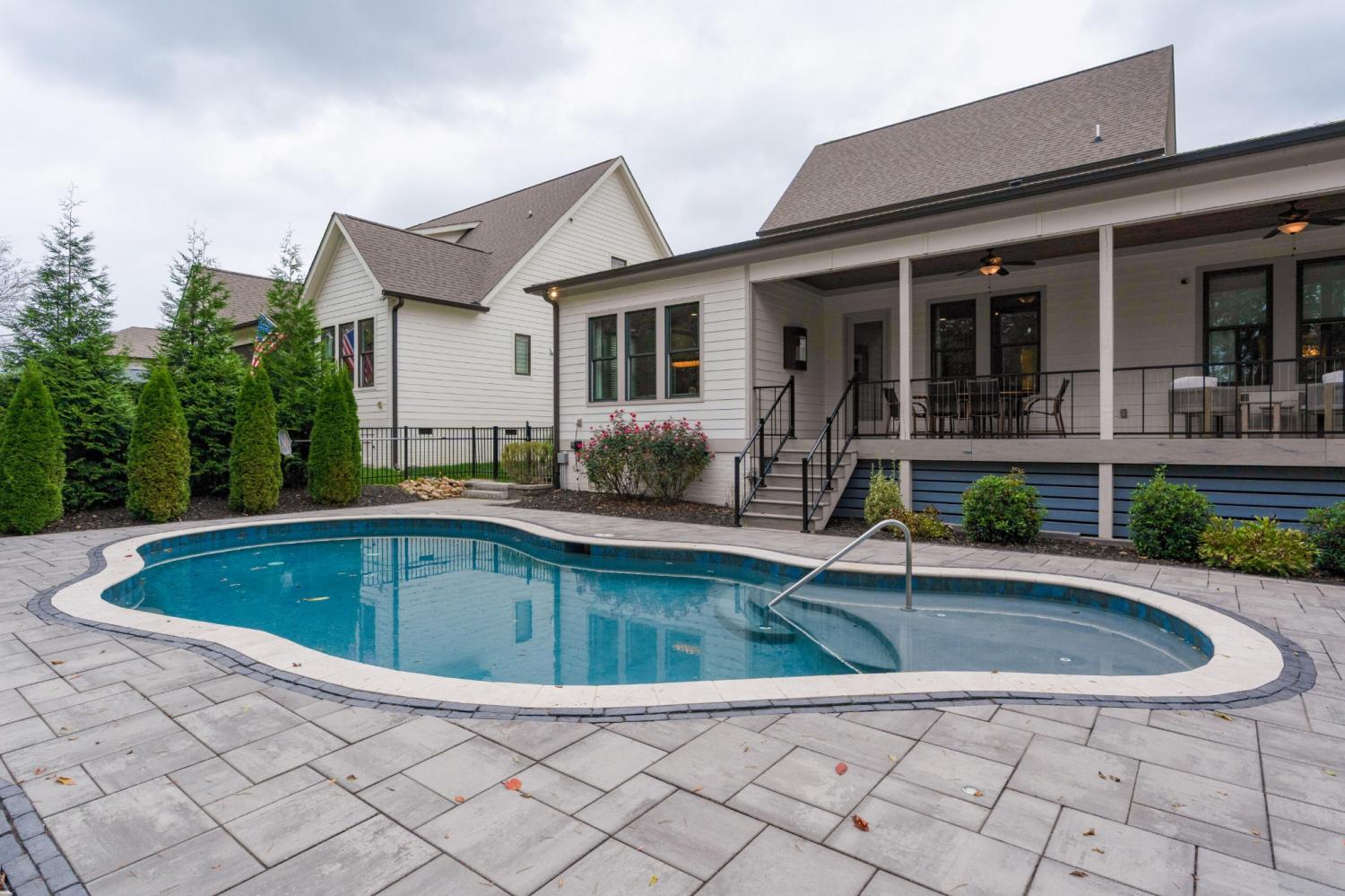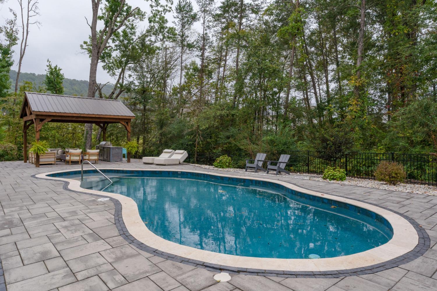 Elegant, yet comfortable, 4 bedroom, 4 full bath home with a heated salt water gunite pool and back yard oasis in the desirable Wolf Creek neighborhood in Ooltewah close to schools, shopping and restaurants. Well designed with premium finishes, the home boasts hardwood floors, crown moldings, decorative and recessed lighting, 10' ceilings on the main, window treatments, granite countertops, tiled showers, new closet systems and more. You will love the open floor plan and that there are 2 bedrooms on the main level, including the primary suite, and that all 4 bedrooms have private or shared access to a full bath. Your tour begins with entry to a dedicated foyer that leads to the great room which is open to the kitchen and dining area. The great room has a gas fireplace and access to the rear covered deck - perfect for indoor to outdoor entertaining. The kitchen features a large center island with pendant lighting, subway tile backsplash, under-cabinet lighting, soft-close drawers, and stainless appliances. The dining area has a striking light fixture and lends itself to both formal and informal gatherings. There is a nice walk-in pantry and a laundry room in the hallway from the kitchen to the 2-bay garage which has a tankless water heater and overhead shelving for extra storage. The primary bedroom is on the opposite side of the house and has a coffered ceiling with natural wood beams, a hand-painted accent wall, and the primary bath with an elongated dual vanity, free-standing tub, separate shower with rain and regular shower heads, and a large walk-in closet with a new wood closet system. The upper level has a roomy landing that serves nicely as a den, plus 2 additional bedrooms, one with a private bath, and the other with an adjoining shared bath. Head out back, and you will never want to leave! The covered composite deck has ceiling fans and overlooks the pool and patio areas which back up to a wooded area providing a privacy buffer.