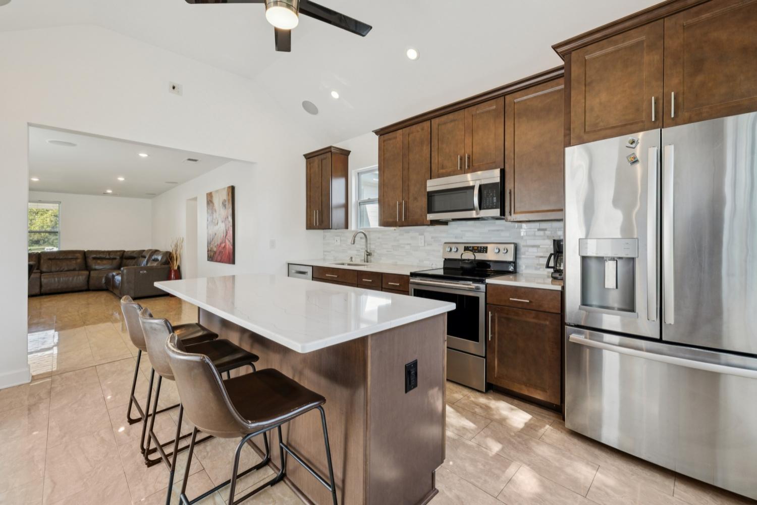 Welcome to 314 Lake Farm Rd — a beautifully renovated, one-level home in the heart of Smyrna that defines “move-in ready.” Every inch of this 3-bedroom, 3-bathroom ranch has been thoughtfully updated with modern finishes and high-tech features. From the moment you arrive, you’ll be impressed by the crisp white-brick exterior, manicured landscaping, and oversized driveway that easily accommodates six cars. Step inside to discover stunning marble floors that flow throughout the home — no carpet anywhere! The open-concept floor plan offers effortless living and entertaining, with built-in ceiling speakers in every room, a full home-security and camera system, and smart-home controls for lighting and locks. The chef’s kitchen steals the show with soaring ceilings, quartz countertops, double pantries, stainless-steel appliances, and a large island perfect for gathering. The spacious primary suite includes one of the largest closets you’ll find and a luxurious spa-inspired bath featuring an oversized glass shower, double vanity, and makeup counter. Two additional bedrooms each have access to beautifully tiled full baths, including one with a murphy bed and en-suite bath. Step outside to your private backyard retreat — complete with a large patio, grilling area, mature shade tree, and full privacy fence. With no HOA, extremely low property taxes, and a location just minutes from Walmart, the Nissan Plant, and West Fork Recreation Area, this home truly offers the perfect blend of comfort, convenience, and cutting-edge living.