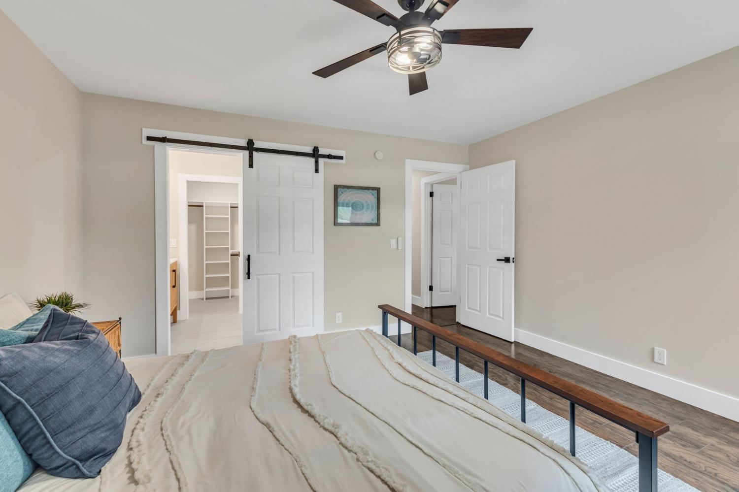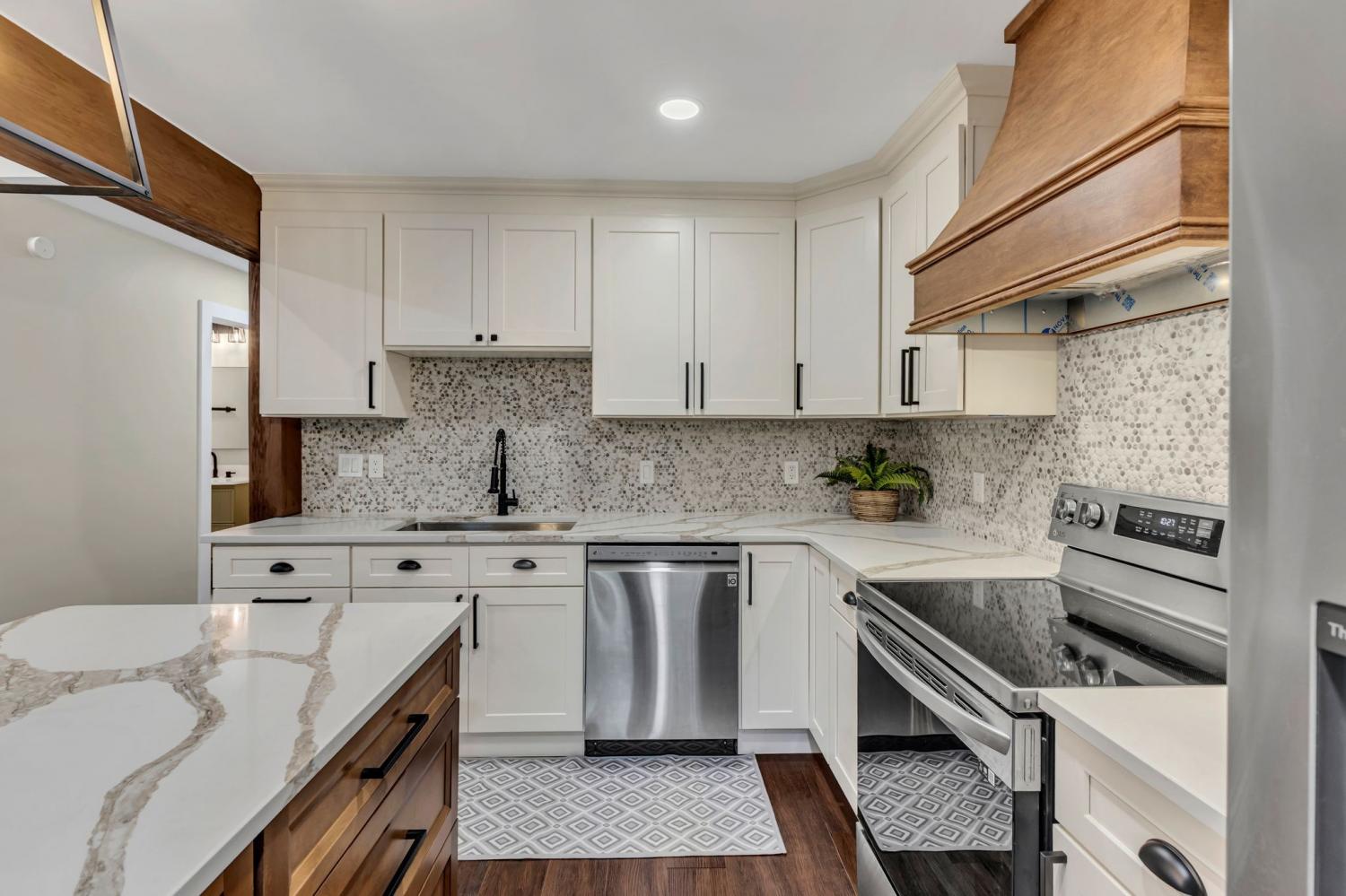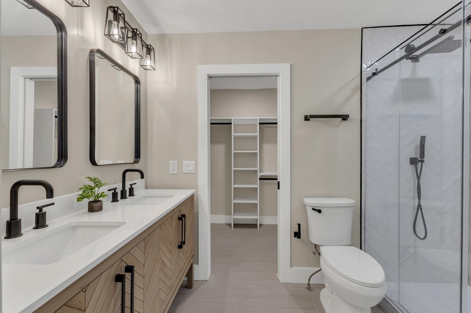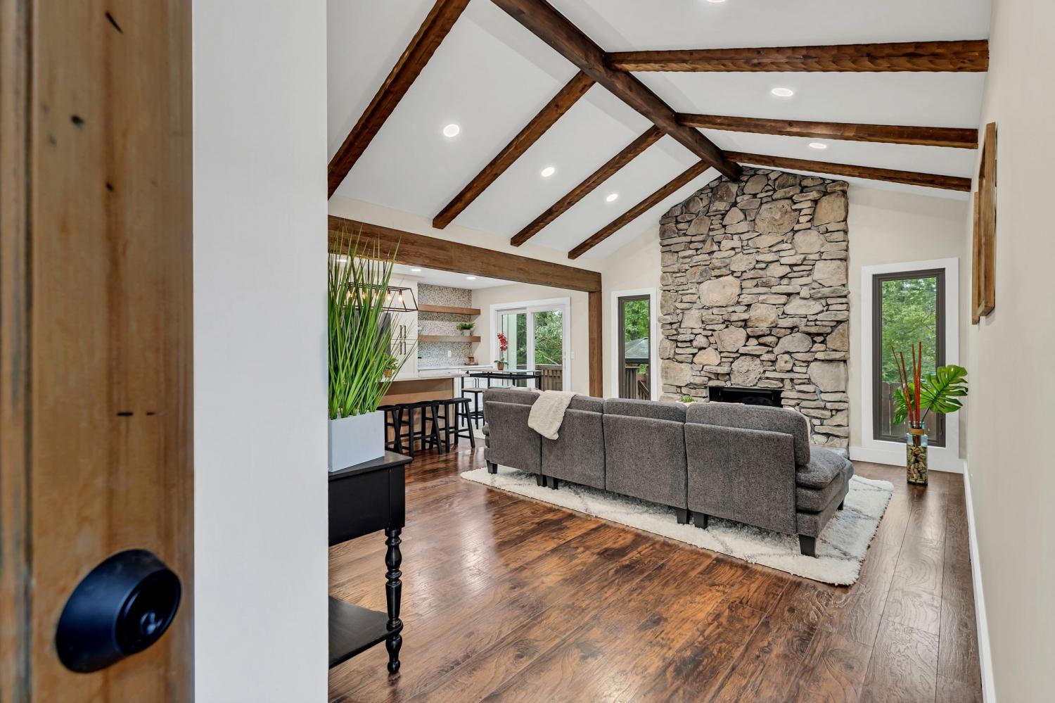 You will not believe your eyes! This FULLY RENOVATED 2BR/2BA Bellevue home offers 1,117 sq ft of immaculate living with stunning finishes and thoughtful design. The open floor plan features a stone fireplace framed by large windows, wood-beamed ceilings, and a dining area with coffee bar and exposed shelving. The stylish kitchen boasts light cabinets, high-end stainless appliances, and a custom wood hood. The spacious primary suite includes a barn door to a spa-like bath with double vanities, tiled shower, and custom closet. Outdoors, enjoy a back deck, pergola-covered patio, fenced yard, and serene creek views. Just steps to the community pool and minutes to shopping, dining, and Bellevue Community Center. Extras include private storage, two dedicated parking spaces, and plenty of guest parking. Modern comfort meets low-maintenance living!