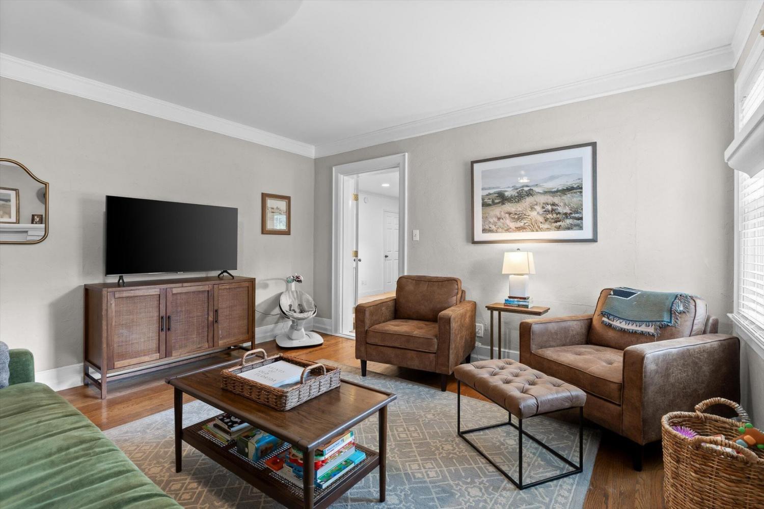 Welcome to 109 E Meadowbrook Drive—where Red Bank charm meets modern comfort. Just minutes from Downtown Chattanooga and Hixson, this home offers classic character and thoughtful updates. Inside, you'll love the original hardwood floors, arched doorways, and freshly painted interior. The kitchen shines with granite countertops, stainless appliances, and ample cabinet space. The primary suite is exceptionally spacious, featuring a renovated bath, walk-in closet, and room for a sitting area or reading nook. Two additional bedrooms and a full hall bath complete the main level, while the upstairs flex room includes a projector and screen—perfect for cozy movie nights or game-day gatherings. Outside, enjoy blueberry bushes, kiwi vines, a new privacy fence, and a renovated porch with multi-tiered deck—ideal for entertaining. Additional perks include a new hot water heater (2024) and basement garage with great storage. Move-in ready and full of charm!