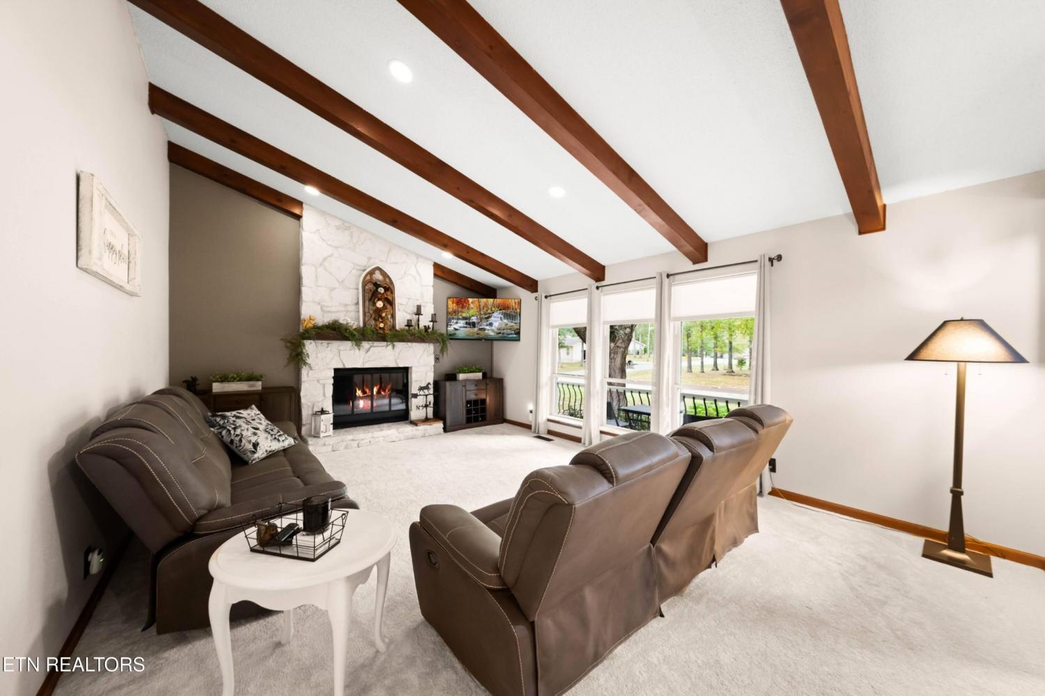 'Welcome Home' Welcome to your 1,984 sq ft blend of 1970's charm and modern comforts, perfectly situated to offer a peak of Lake Canterbury from the front porch. This remodeled residence features a vaulted ceiling in the spacious living area, creating an air and inviting atmosphere. The centerpiece of the living area is a cozy stone fireplace fueled by natural gas, ideal for gathering with family and friends. The open-concept kitchen and dining area seamlessly flow into a large sunroom/family room enjoying your wooded privacy view. the kitchen boasts of two toned cabinets and contemporary updates while retaining a nod to its retro roots, making it a perfect space for both cooking and entertaining. The large master suite offers a private retreat, complete with a unique 70s design elements that add character and warmth. (See if you can find the hidden entrance to the sunroom/family room from the Master Suite area.) This home blends nostalgia with modern living with ease. This 3 bedroom/2 bath home is conveniently located in the Fairfield Glade Resort Community. This community offers 5 golf courses, 3 swimming pools, tennis, pickleball, hiking, 2 marinas and SO much more. 'Come On Home' Buyers to verify information before making an informed offer. OPEN HOUSE * FRIDAY * OCTOBER 10, 2025, NOON-1:30 PM CENTRAL TIME.