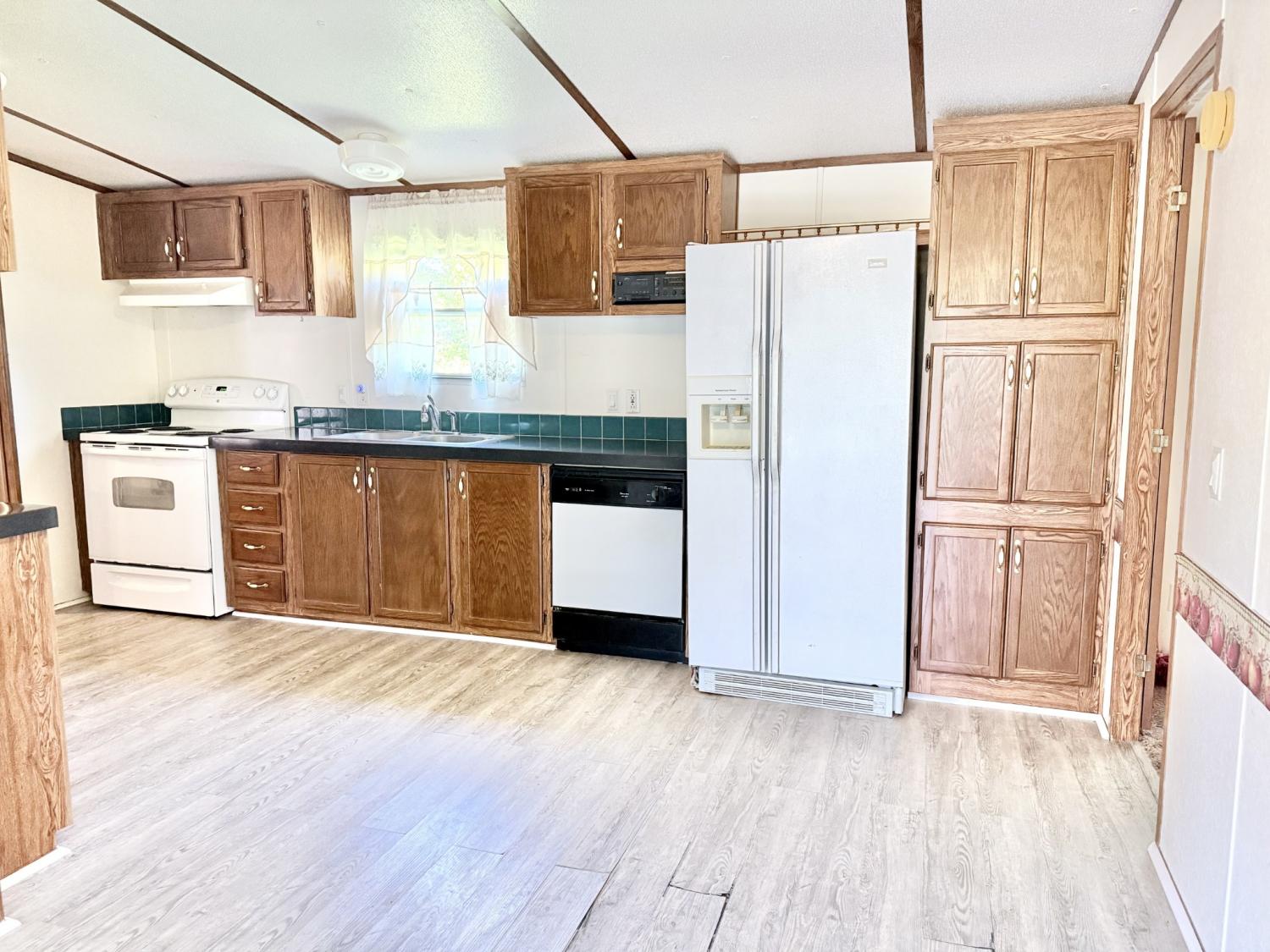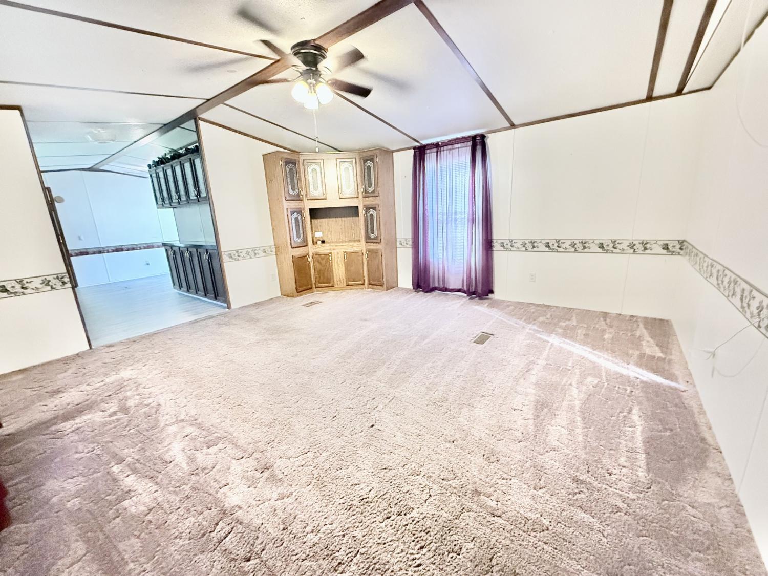 Affordable, move-in ready, and full of space! This well-maintained 1997 manufactured home sits on a large double lot, offering plenty of room to relax and enjoy. Inside, you’ll find 2 spacious bedrooms and 2 full baths, including a primary suite with a soaking tub, separate shower, and double sinks for added comfort. The oversized kitchen is perfect for anyone who loves to cook, featuring ample cabinetry and a roomy dining area ideal for gatherings. The living room’s built-in cabinet adds charm and extra storage, while the large utility room offers washer and dryer hookups and extra space to stay organized. This home still has its tongue and axles, so it will require a personal loan or cash purchase. A great opportunity to own a ready-to-move-in home with space inside and out—schedule your showing today!