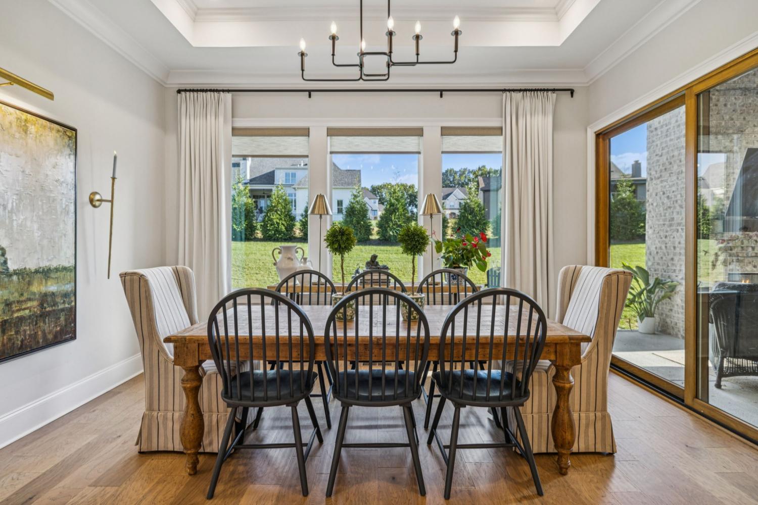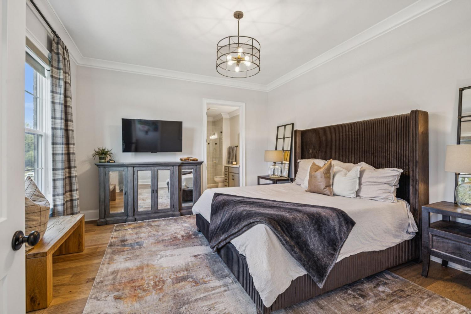 Welcome to Kings Chapel, one of Middle Tennessee’s most desirable gated communities, where timeless craftsmanship meets modern luxury. This better-than-new 2023 custom home sits on a half-acre lot and has been upgraded beyond what new construction can offer, including all appliances, custom trim work, designer window treatments, and thoughtful finishes throughout. Step through the iron double doors into a grand foyer that opens to a spacious living area with soaring vaulted ceilings, perfect for entertaining or relaxing in style. The chef’s kitchen flows seamlessly into the family room, creating an open-concept layout ideal for gatherings. The primary retreat offers a luxurious escape with a massive walk-in closet and spa-like en suite bath. The oversized laundry room is a dream come true, complete with a built-in pet washing station and secondary refrigerator for convenience. Upstairs you’ll find three additional bedrooms and two bonus rooms, offering flexible space for a home office, theater, or playroom. A pool table can remain for the new owner, and all furniture is available for purchase, making this truly a move-in-ready opportunity. Enjoy the security and amenities of Kings Chapel, a sought-after community known for its serene surroundings, stunning homes, and unbeatable location.
