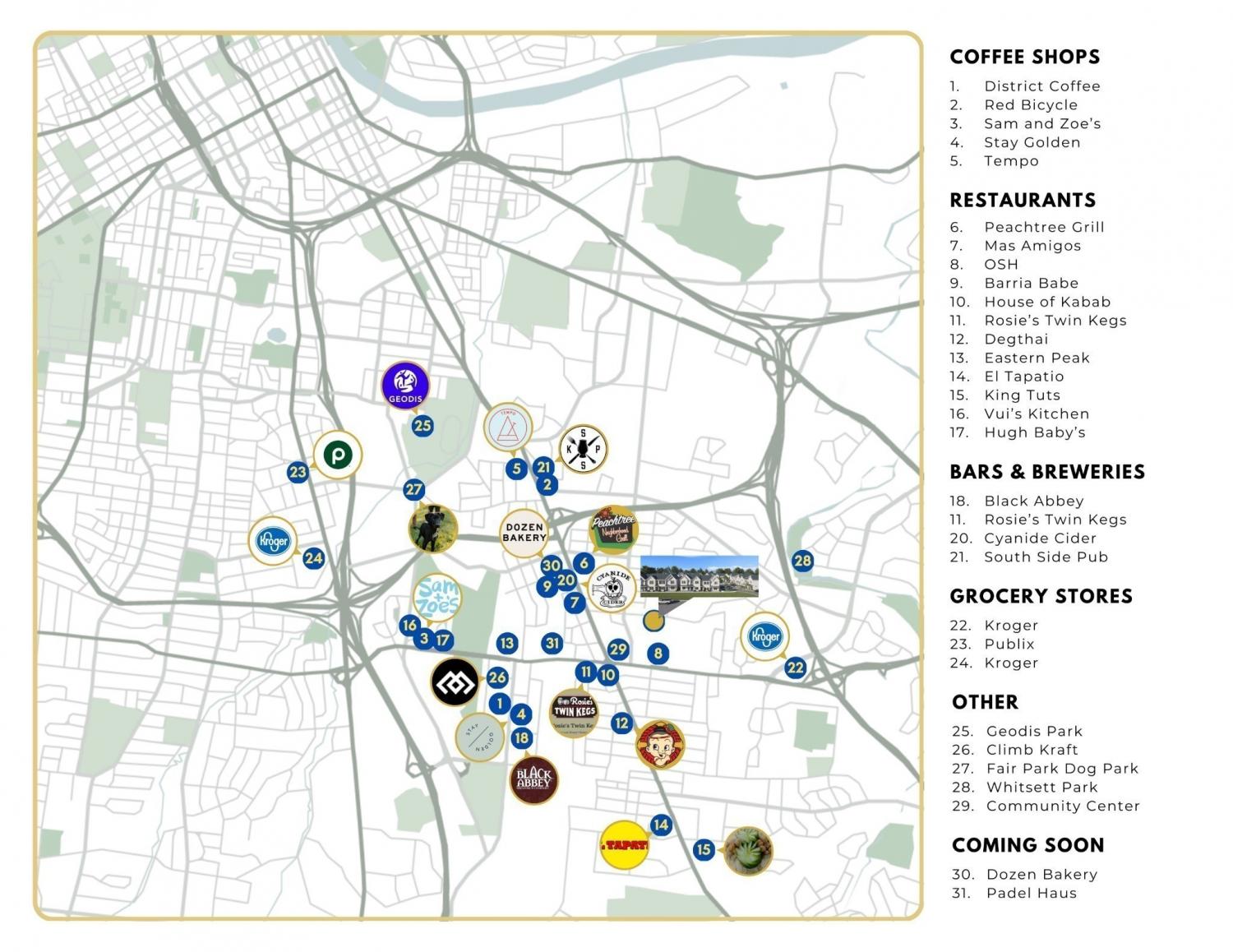 Head south on Nolensville Pike, turn left onto Peachtree Street, cross Foster Avenue, continue to Sterling Boone, turn right onto Sterling Boone, which leads directly to Whitsett Road. Southside at Whitsett will be directly in front of you