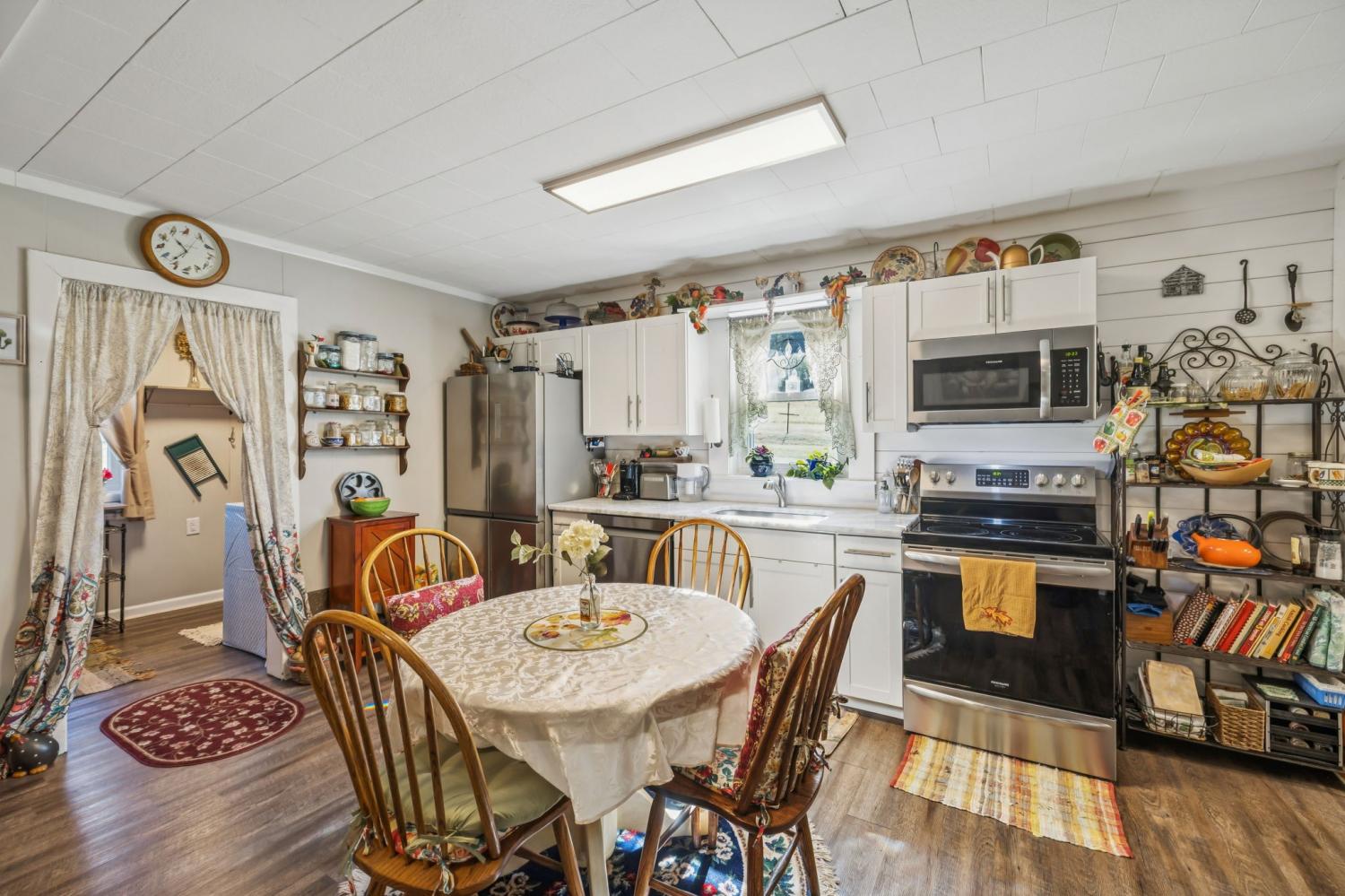 Don’t miss this move-in ready 2 bedroom, 1 bathroom home offering 1,032 sq ft of remodeled living space on a level 0.38-acre lot in the quaint community of Hickman. This home features an open-concept kitchen and living room with tall ceilings that create a spacious and inviting atmosphere. The white cabinet kitchen w/ granite is equipped with stainless steel appliances, and a large laundry room that adds convenience and extra storage. Enjoy outdoor living with two concrete covered porches, a generous concrete driveway/parking area, and a good-sized backyard shed that stays with the property. Located just 6 minutes from I-40, this home offers both peace and privacy with easy access to commuting routes. This property would be perfect as a starter home, downsizing option, or investment! Curtains do not remain.