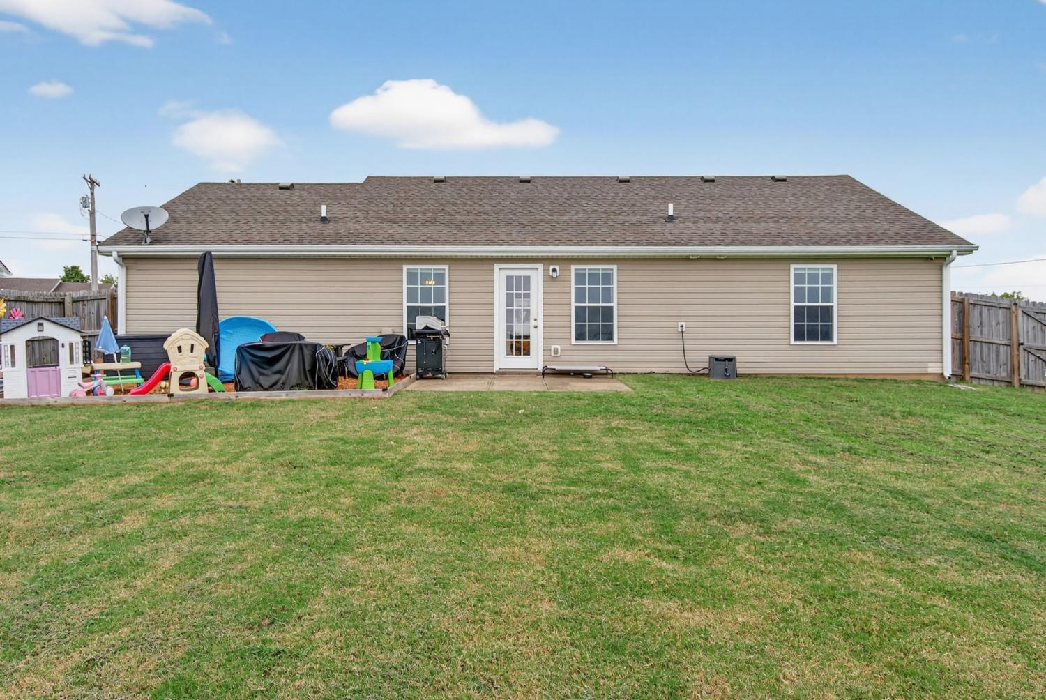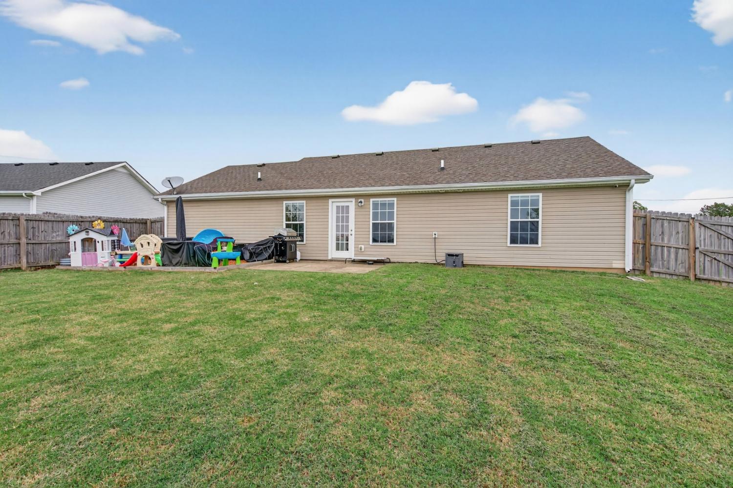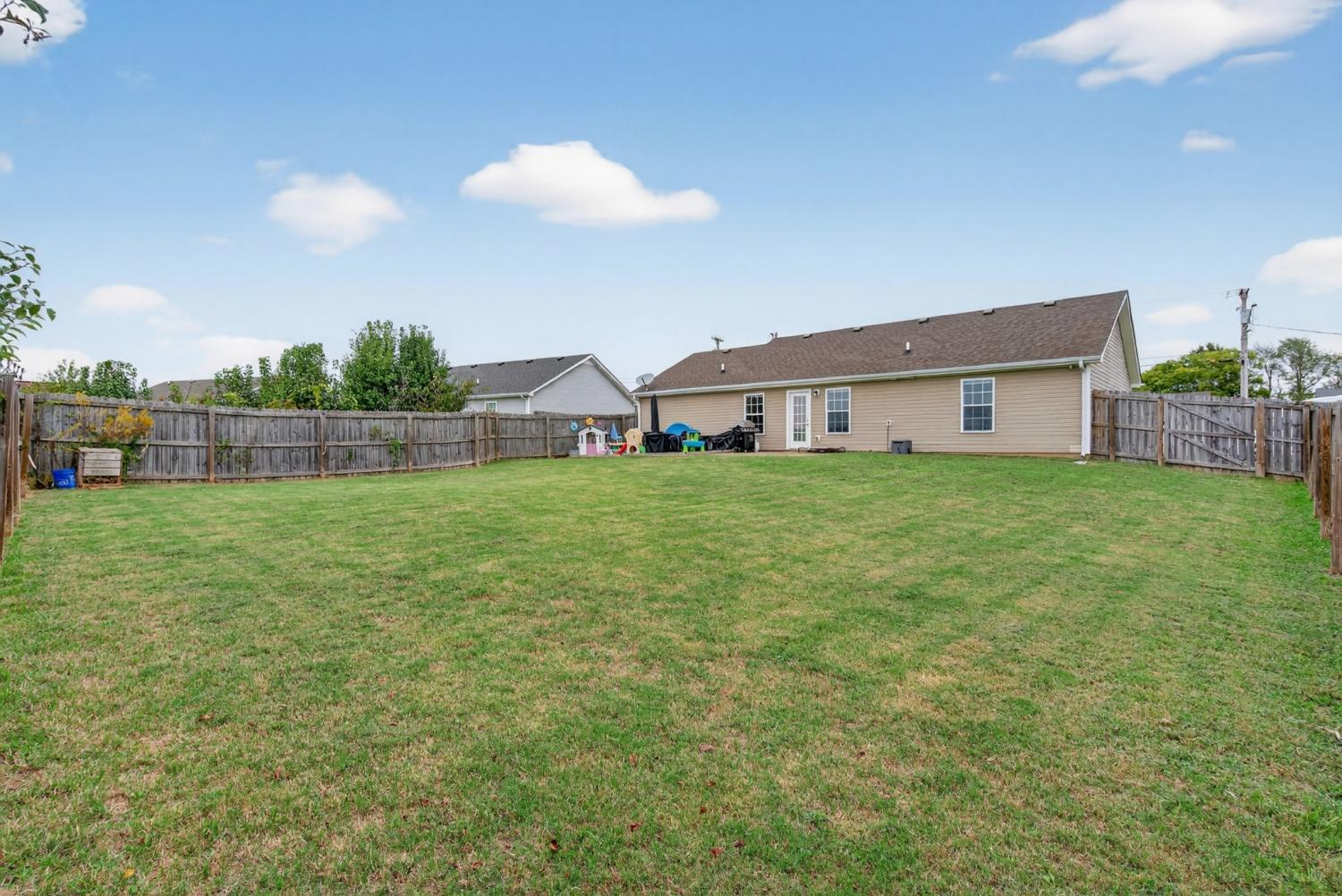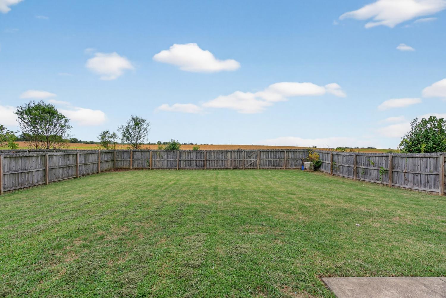 Welcome to this beautiful home! This inviting 3-bedroom, 2-bath 1 car garage offers the perfect blend of comfort, space, and functionality. Step inside to a bright and open living area that flows into an eat-in kitchen, with stainless steel appliances, quartz countertops and a pantry big enough to store all the snacks, or just the paper towels! Formal den has built in shelves and is currently being used as an office. The large fenced in backyard backs up to a farmers field (no rear neighbors) and provides endless options for pets, gardening, the large bonus area, landscaped with pea gravel, is perfect for additional seating or a play area for kids! The over sized garage offers plenty of room for a vehicle plus storage space. Other recent updates include having the whole house repainted and new 3 speed ceiling fans installed in the bedrooms. The washer and dryer can be included! This gorgeous home is just minutes from Fort Campbell, Clarksville, I-24 & The Oak Grove Casino.
