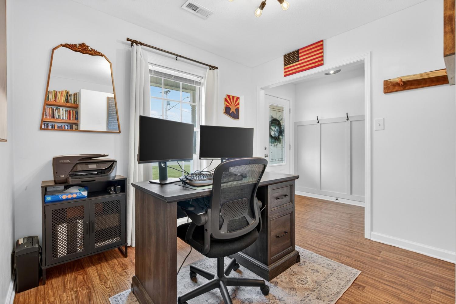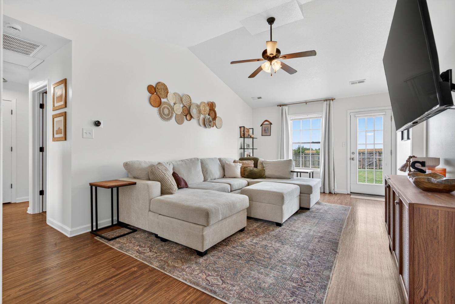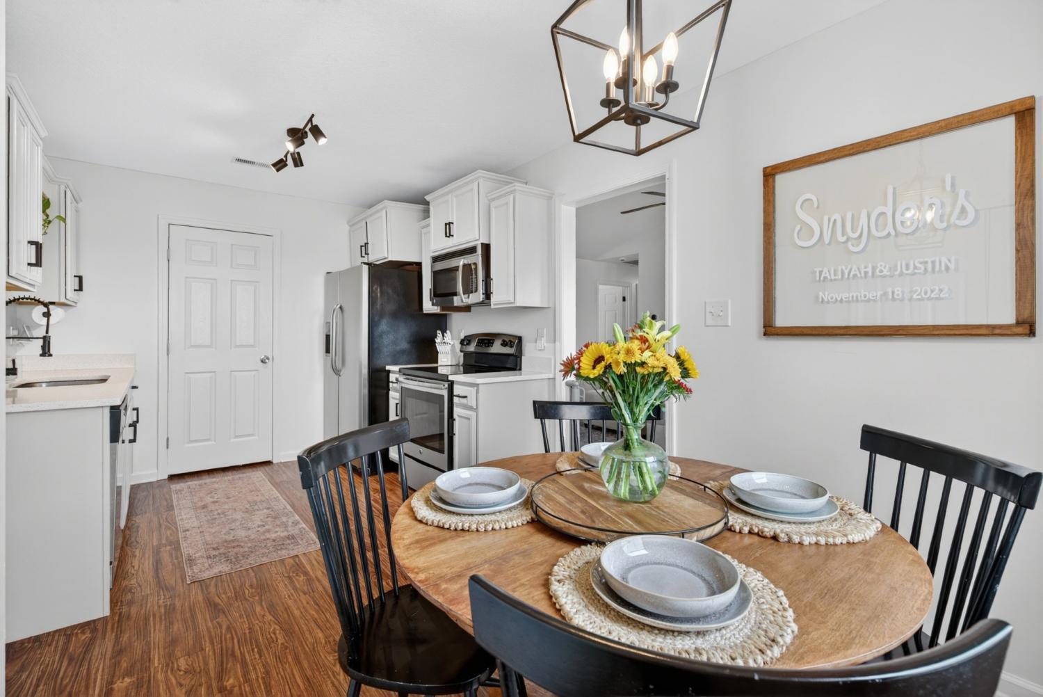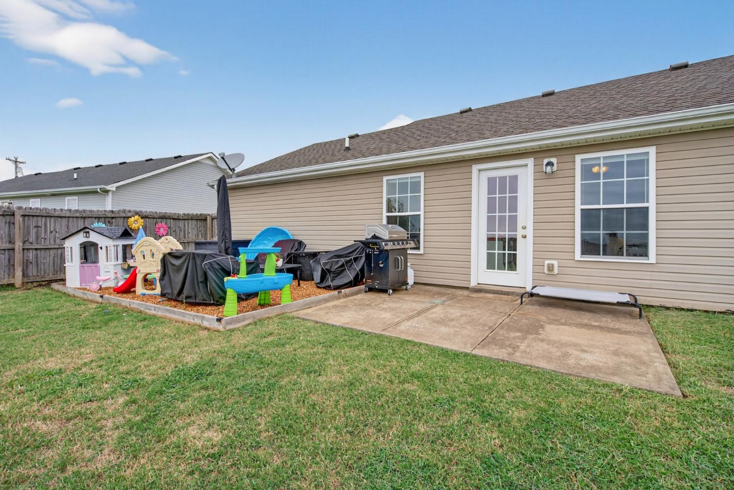 Welcome to this beautiful home! This inviting 3-bedroom, 2-bath 1 car garage offers the perfect blend of comfort, space, and functionality. Step inside to a bright and open living area that flows into an eat-in kitchen, with stainless steel appliances, quartz countertops and a pantry big enough to store all the snacks, or just the paper towels! Formal den has built in shelves and is currently being used as an office. The large fenced in backyard backs up to a farmers field (no rear neighbors) and provides endless options for pets, gardening, the large bonus area, landscaped with pea gravel, is perfect for additional seating or a play area for kids! The over sized garage offers plenty of room for a vehicle plus storage space. Other recent updates include having the whole house repainted and new 3 speed ceiling fans installed in the bedrooms. The washer and dryer can be included! This gorgeous home is just minutes from Fort Campbell, Clarksville, I-24 & The Oak Grove Casino.