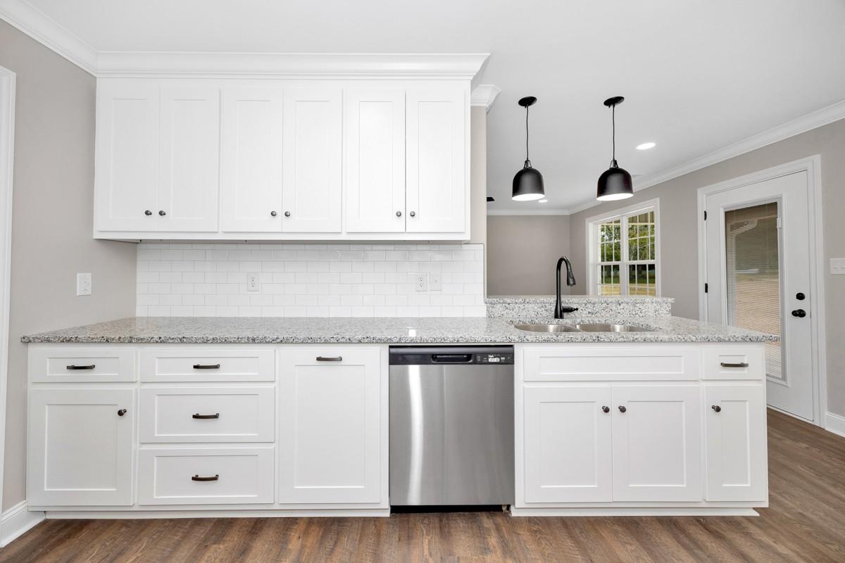 This new construction 4BR/2BA full brick 1,664sft home is ready for a family to make it a home! The home has LVP flooring throughout the entire home. Granite countertops, tile backsplash and tub surrounds, recessed lighting are some of the polished finishes that you will find in the house. The kitchen has wood cabinetry, a large pantry, and stainless-steel appliances. The large master bedroom has a walk-in closet as well as a full bath with separate soaking tub and shower. The two-car attached garage with front entry has plenty of parking and storage for your family. The partially covered patio at the back of the house would be ideal for family gatherings and cookouts.