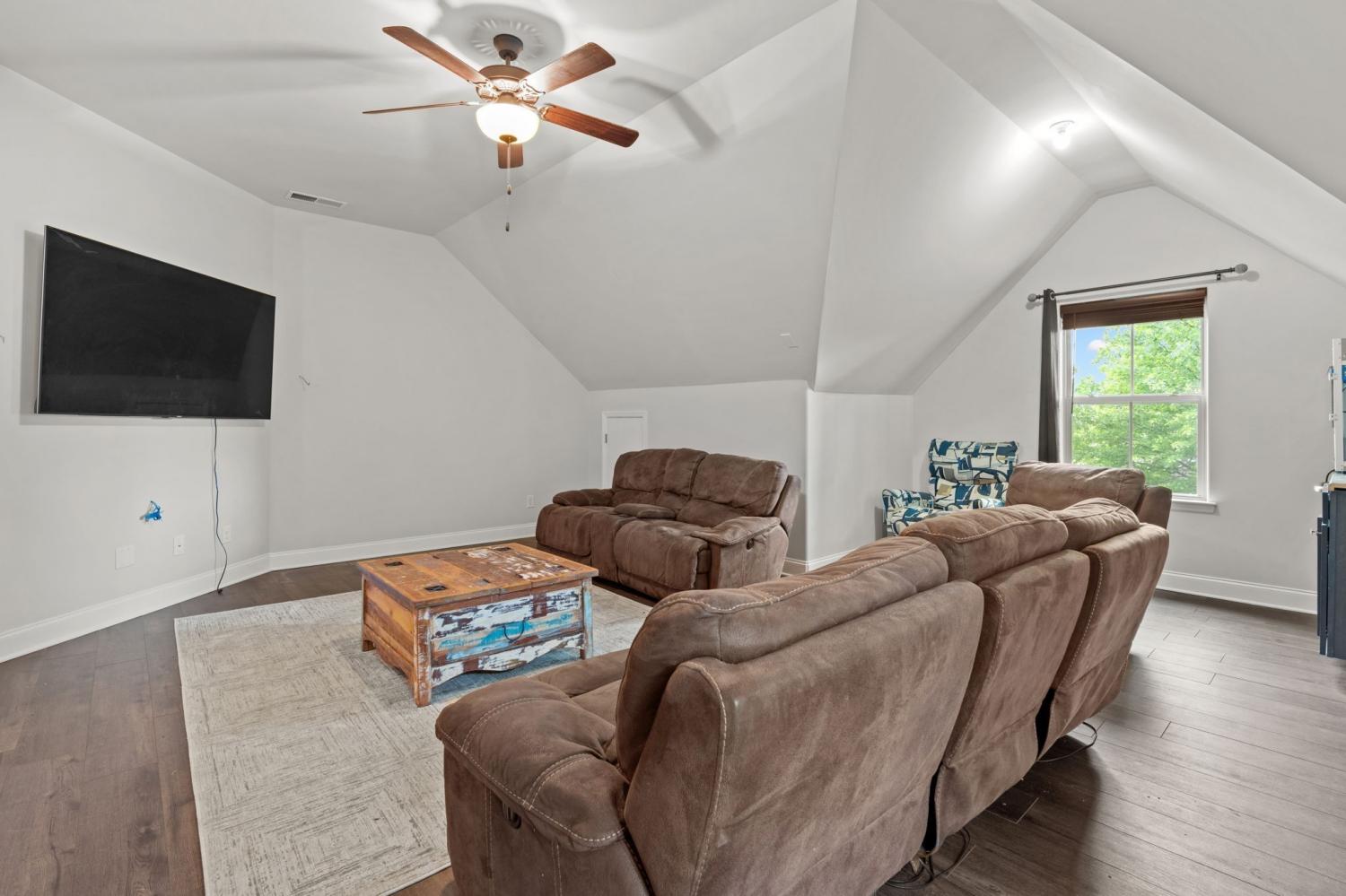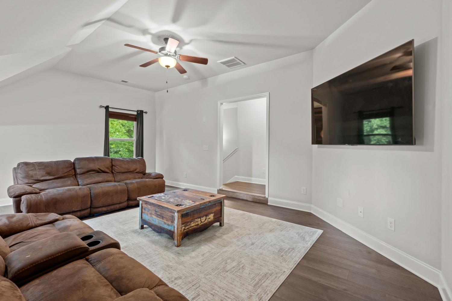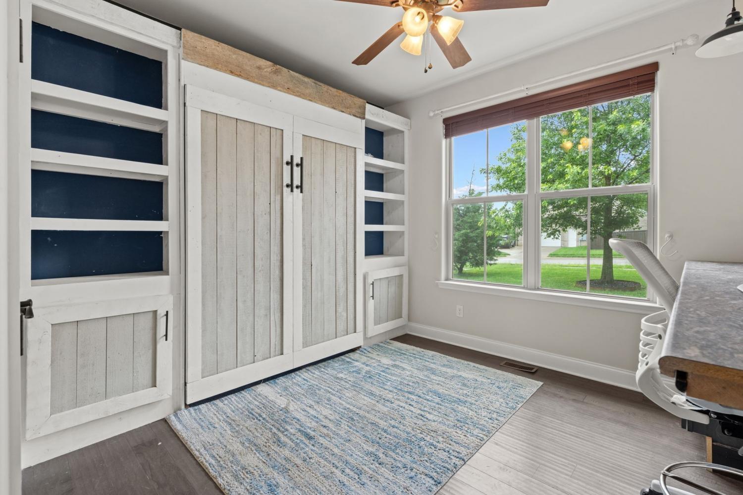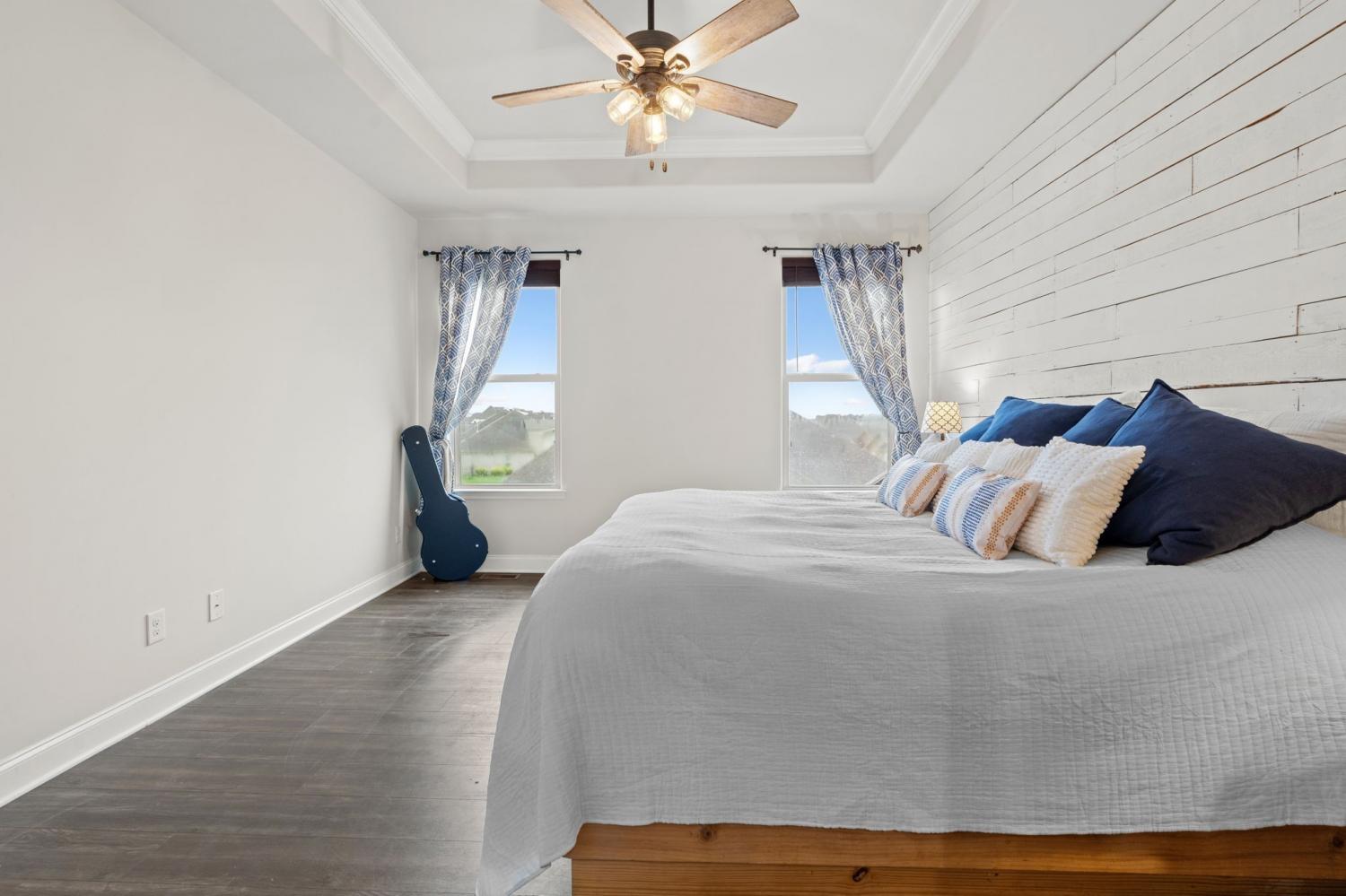 Welcome home to this beautiful, move-in ready 5-bedroom, 4-bath home with a 3-car garage in the highly sought-after Brixworth community! Built in 2017 and freshly painted throughout, this spacious home is designed for comfortable living and easy entertaining. Ideally located less than 2 miles from the new June Lake exit, you’ll love the convenience, charm, and friendly neighborhood setting! Inside, the open floor plan features soaring 17-foot ceilings in the living room, abundant natural light, 8 foot doors, and a seamless flow between the living, dining, and kitchen areas. The gourmet kitchen boasts granite countertops, stainless steel appliances, a gas cooktop, double ovens, stone backsplash, and a huge walk-in pantry with custom wood shelving — perfect for gatherings and those who love to cook! The main floor offers two bedrooms, including a relaxing primary suite with a tray ceiling, wood accent wall, spa-like bath with separate tub and shower, and a spacious walk-in closet with custom wood shelving. The second bedroom, currently set up as a home office with a custom Murphy bed, provides flexible space for guests, hobbies, or work-from-home needs. Upstairs, you’ll find three more bedrooms, each with private bath access, plus a large bonus room ideal for movie nights or playtime, and a 17x10 loft overlooking the living room — a great spot for homework or reading. Walk-in attic storage adds even more storage space to the home. Upstairs HVAC replaced in 2025! Step outside to a large screened-in deck overlooking a private fenced backyard with mature trees and raised garden beds,offering both shade and privacy — perfect for those weekend barbecues and outdoor time! Brixworth is one of Spring Hill’s premier communities, featuring walking trails, a park, and two neighborhood pools. Ask about 1% toward a lower rate with the preferred lender and a 1-year home warranty with an acceptable offer! Golf Cart in Garage remains!