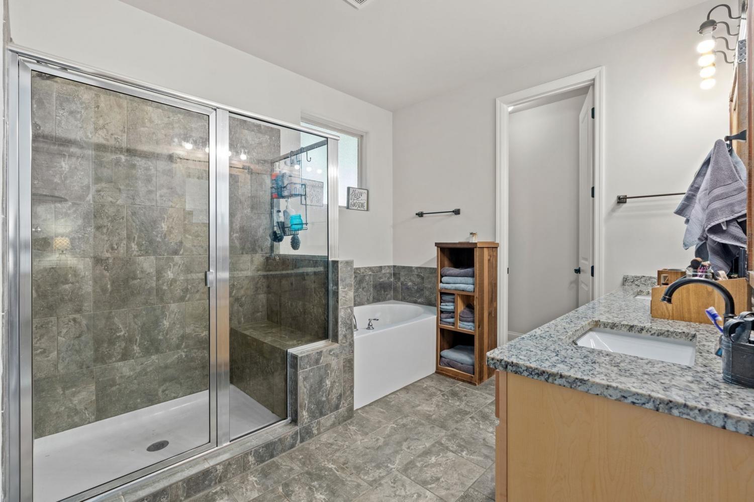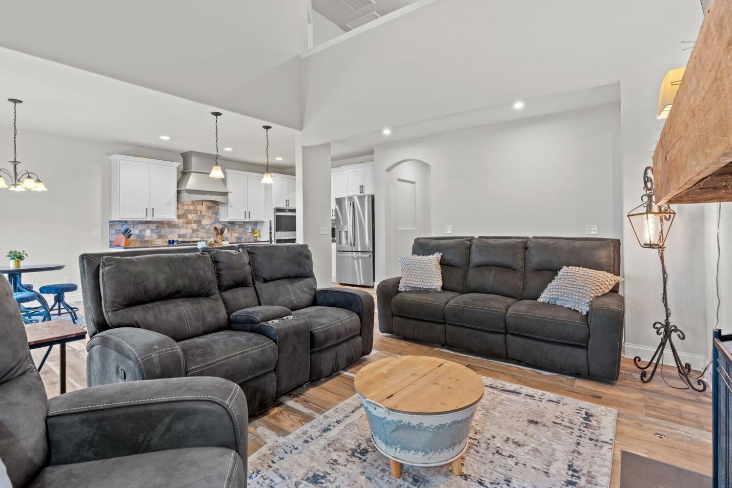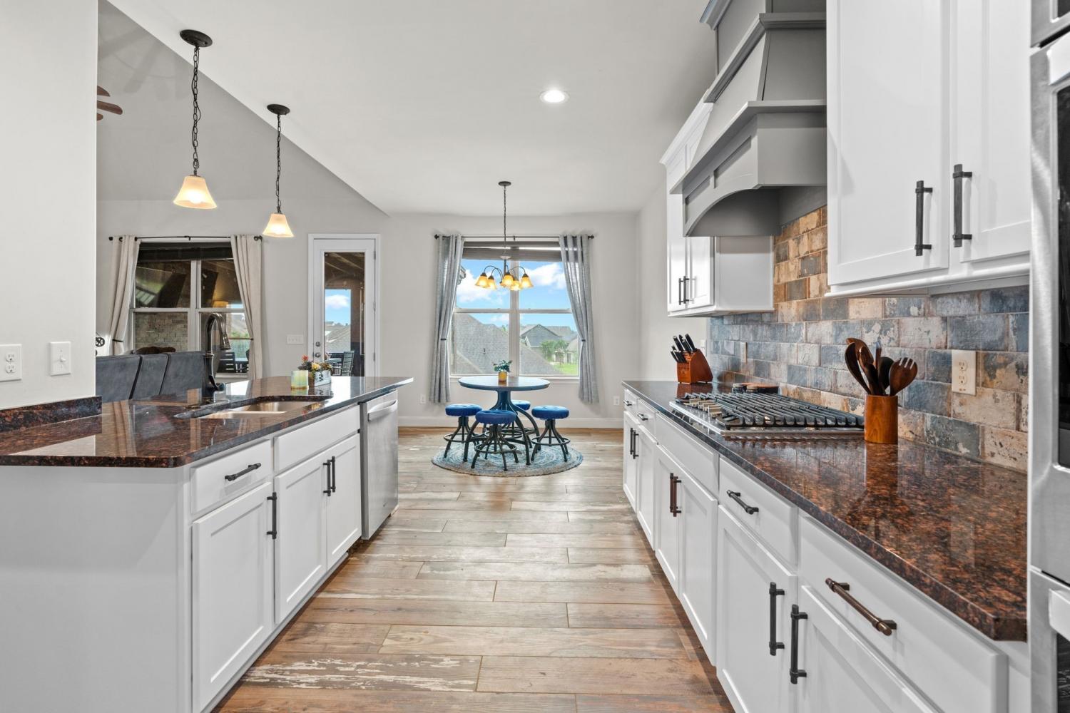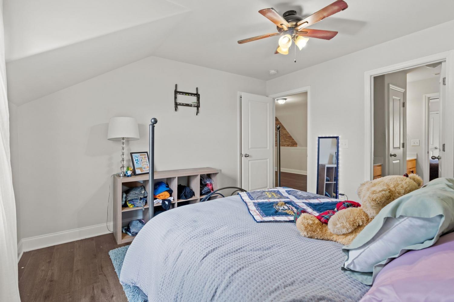 Welcome home to this beautiful, move-in ready 5-bedroom, 4-bath home with a 3-car garage in the highly sought-after Brixworth community! Built in 2017 and freshly painted throughout, this spacious home is designed for comfortable living and easy entertaining. Ideally located less than 2 miles from the new June Lake exit, you’ll love the convenience, charm, and friendly neighborhood setting! Inside, the open floor plan features soaring 17-foot ceilings in the living room, abundant natural light, 8 foot doors, and a seamless flow between the living, dining, and kitchen areas. The gourmet kitchen boasts granite countertops, stainless steel appliances, a gas cooktop, double ovens, stone backsplash, and a huge walk-in pantry with custom wood shelving — perfect for gatherings and those who love to cook! The main floor offers two bedrooms, including a relaxing primary suite with a tray ceiling, wood accent wall, spa-like bath with separate tub and shower, and a spacious walk-in closet with custom wood shelving. The second bedroom, currently set up as a home office with a custom Murphy bed, provides flexible space for guests, hobbies, or work-from-home needs. Upstairs, you’ll find three more bedrooms, each with private bath access, plus a large bonus room ideal for movie nights or playtime, and a 17x10 loft overlooking the living room — a great spot for homework or reading. Walk-in attic storage adds even more storage space to the home. Upstairs HVAC replaced in 2025! Step outside to a large screened-in deck overlooking a private fenced backyard with mature trees and raised garden beds,offering both shade and privacy — perfect for those weekend barbecues and outdoor time! Brixworth is one of Spring Hill’s premier communities, featuring walking trails, a park, and two neighborhood pools. Ask about 1% toward a lower rate with the preferred lender and a 1-year home warranty with an acceptable offer! Golf Cart in Garage remains!