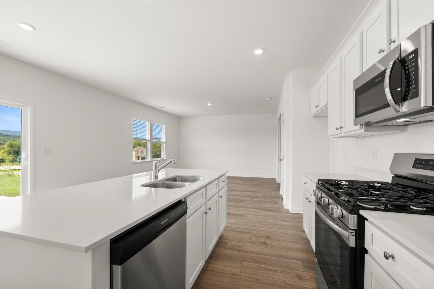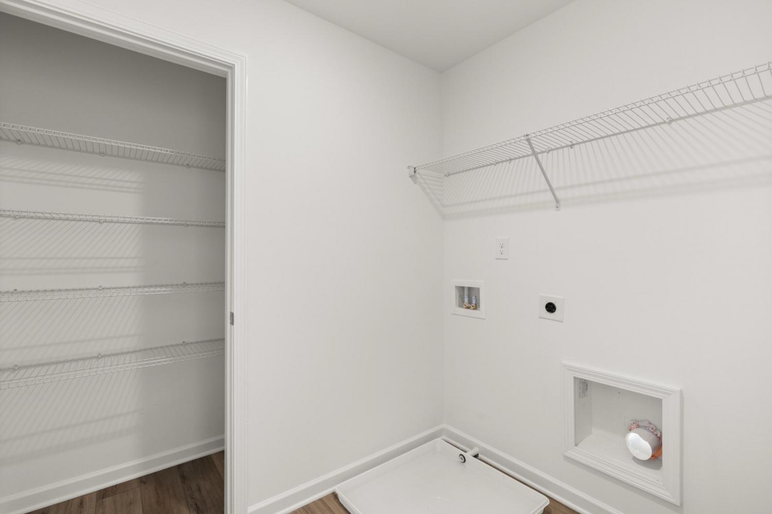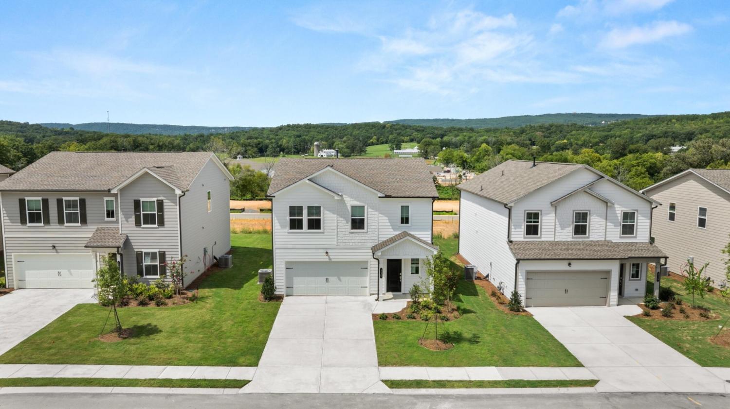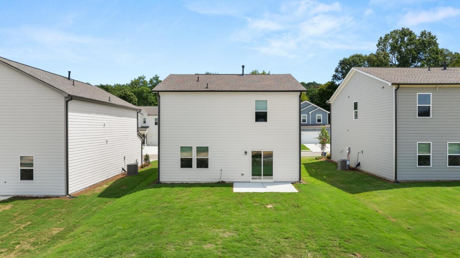 When you enter The Aspen home plan you will move through the foyer an enter into the open dining room, great room and kitchen which features an oversized quartz island with seating, gas range and a large pantry. Take the stairs to the second level and you will find a generously sized laundry room with a linen closet both in the laundry room and in the hallway. On one side you have the owner's suite, large enough for a king size bed, with an attached bathroom, double sinks, and a walk in closet. Across the hall are three ample sized bedrooms and another bathroom. Not only does this home offer a large backyard, but the community will offer a park, playground and community pool (coming in phase 2).