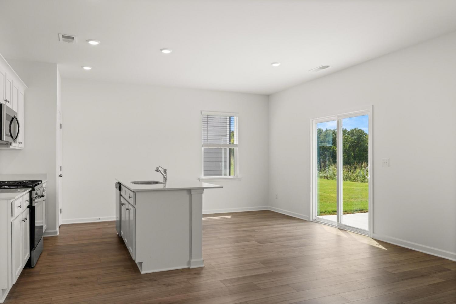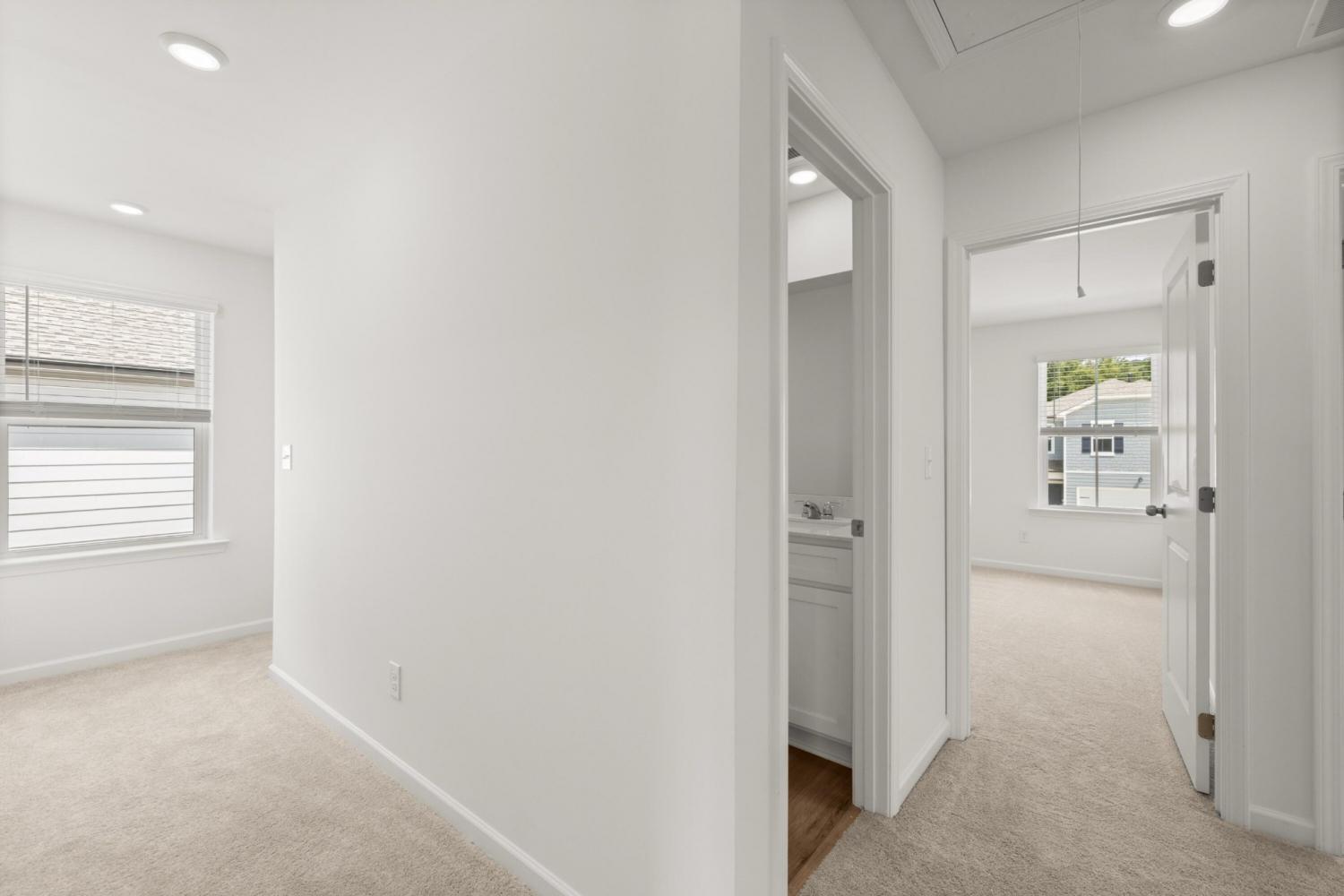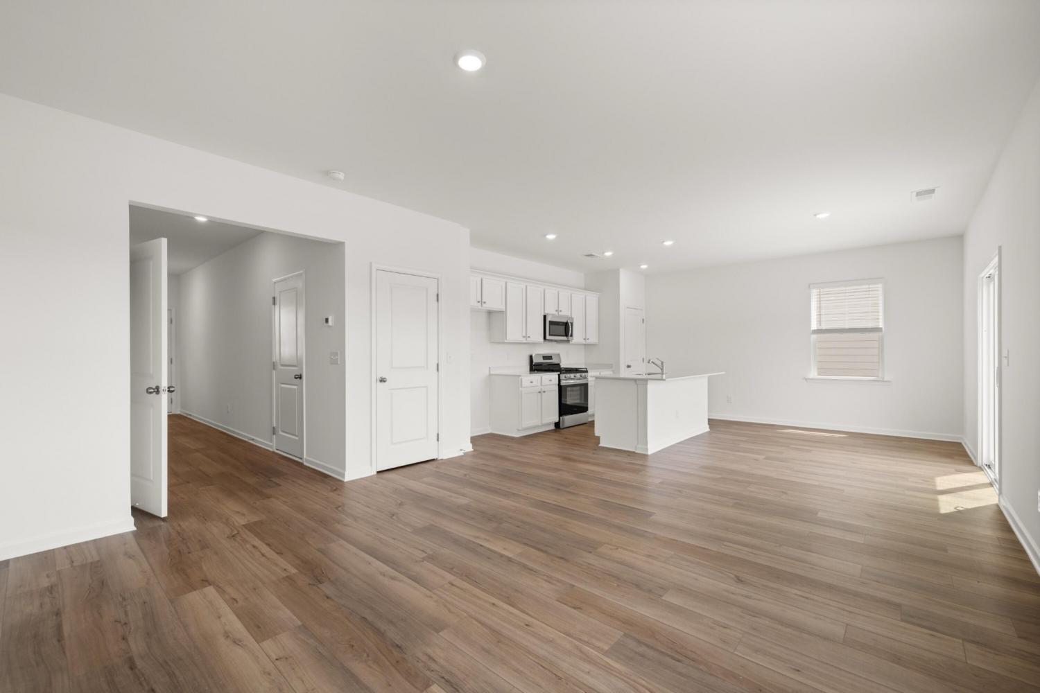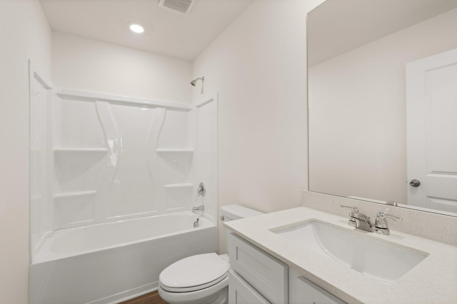 When you enter The Aspen home plan you will move through the foyer an enter into the open dining room, great room and kitchen which features an oversized quartz island with seating, gas range and a large pantry. Take the stairs to the second level and you will find a generously sized laundry room with a linen closet both in the laundry room and in the hallway. On one side you have the owner's suite, large enough for a king size bed, with an attached bathroom, double sinks, and a walk in closet. Across the hall are three ample sized bedrooms and another bathroom. Not only does this home offer a large backyard, but the community will offer a park, playground and community pool (coming in phase 2).