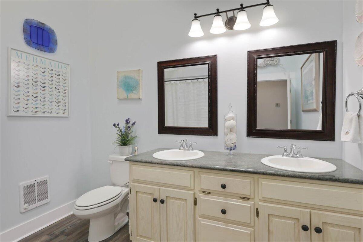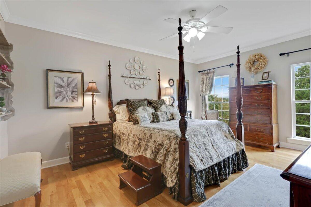 Enjoy Stunning Lake and Mountain Views from This Beautifully Upgraded Home! Welcome to your dream home in the desirable Grove Park neighborhood! Just minutes from Bear Trace Golf Course, Harrison Bay State Park, public lake access, and Enterprise South, this spacious 5-bedroom, 4.5-bathroom home offers the perfect blend of comfort, convenience, and breathtaking lake views. Thoughtful exterior enhancements by the owners include the addition of an elegant front porch and a gracefully designed circular driveway, complete with an additional parking pad for effortless guest access. Step inside to find gorgeous hardwood floors, neutral paint tones, and a thoughtfully designed floor plan ideal for both everyday living and entertaining. Just off the foyer, you'll find a formal dining room, perfect for hosting dinner parties or family meals. The heart of the home is the chef's kitchen, featuring granite countertops, a five-burner gas stove with a warmer drawer, pull-outs in the warm-colored cabinetry, a newer dishwasher and refrigerator, and a generous butcherblock island workspace. The custom kitchen pantry will make you the envy of other cooks. It's open to the living room, where a cozy fireplace and built-in cabinetry invites you to relax and unwind. A bright sunroom extends off the living room and offers sweeping views of the river—a peaceful spot for your morning coffee, afternoon tea, or evening wind-down. The main-level primary suite is a true retreat, complete with a walk-in closet and a beautifully remodeled private bathroom. Also on the main level are newer hardwood floors throughout an additional bedroom, a half bath, and a laundry room—one of three laundry hookups in the home (one on each floor) for added convenience. Upstairs, you'll find two spacious oversized bedrooms and a bonus room with plentiful closet space and a full bath. Downstairs offers incredible versatility with a large den/family room featuring a wet bar, a full bath, and a fifth bed