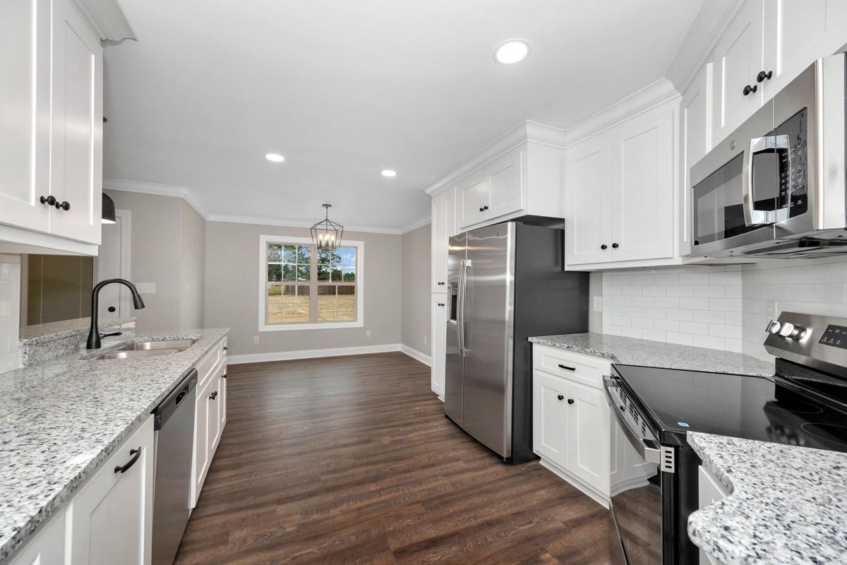 This new construction 4BR/2BA full brick 1,664sft home is ready for a family to make it a home! The home has LVP flooring throughout the entire home. Granite countertops, tile backsplash and tub surrounds, recessed lighting are some of the polished finishes that you will find in the house. The kitchen has wood cabinetry, a large pantry, and stainless-steel appliances. The large master bedroom has a walk-in closet as well as a full bath with separate soaking tub and shower. The two-car attached garage with front entry has plenty of parking and storage for your family. The partially covered patio at the back of the house would be ideal for family gatherings and cookouts.