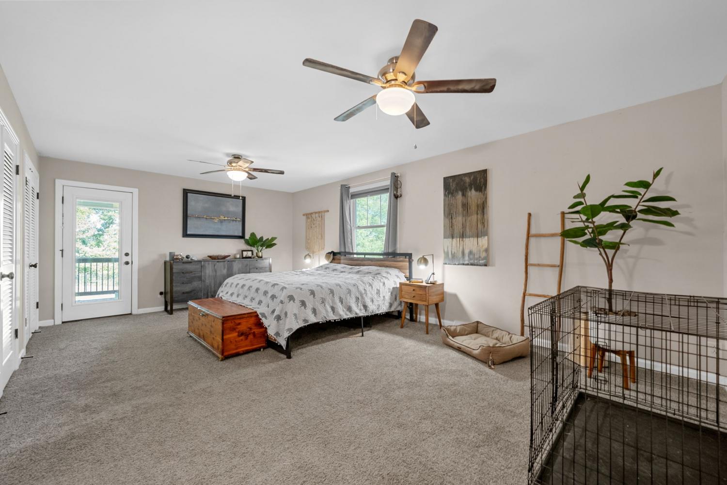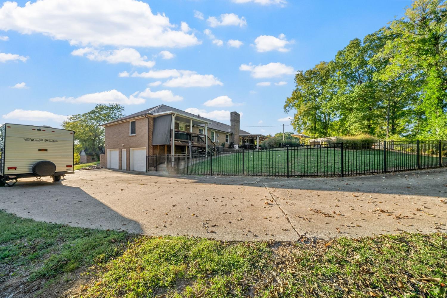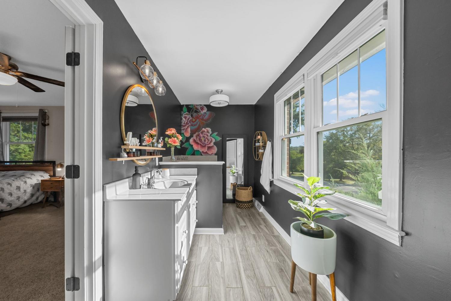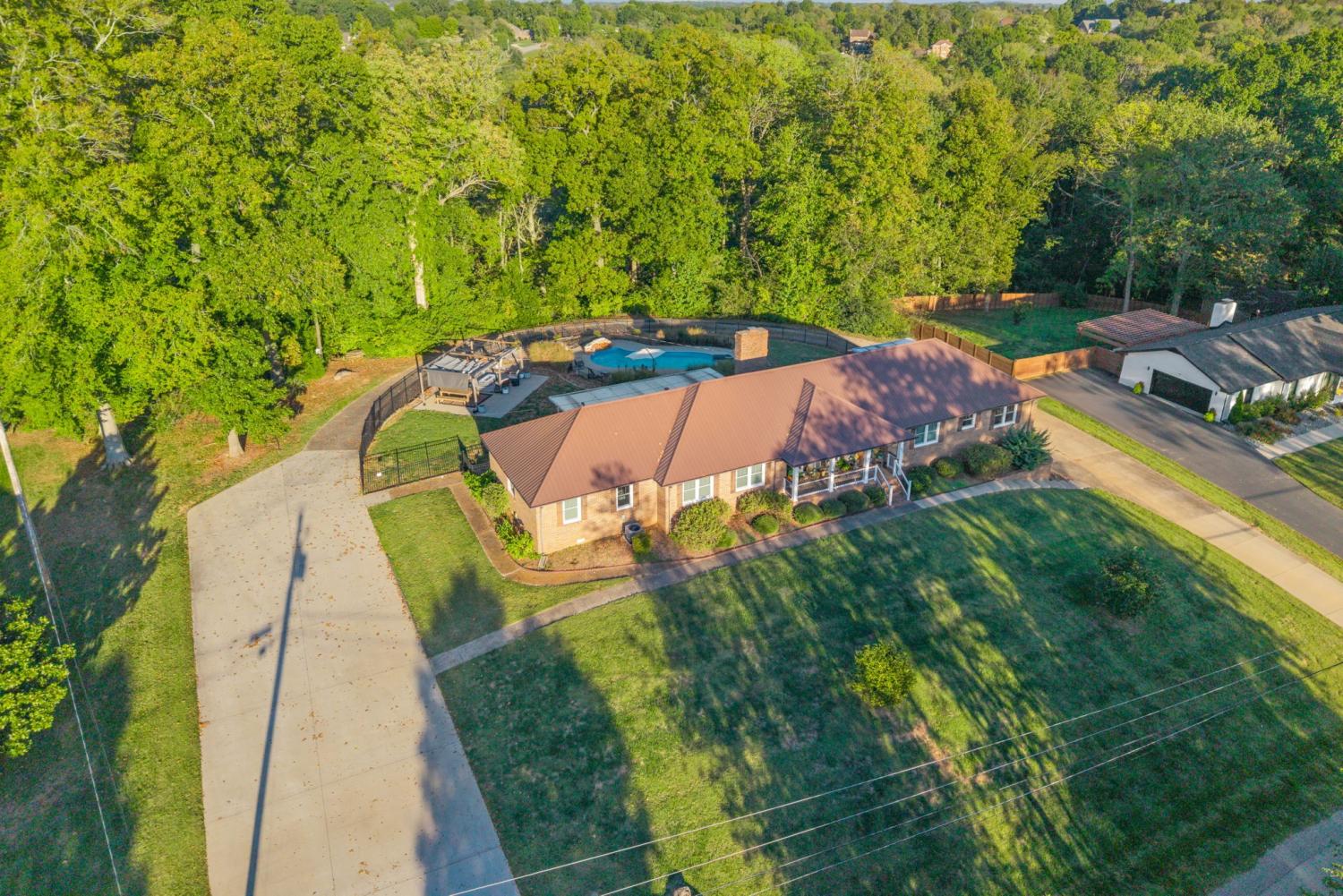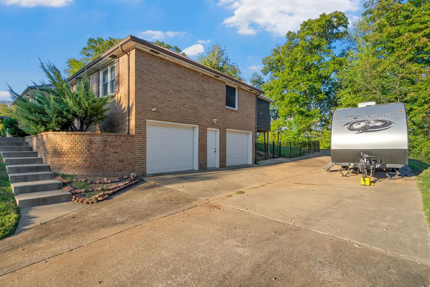 Nashville Chic in the Heart of Clarksville! On 1.6 acres backing up to the Red River, this home offers the rare feeling of retreat while still being in the heart of Clarksville. Picture yourself starting the day with a cup of coffee as the sunrise stretches across the backyard, casting light over the pool and waterfall fountain. As the day winds down, golden hour glows across the property before the sun sets in a show of warm Tennessee color—turning every morning and evening into a moment worth savoring. Inside, the home is just as impressive. A massive living room provides space for multiple uses—an inviting lounge, a dining area, and even a home office. The brick-inlaid, turret-style spiral staircase is a centerpiece feature, leading to the finished basement with a tornado shelter and oversized two-car garage. The kitchen is both functional and beautiful, with custom cabinetry, upgraded granite countertops, and a huge island that’s perfect for cooking or entertaining. An eat-in nook sits just off the kitchen, along with a formal dining room currently used as a home gym. One wing of the home is designed for flexibility—ideal for a mother-in-law suite, Airbnb rental, or private guest retreat. It includes a mini bar, a full bath, and an oversized bedroom/living area with its own built-in bar, plus another bedroom. On the opposite side of the home, two additional bedrooms await—one of which has been transformed into a giant walk-in closet, with the option to convert it back if desired. The outdoor living spaces truly complete the experience. A sparkling in-ground pool with rock fountain, hot tub, covered patio, and firepit area make this property as much about lifestyle as it is about square footage. This is not just a home—it’s where space, comfort, and everyday beauty come together.