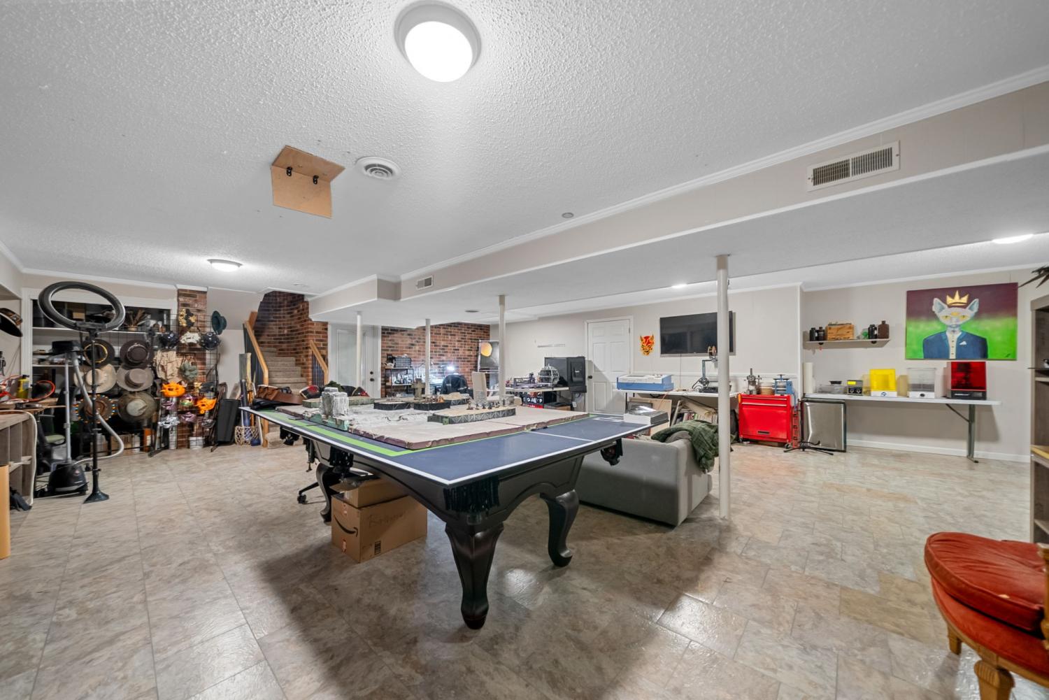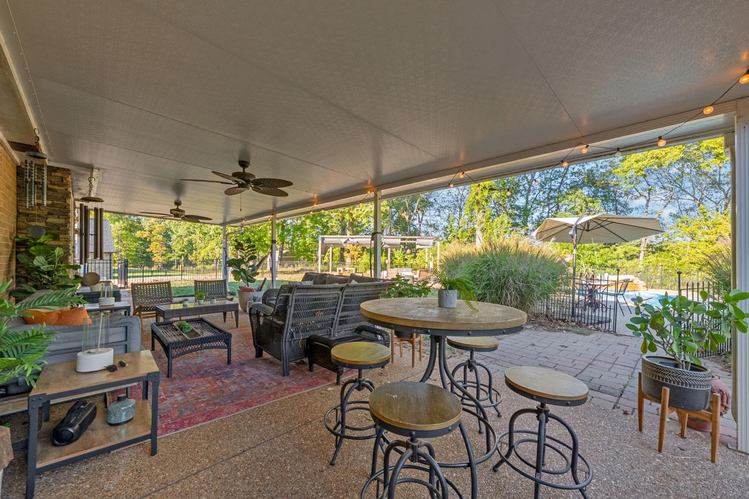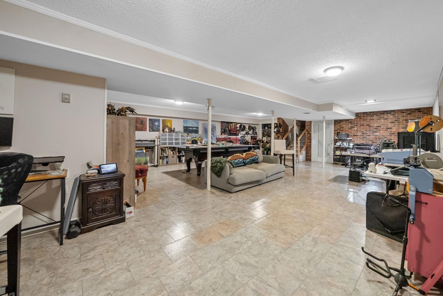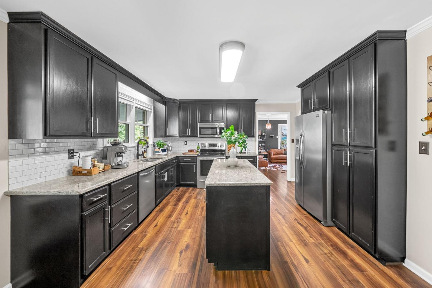 Nashville Chic in the Heart of Clarksville! On 1.6 acres backing up to the Red River, this home offers the rare feeling of retreat while still being in the heart of Clarksville. Picture yourself starting the day with a cup of coffee as the sunrise stretches across the backyard, casting light over the pool and waterfall fountain. As the day winds down, golden hour glows across the property before the sun sets in a show of warm Tennessee color—turning every morning and evening into a moment worth savoring. Inside, the home is just as impressive. A massive living room provides space for multiple uses—an inviting lounge, a dining area, and even a home office. The brick-inlaid, turret-style spiral staircase is a centerpiece feature, leading to the finished basement with a tornado shelter and oversized two-car garage. The kitchen is both functional and beautiful, with custom cabinetry, upgraded granite countertops, and a huge island that’s perfect for cooking or entertaining. An eat-in nook sits just off the kitchen, along with a formal dining room currently used as a home gym. One wing of the home is designed for flexibility—ideal for a mother-in-law suite, Airbnb rental, or private guest retreat. It includes a mini bar, a full bath, and an oversized bedroom/living area with its own built-in bar, plus another bedroom. On the opposite side of the home, two additional bedrooms await—one of which has been transformed into a giant walk-in closet, with the option to convert it back if desired. The outdoor living spaces truly complete the experience. A sparkling in-ground pool with rock fountain, hot tub, covered patio, and firepit area make this property as much about lifestyle as it is about square footage. This is not just a home—it’s where space, comfort, and everyday beauty come together.