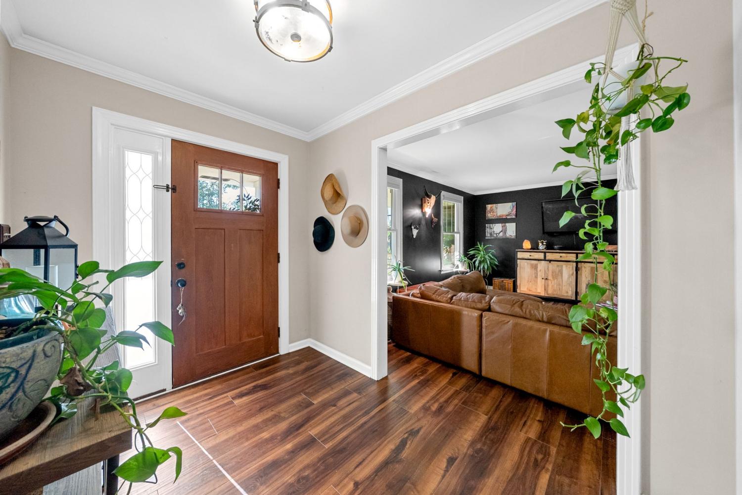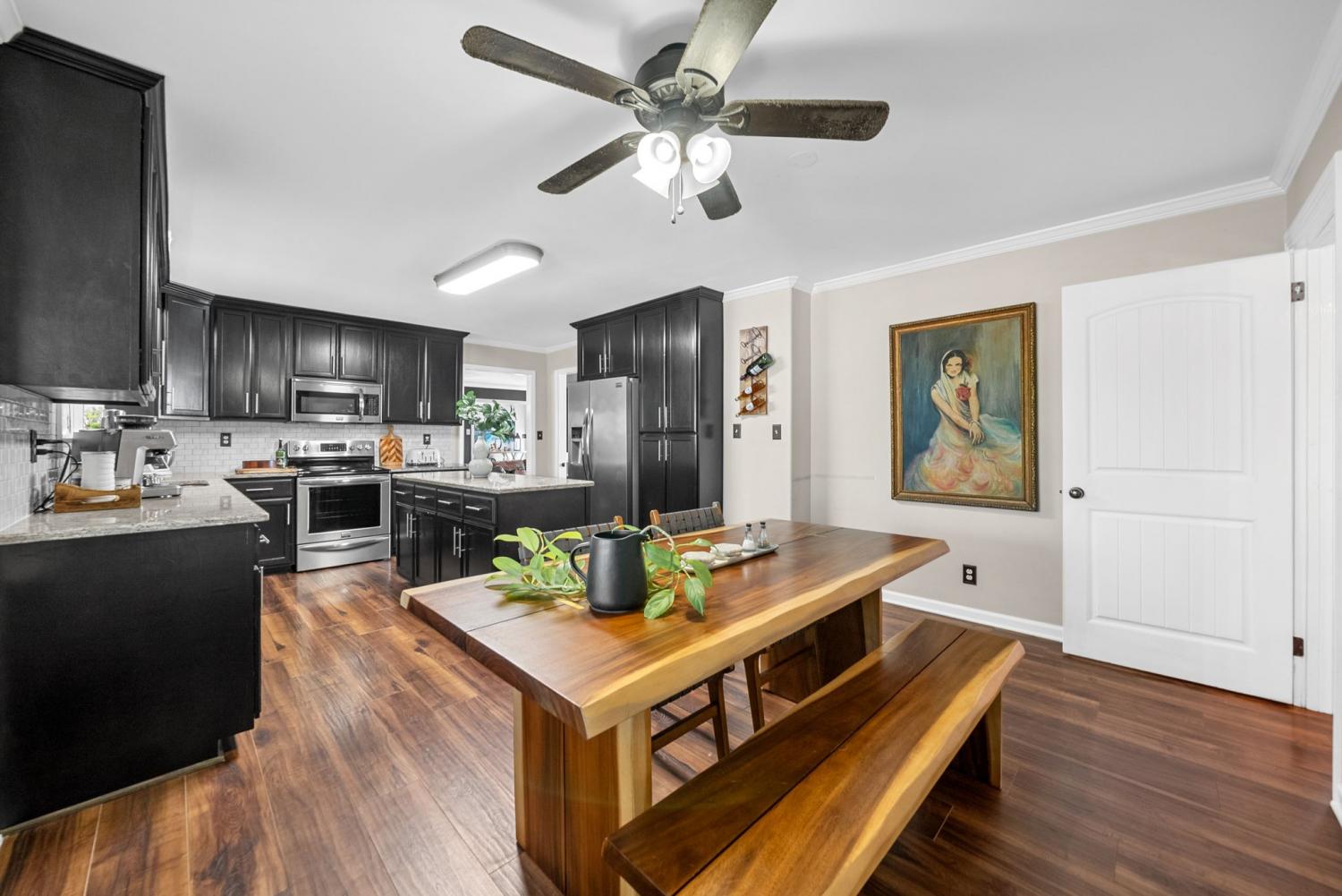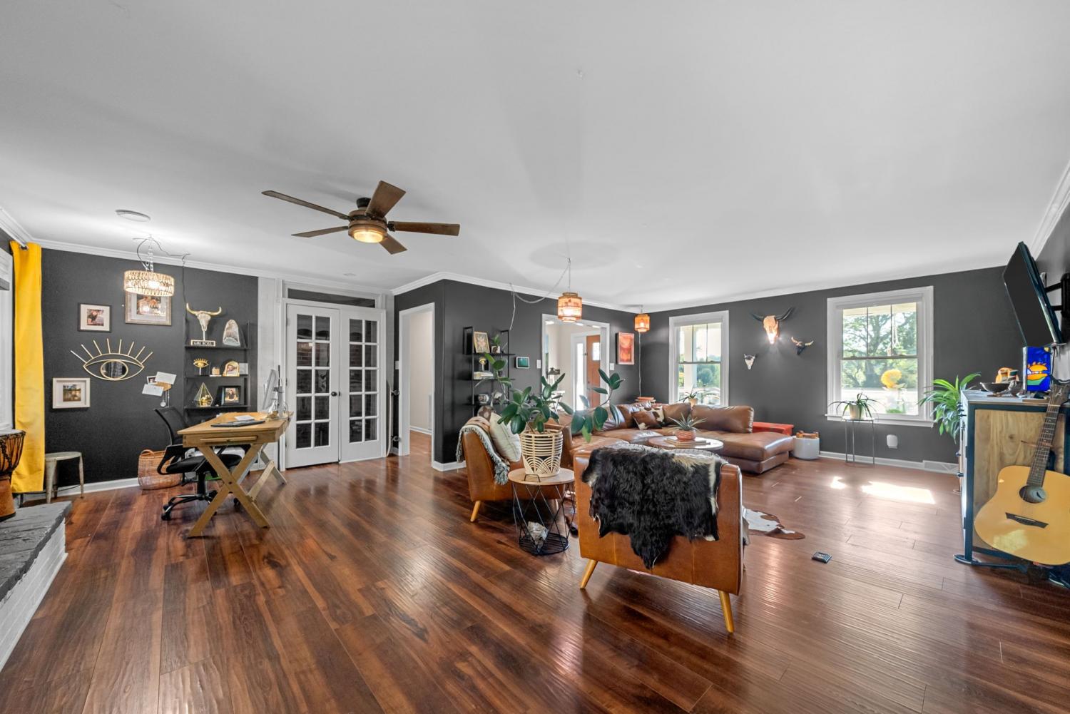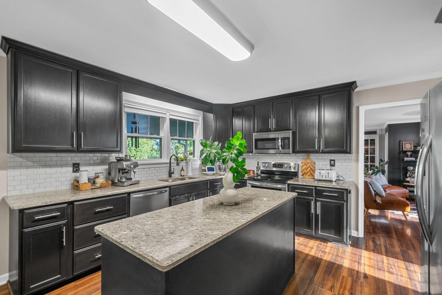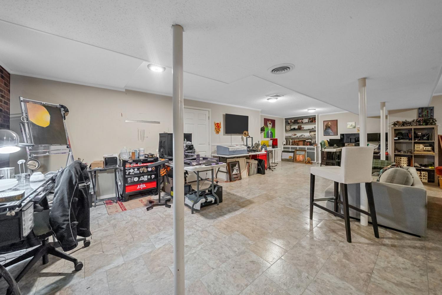 Nashville Chic in the Heart of Clarksville! On 1.6 acres backing up to the Red River, this home offers the rare feeling of retreat while still being in the heart of Clarksville. Picture yourself starting the day with a cup of coffee as the sunrise stretches across the backyard, casting light over the pool and waterfall fountain. As the day winds down, golden hour glows across the property before the sun sets in a show of warm Tennessee color—turning every morning and evening into a moment worth savoring. Inside, the home is just as impressive. A massive living room provides space for multiple uses—an inviting lounge, a dining area, and even a home office. The brick-inlaid, turret-style spiral staircase is a centerpiece feature, leading to the finished basement with a tornado shelter and oversized two-car garage. The kitchen is both functional and beautiful, with custom cabinetry, upgraded granite countertops, and a huge island that’s perfect for cooking or entertaining. An eat-in nook sits just off the kitchen, along with a formal dining room currently used as a home gym. One wing of the home is designed for flexibility—ideal for a mother-in-law suite, Airbnb rental, or private guest retreat. It includes a mini bar, a full bath, and an oversized bedroom/living area with its own built-in bar, plus another bedroom. On the opposite side of the home, two additional bedrooms await—one of which has been transformed into a giant walk-in closet, with the option to convert it back if desired. The outdoor living spaces truly complete the experience. A sparkling in-ground pool with rock fountain, hot tub, covered patio, and firepit area make this property as much about lifestyle as it is about square footage. This is not just a home—it’s where space, comfort, and everyday beauty come together.