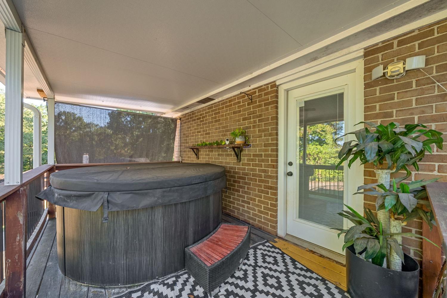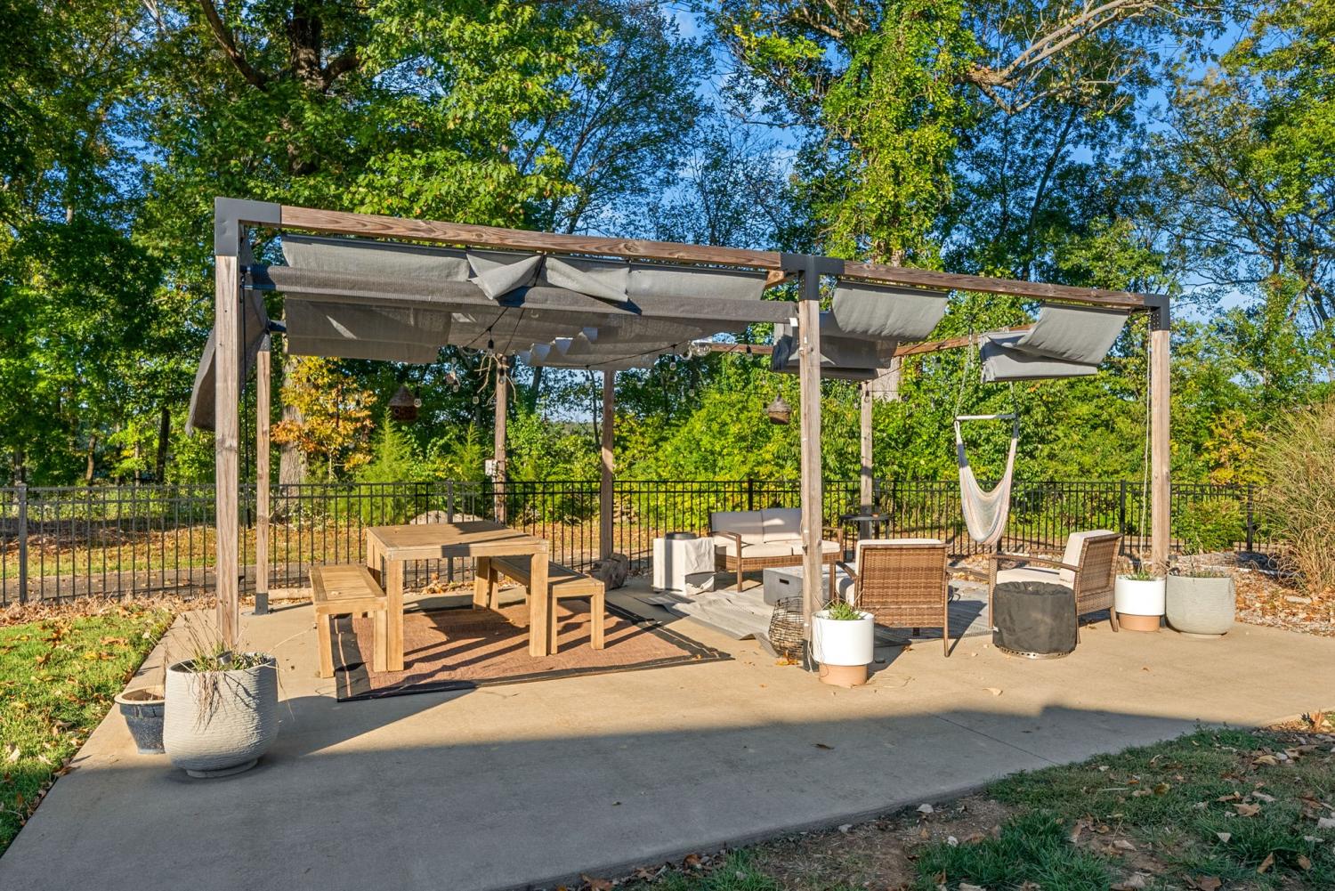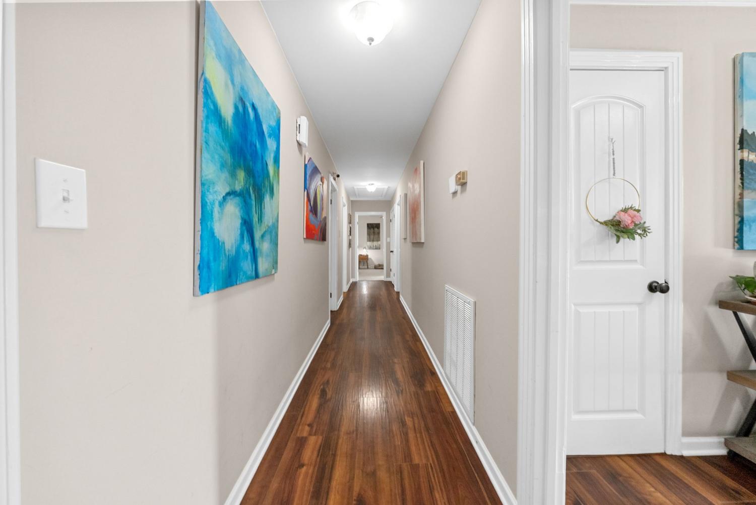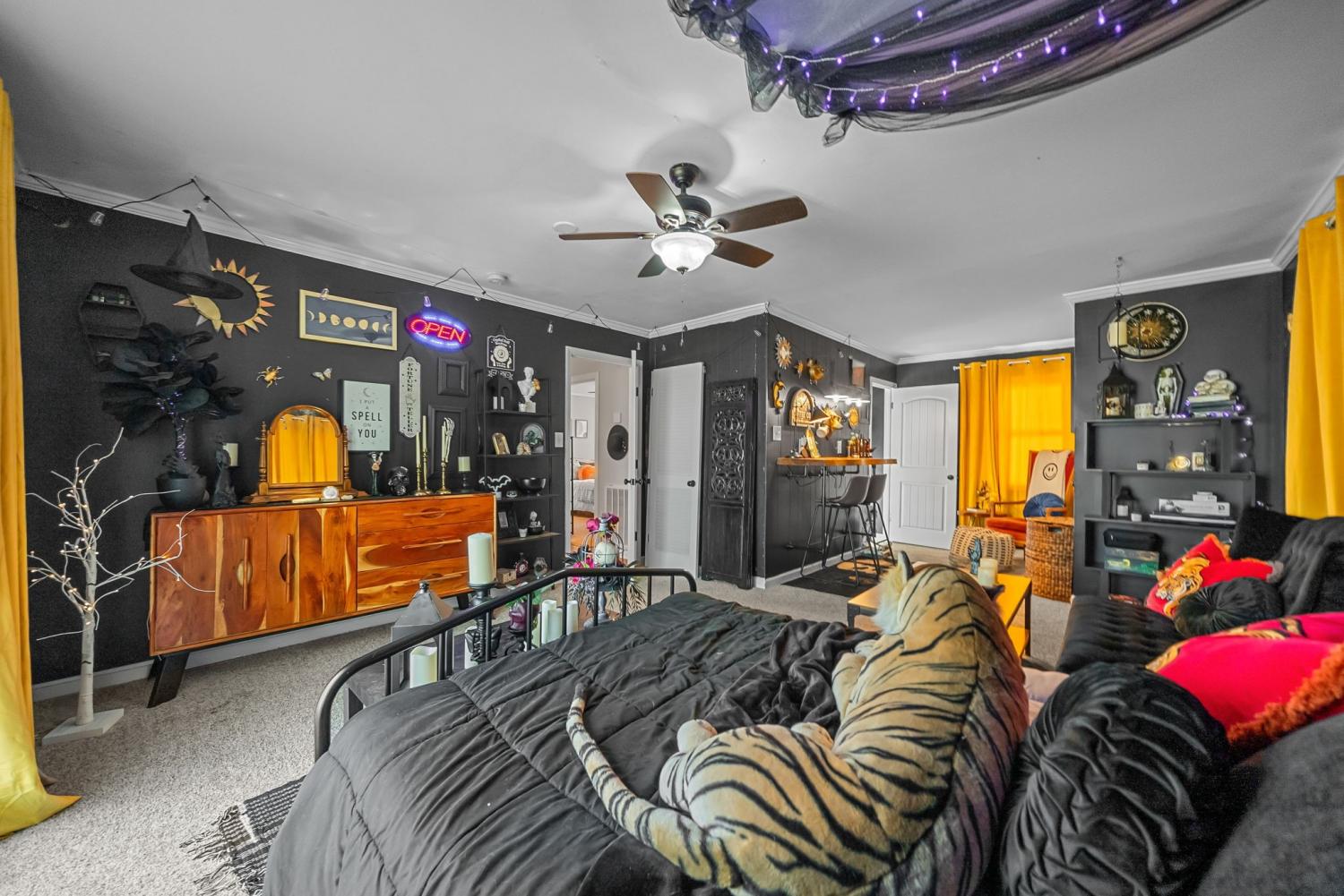 Nashville Chic in the Heart of Clarksville! On 1.6 acres backing up to the Red River, this home offers the rare feeling of retreat while still being in the heart of Clarksville. Picture yourself starting the day with a cup of coffee as the sunrise stretches across the backyard, casting light over the pool and waterfall fountain. As the day winds down, golden hour glows across the property before the sun sets in a show of warm Tennessee color—turning every morning and evening into a moment worth savoring. Inside, the home is just as impressive. A massive living room provides space for multiple uses—an inviting lounge, a dining area, and even a home office. The brick-inlaid, turret-style spiral staircase is a centerpiece feature, leading to the finished basement with a tornado shelter and oversized two-car garage. The kitchen is both functional and beautiful, with custom cabinetry, upgraded granite countertops, and a huge island that’s perfect for cooking or entertaining. An eat-in nook sits just off the kitchen, along with a formal dining room currently used as a home gym. One wing of the home is designed for flexibility—ideal for a mother-in-law suite, Airbnb rental, or private guest retreat. It includes a mini bar, a full bath, and an oversized bedroom/living area with its own built-in bar, plus another bedroom. On the opposite side of the home, two additional bedrooms await—one of which has been transformed into a giant walk-in closet, with the option to convert it back if desired. The outdoor living spaces truly complete the experience. A sparkling in-ground pool with rock fountain, hot tub, covered patio, and firepit area make this property as much about lifestyle as it is about square footage. This is not just a home—it’s where space, comfort, and everyday beauty come together.