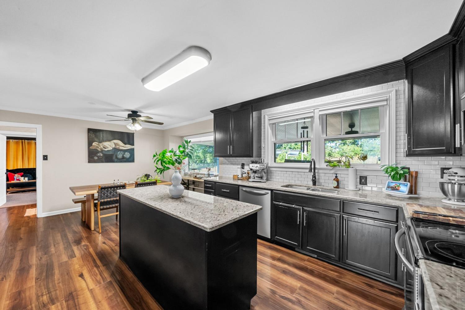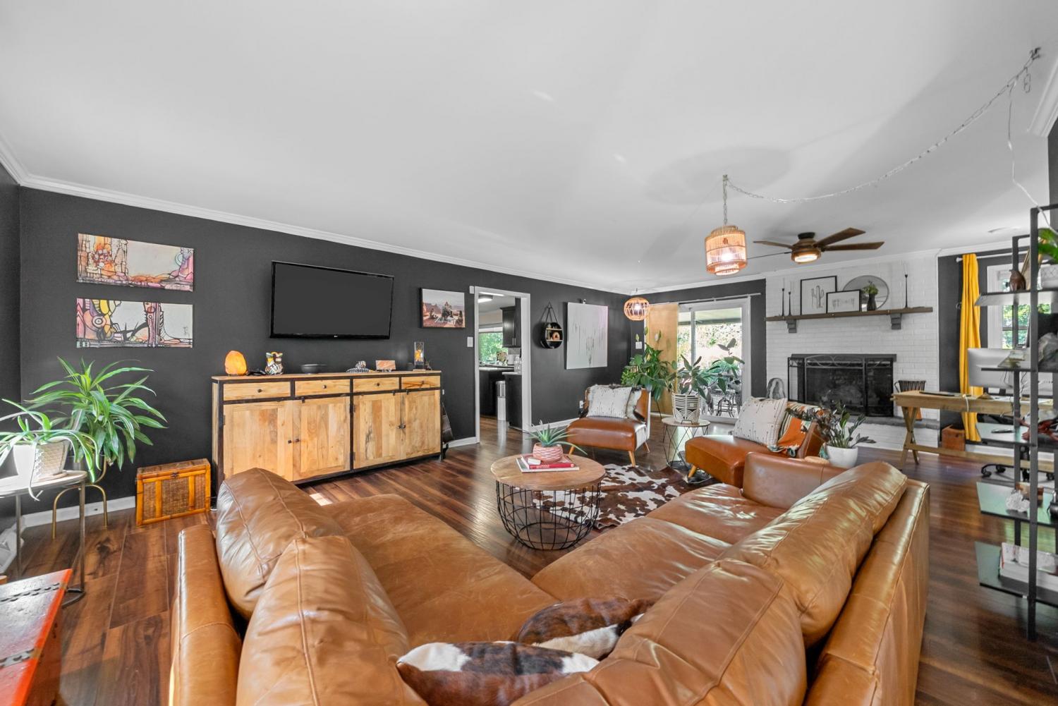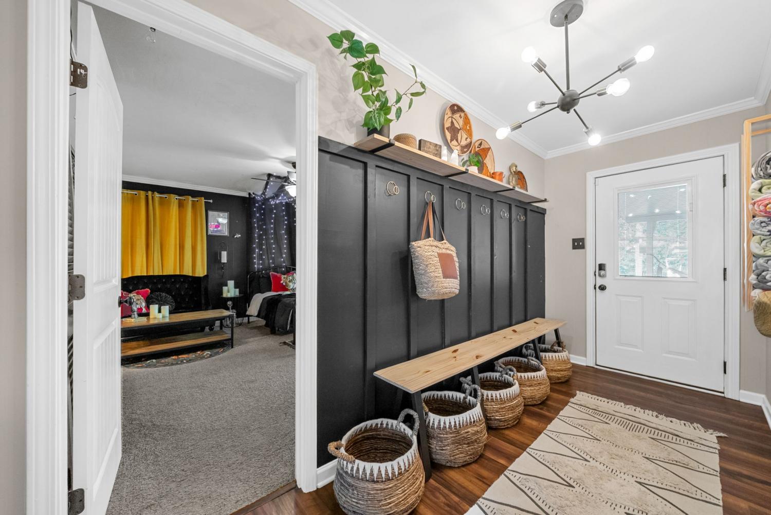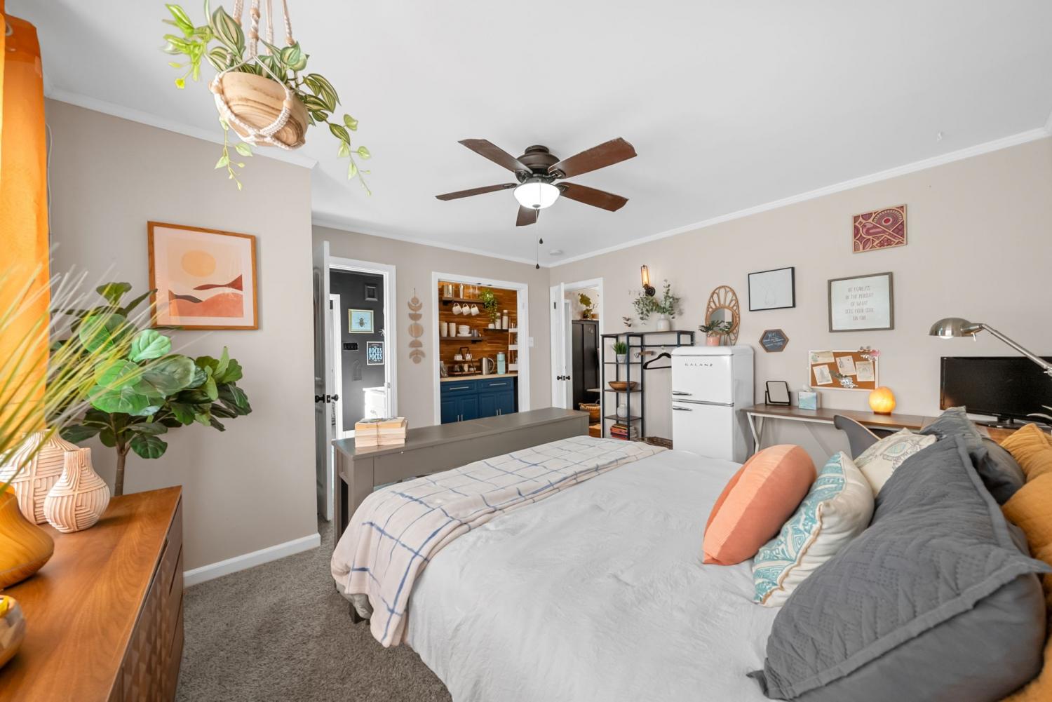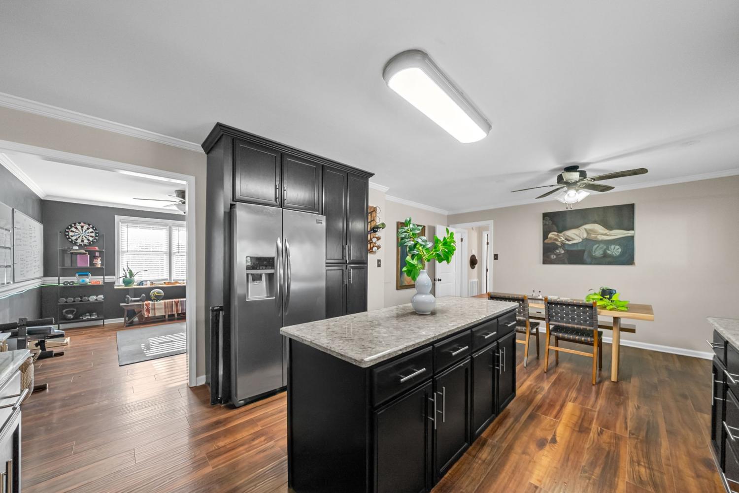 Nashville Chic in the Heart of Clarksville! On 1.6 acres backing up to the Red River, this home offers the rare feeling of retreat while still being in the heart of Clarksville. Picture yourself starting the day with a cup of coffee as the sunrise stretches across the backyard, casting light over the pool and waterfall fountain. As the day winds down, golden hour glows across the property before the sun sets in a show of warm Tennessee color—turning every morning and evening into a moment worth savoring. Inside, the home is just as impressive. A massive living room provides space for multiple uses—an inviting lounge, a dining area, and even a home office. The brick-inlaid, turret-style spiral staircase is a centerpiece feature, leading to the finished basement with a tornado shelter and oversized two-car garage. The kitchen is both functional and beautiful, with custom cabinetry, upgraded granite countertops, and a huge island that’s perfect for cooking or entertaining. An eat-in nook sits just off the kitchen, along with a formal dining room currently used as a home gym. One wing of the home is designed for flexibility—ideal for a mother-in-law suite, Airbnb rental, or private guest retreat. It includes a mini bar, a full bath, and an oversized bedroom/living area with its own built-in bar, plus another bedroom. On the opposite side of the home, two additional bedrooms await—one of which has been transformed into a giant walk-in closet, with the option to convert it back if desired. The outdoor living spaces truly complete the experience. A sparkling in-ground pool with rock fountain, hot tub, covered patio, and firepit area make this property as much about lifestyle as it is about square footage. This is not just a home—it’s where space, comfort, and everyday beauty come together.